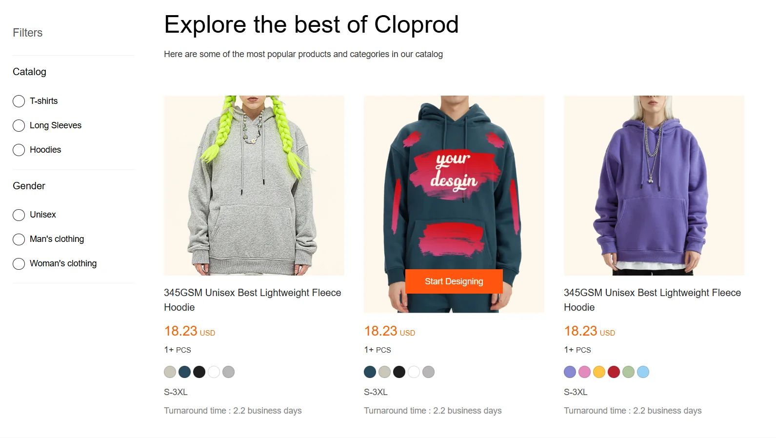 No matter which platform you choose to sell clothing, the key is to support your sales goals and brand positioning and ensure that it provides an optimized user experience. Start your online business today by designing clothing with Clopeod's free design maker and connecting it to your online store