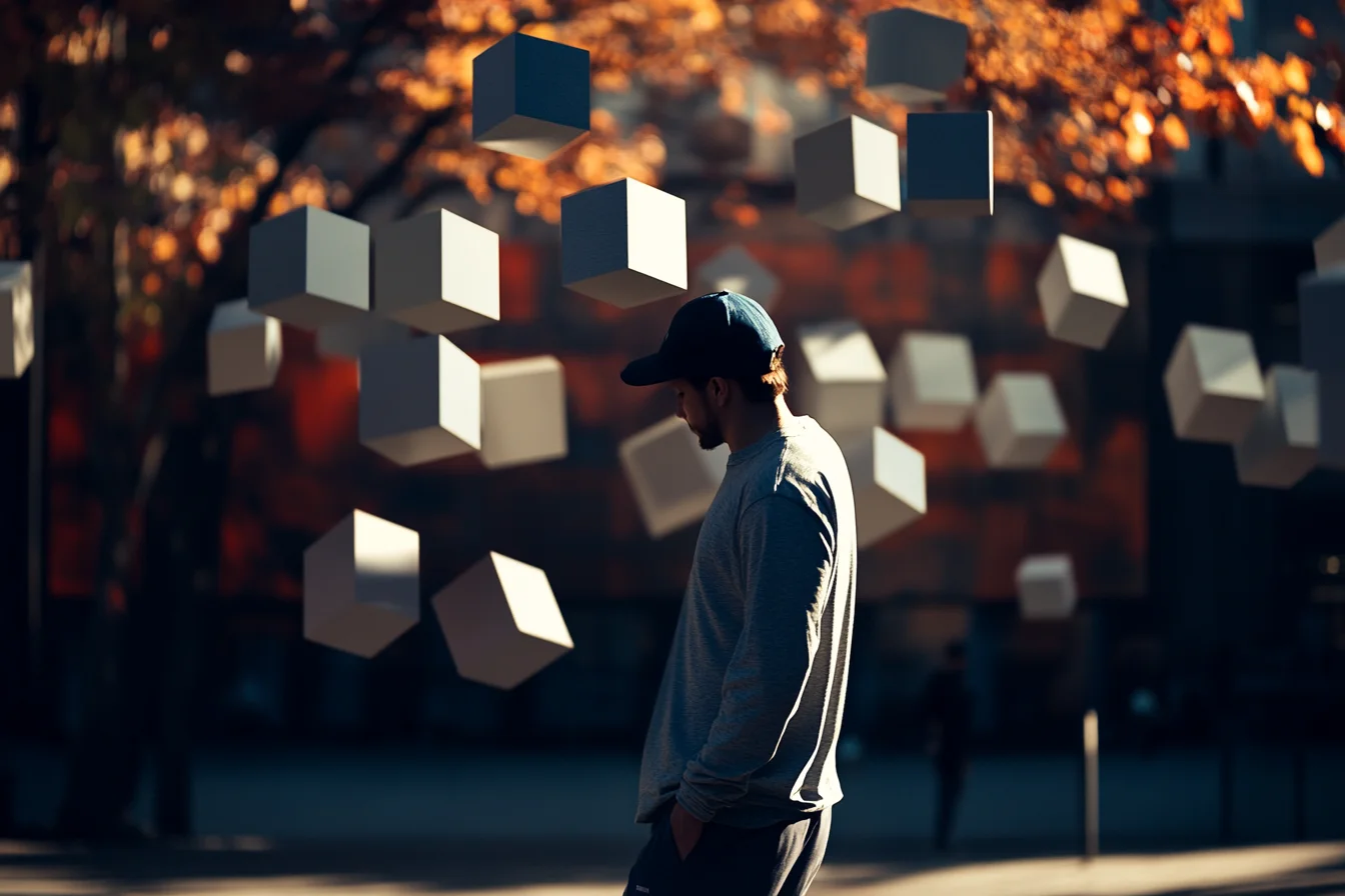 The effect of optical illusion can be strengthened by the use of light and shadow and strong color contrasts. Use black and black-and-white color schemes or contrasting tones to highlight the shades of the graphic and enhance the visual disorientation.