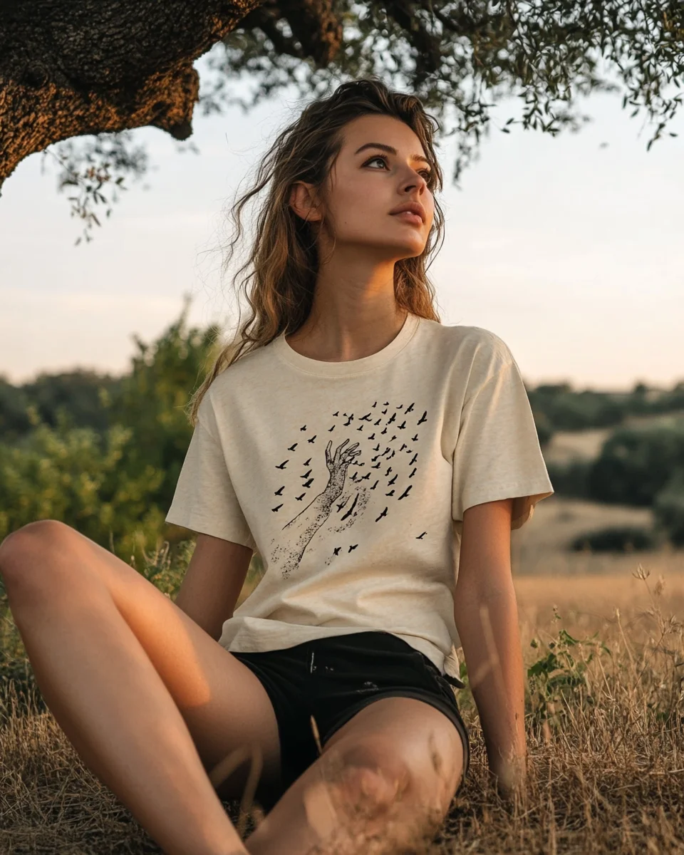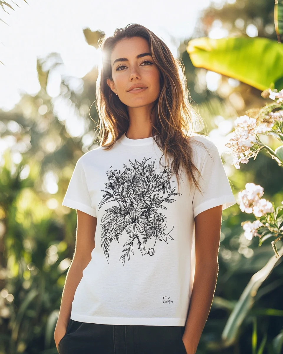 Combine natural elements with watercolor, hand-painted, or minimalist line art to create a fresh and natural visual effect. At the same time, add brand logos or environmental slogans to increase the uniqueness and storytelling of the T-shirt.