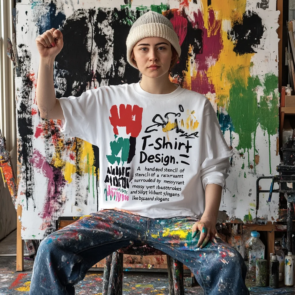 There are no fixed rules for graffiti design, the key is to show your personality. You can draw abstract patterns, graphics, graffiti-style text, or even street art patterns. This style of t-shirt design emphasizes individuality and spontaneity and encourages eclectic creativity.