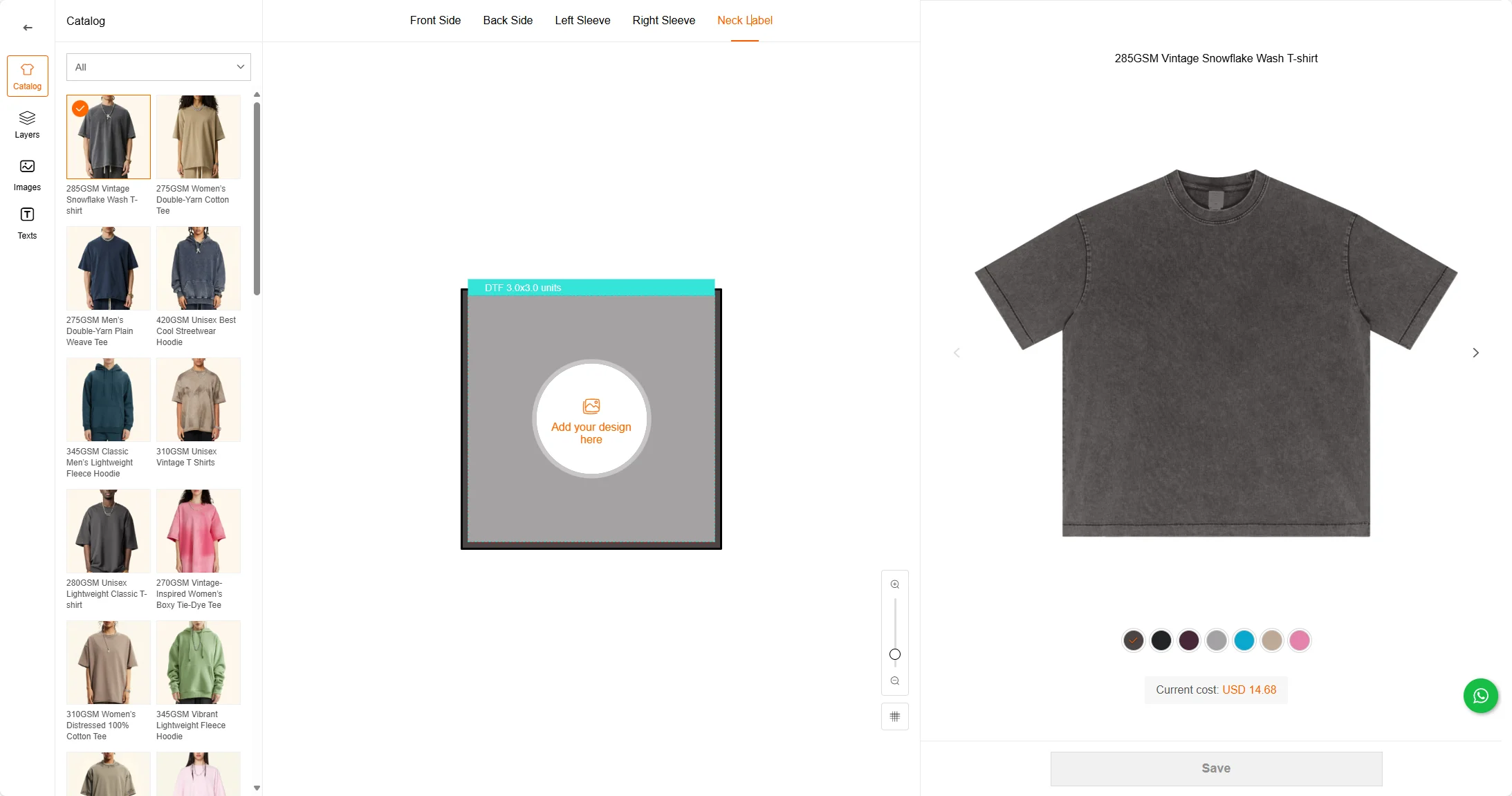 To customize the neck labels, navigate to the option located at the top right of the designer. Here, you can create custom neck labels to enhance your brand’s professionalism.