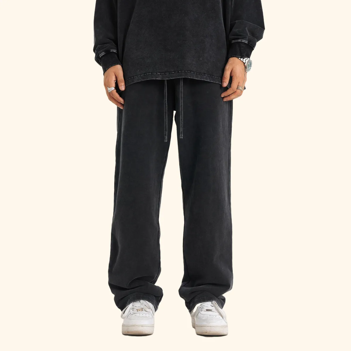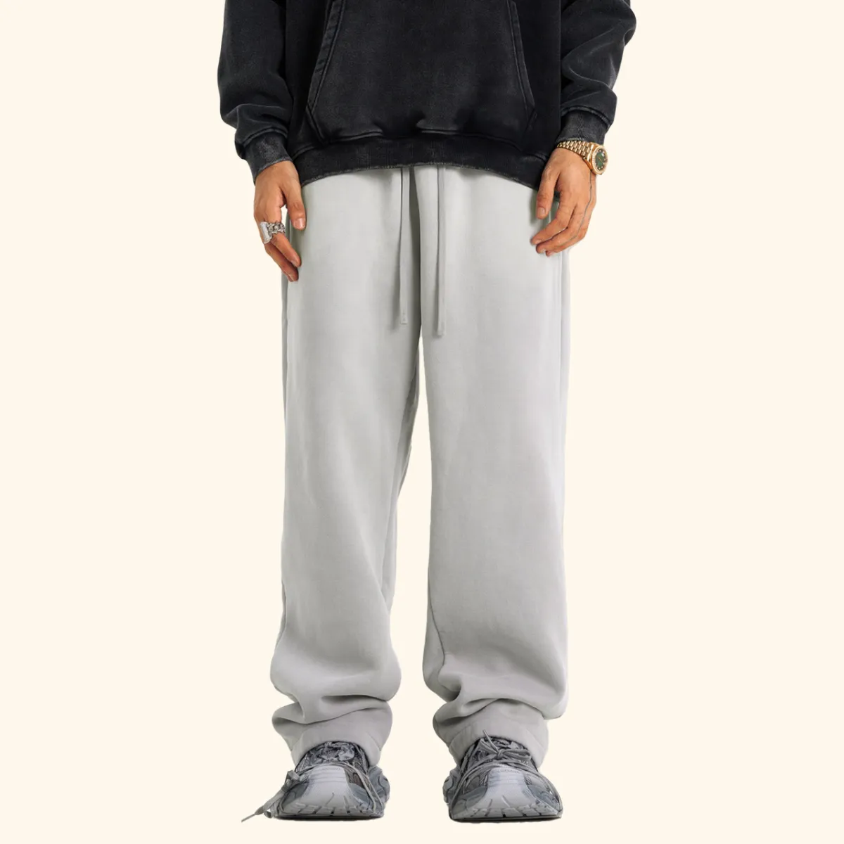 320–380GSM Vintage Wash Bull-Knit Straight Sweatpants Relaxed Fit