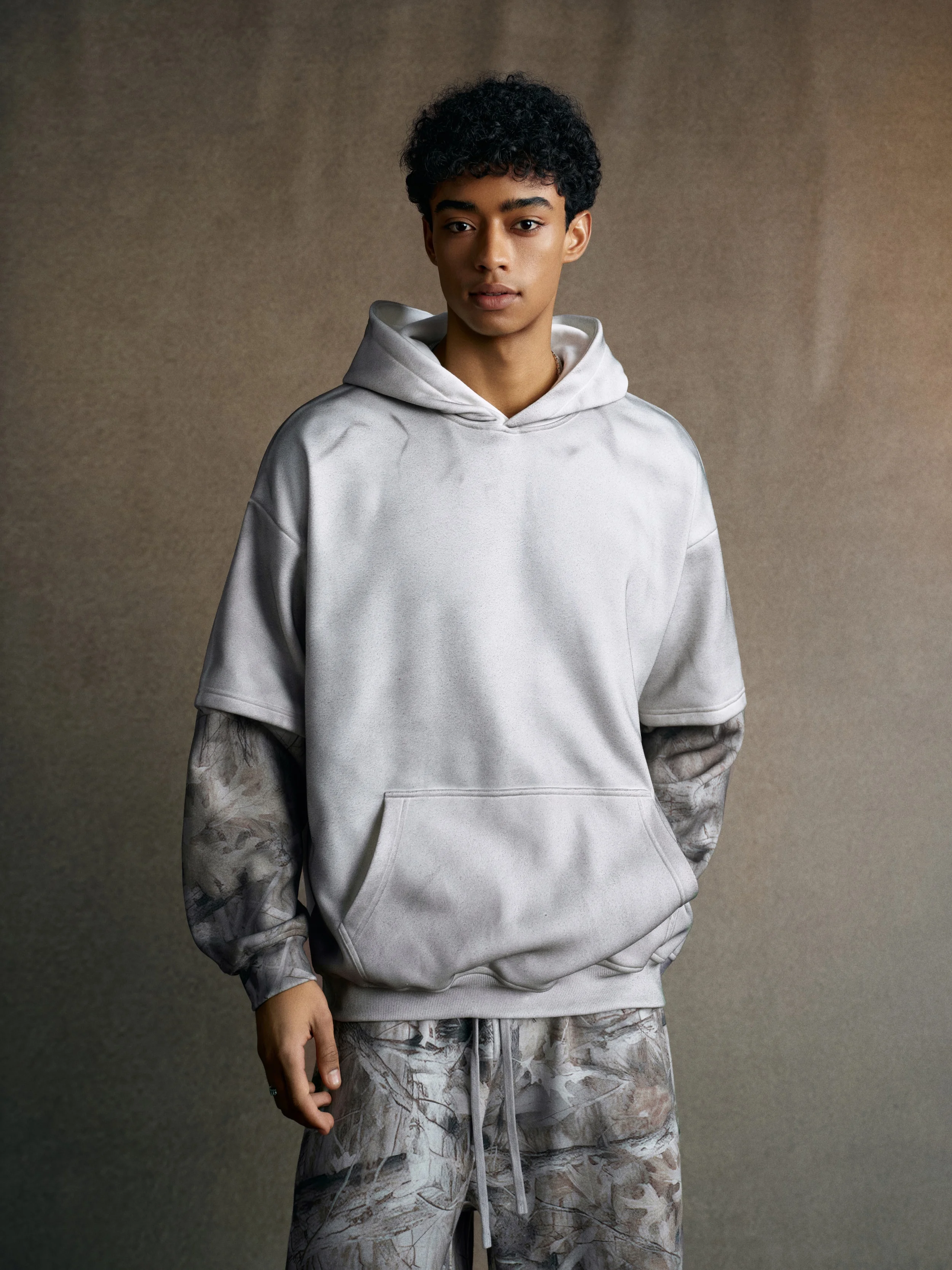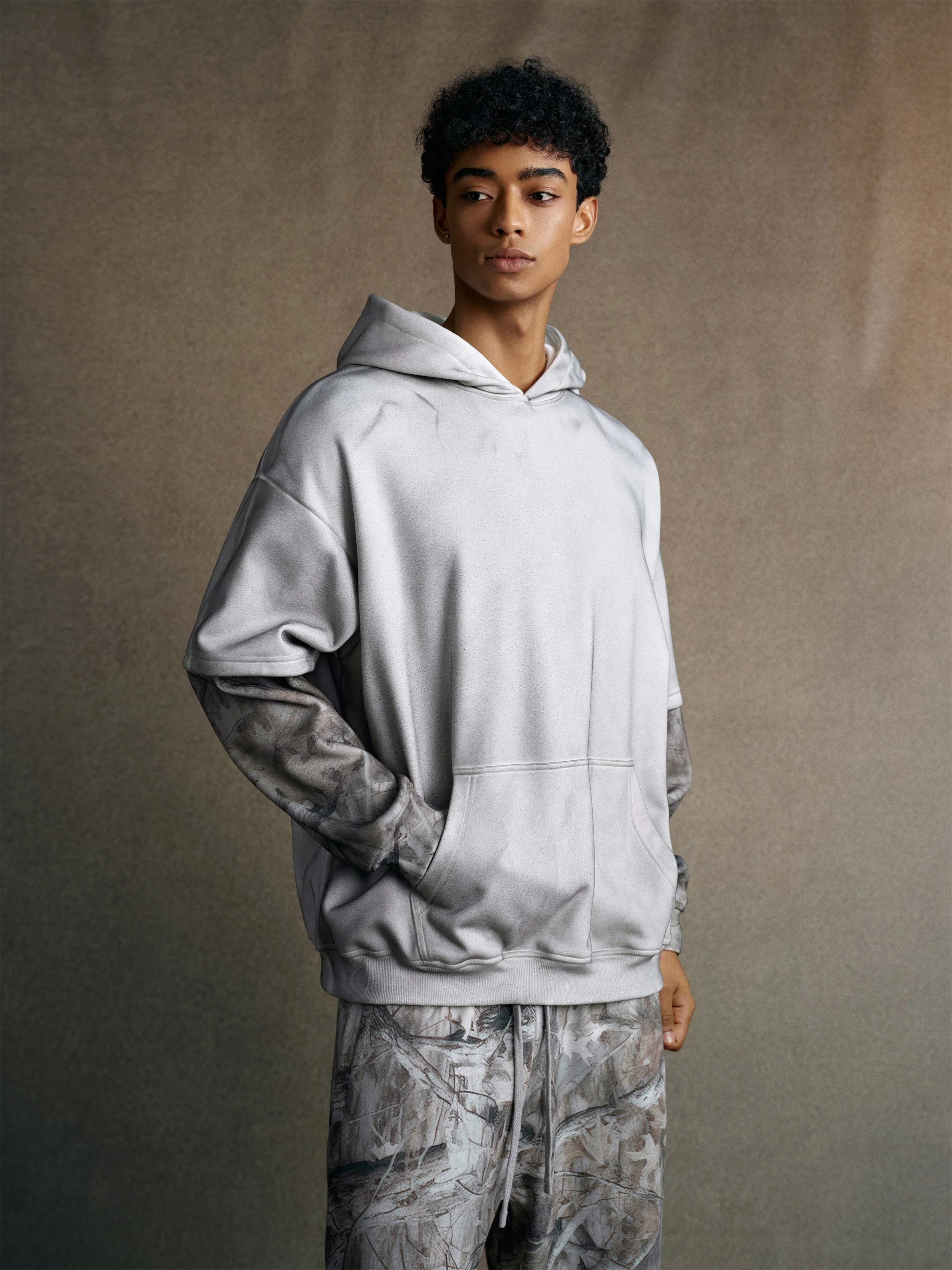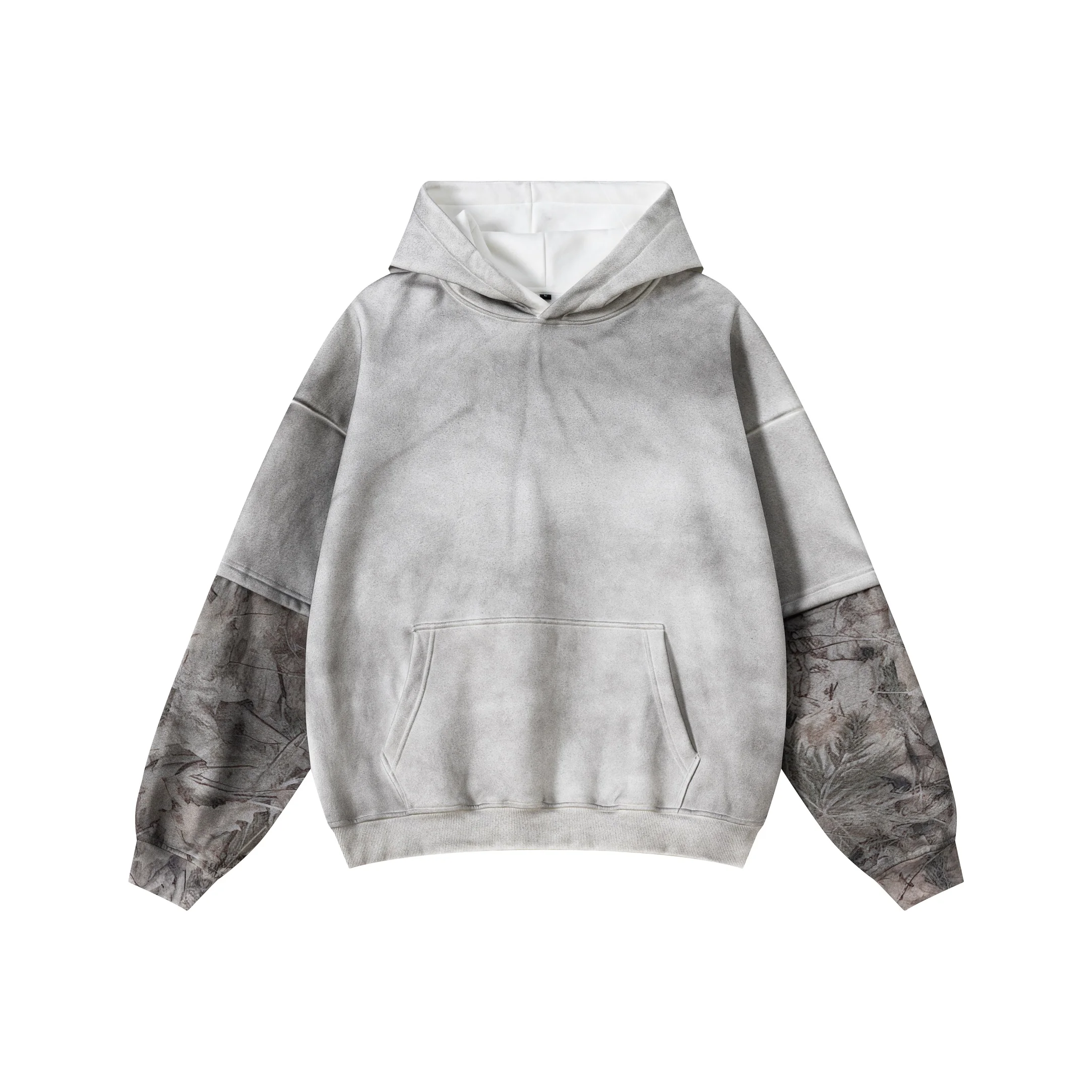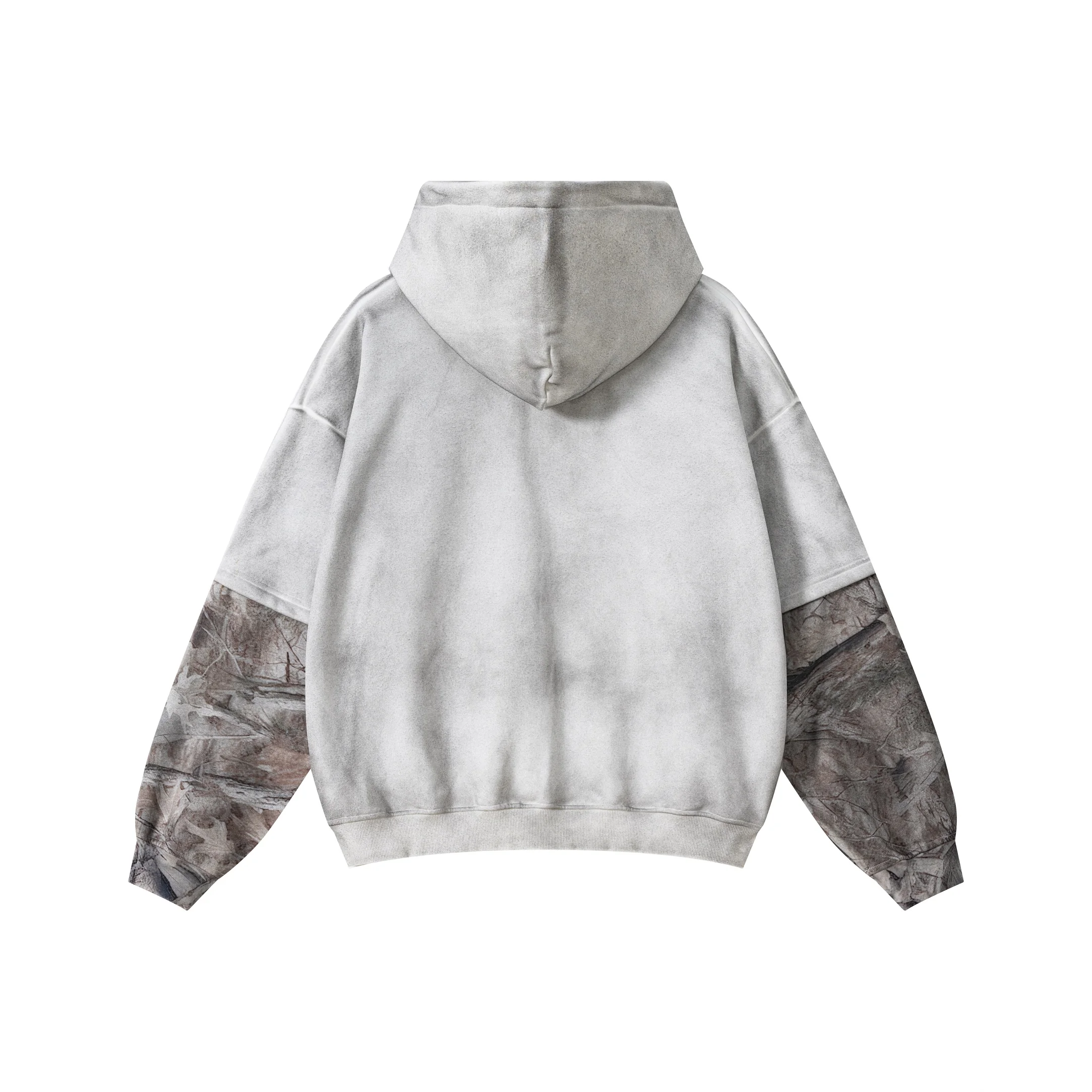 340GSM Men’s Hooded Sweatshirt with Faux-Two-Piece Heat-Transfer Desert Camo Panel