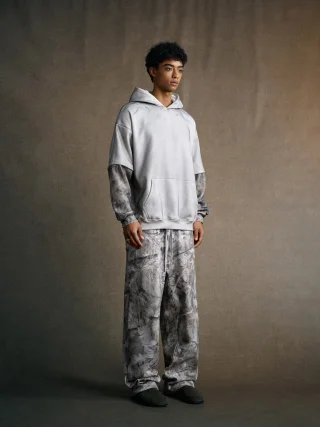370GSM Men’s Faux-Two-Piece PP-Sprayed (Monkey Wash) French Terry Hoodie