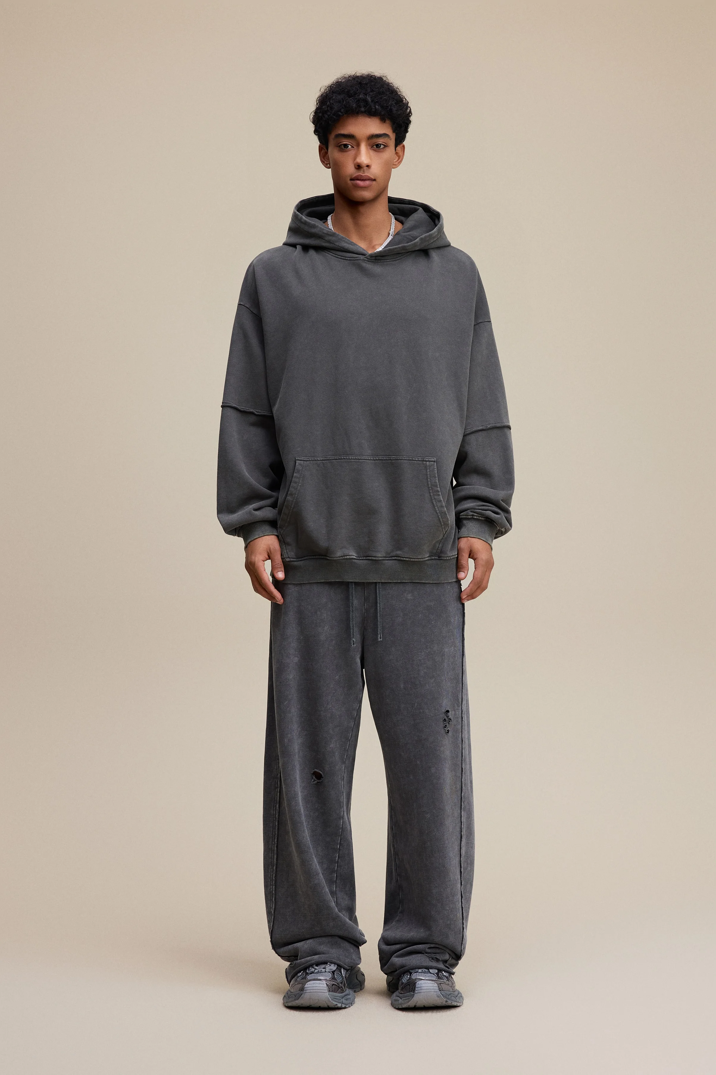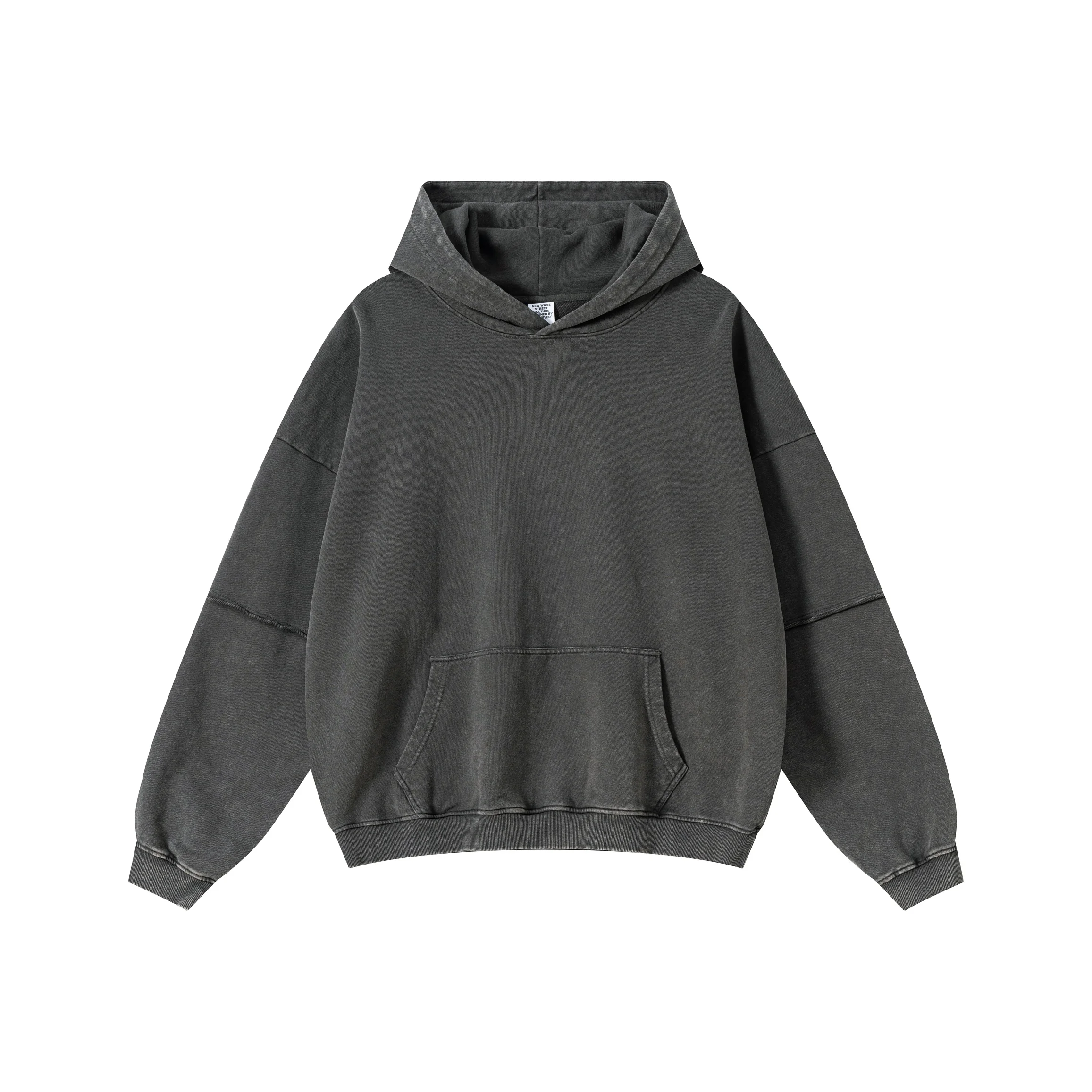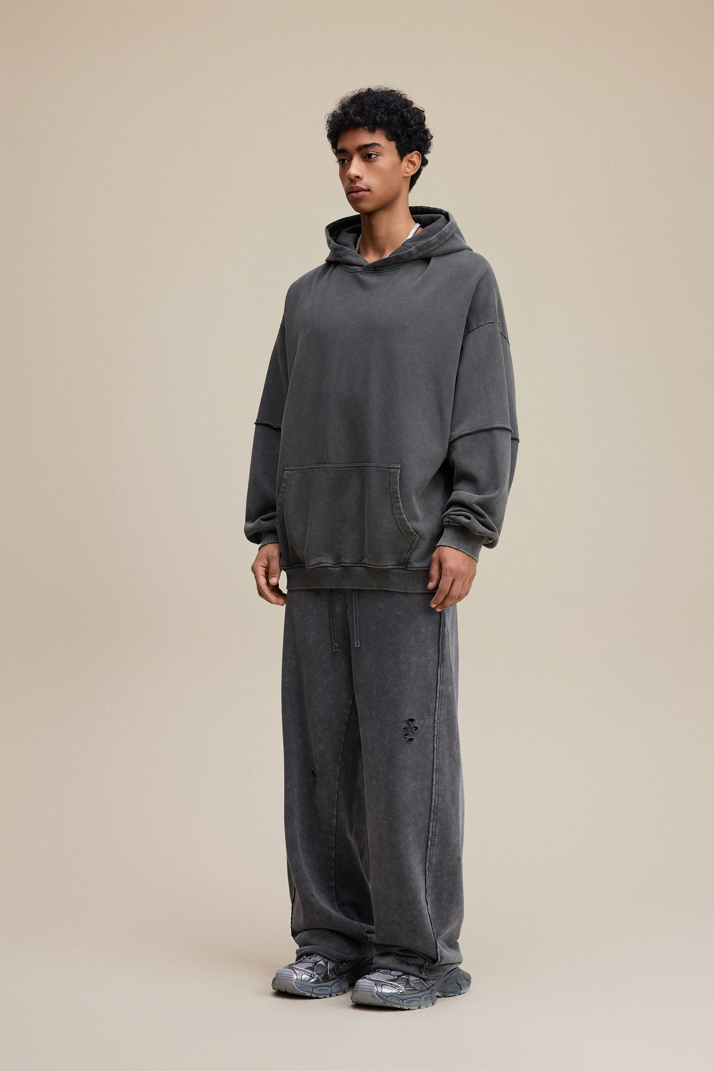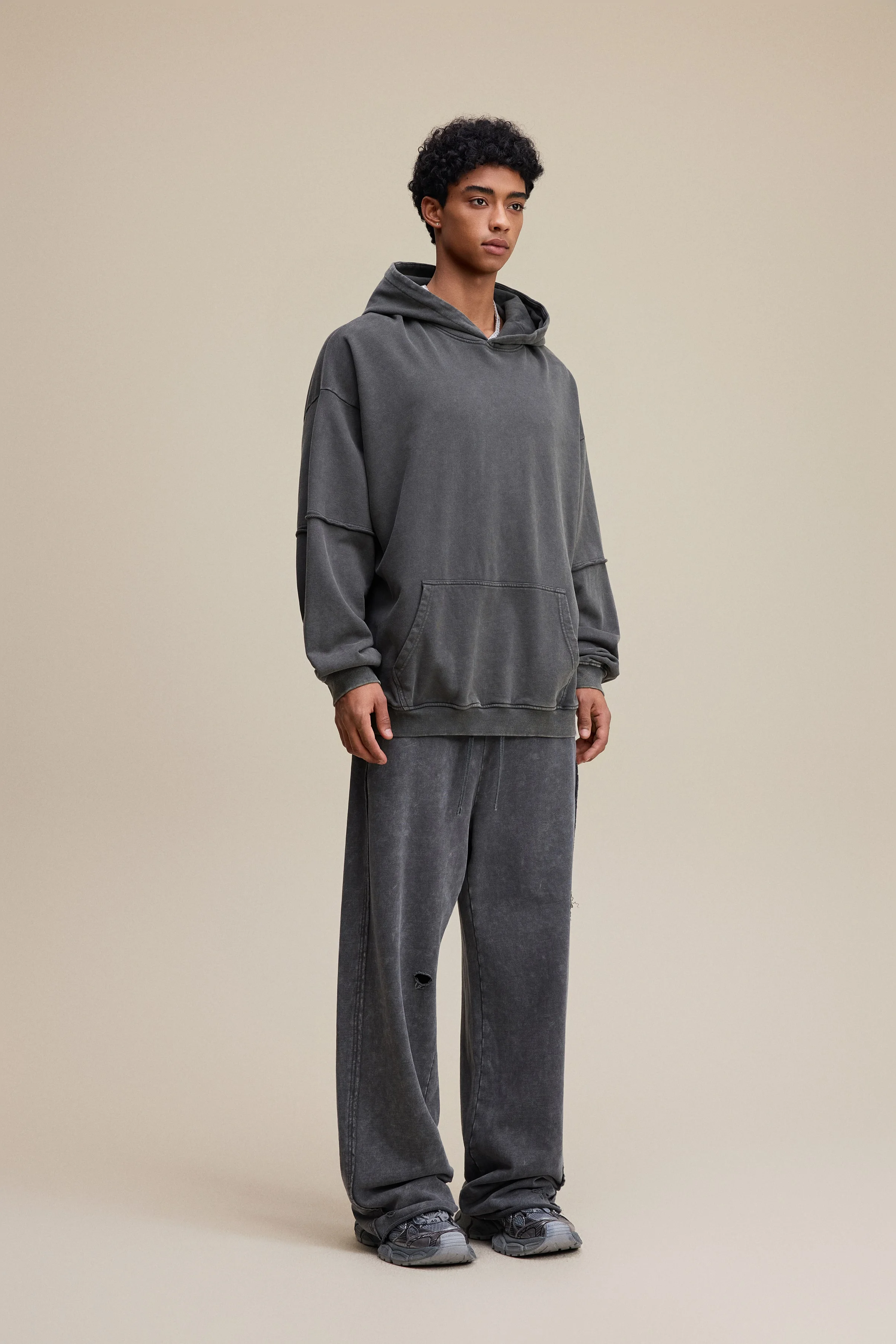370GSM Men’s Faux-Two-Piece Distressed Snow-Wash French Terry Hooded Sweatshirt