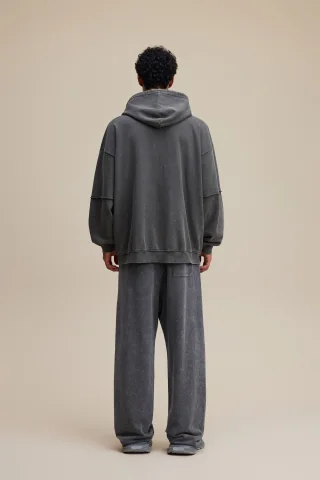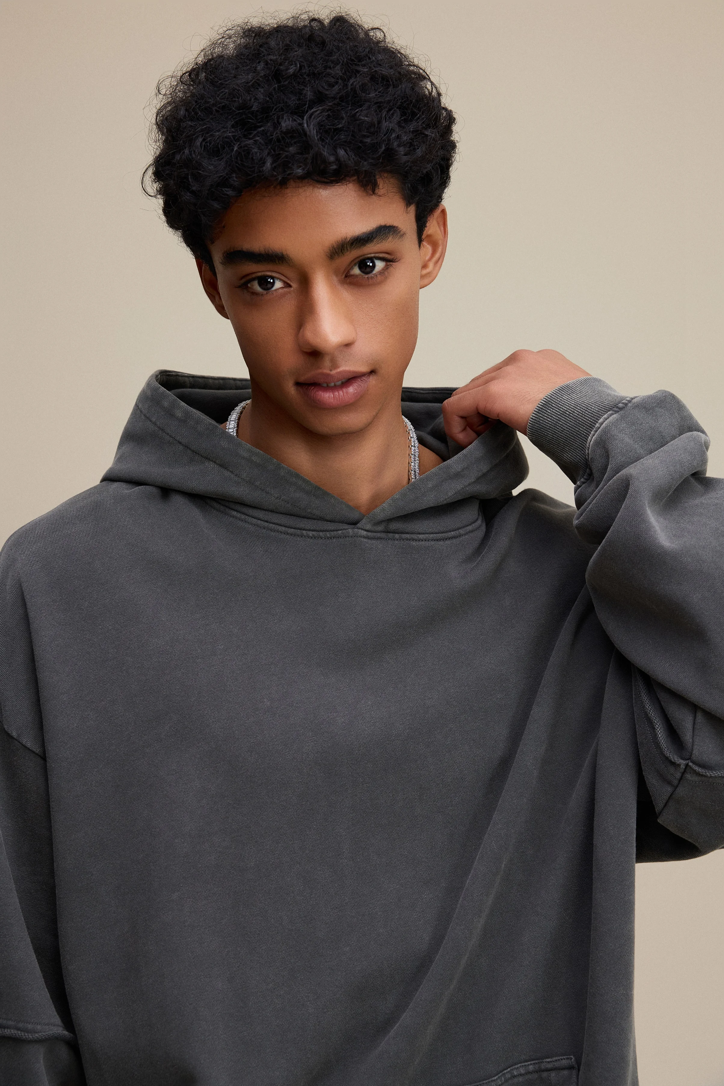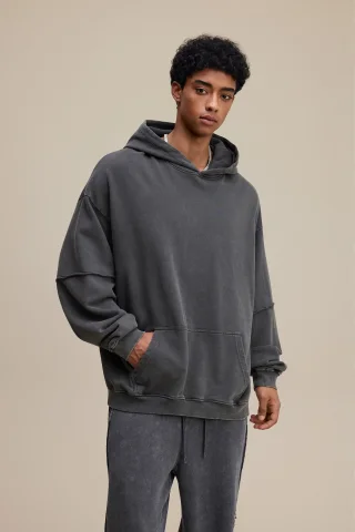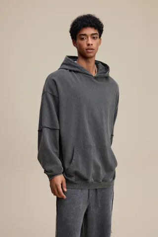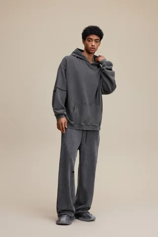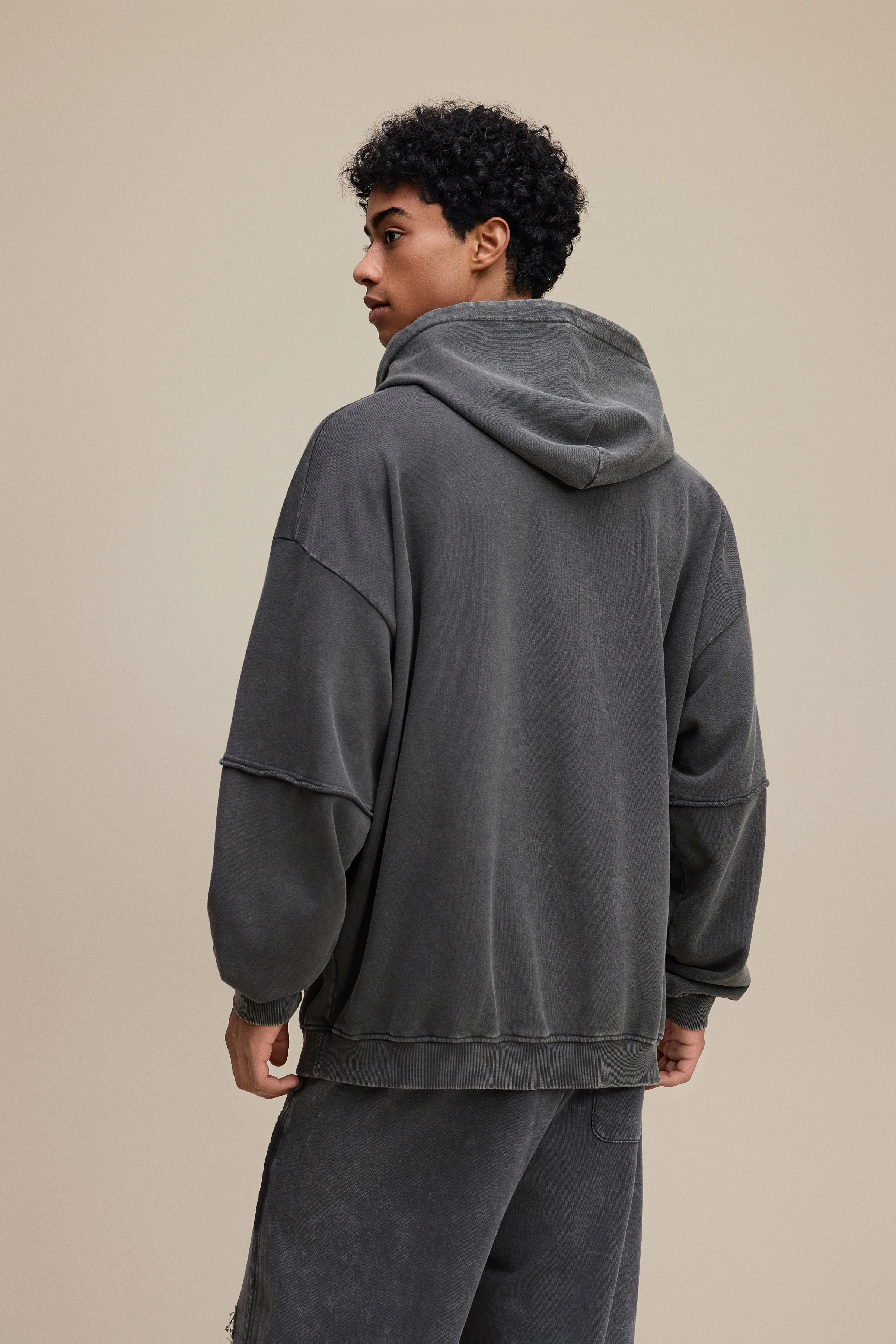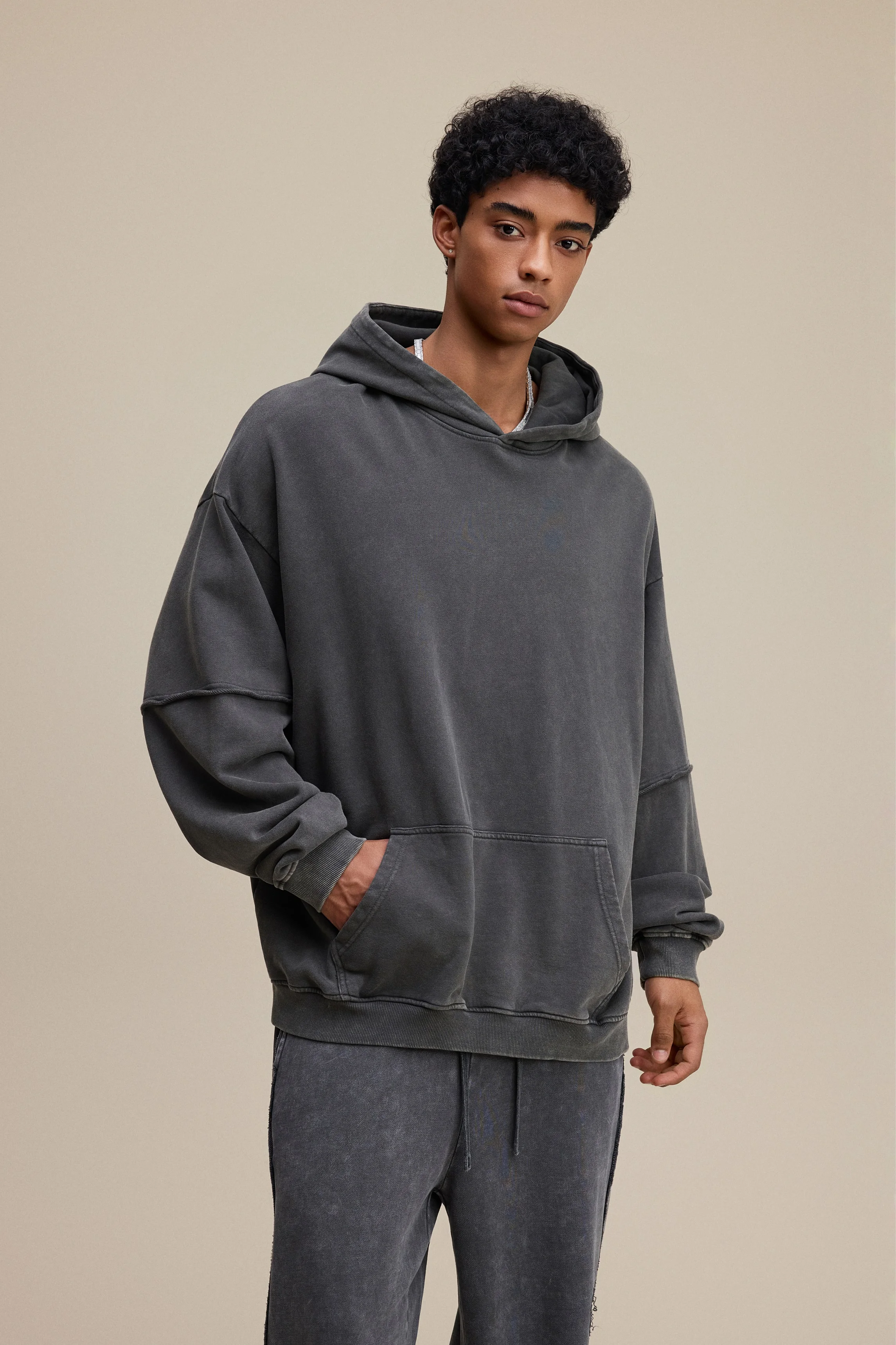 370GSM Men’s Faux-Two-Piece Distressed Snow-Wash French Terry Hooded Sweatshirt