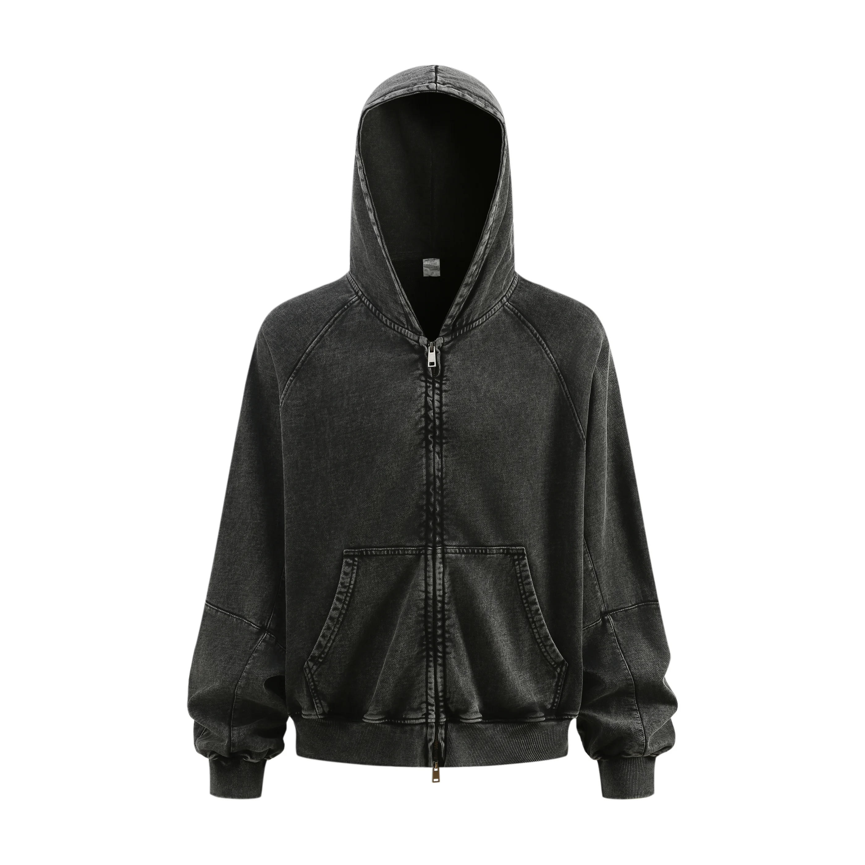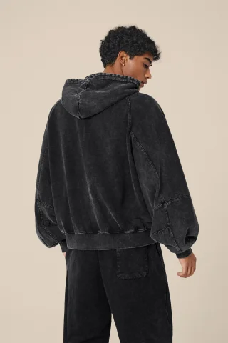 480GSM Unisex Boxy-Fit Short and Wide Pigment-Wash Heavyweight Zip-Up Panel Hoodie