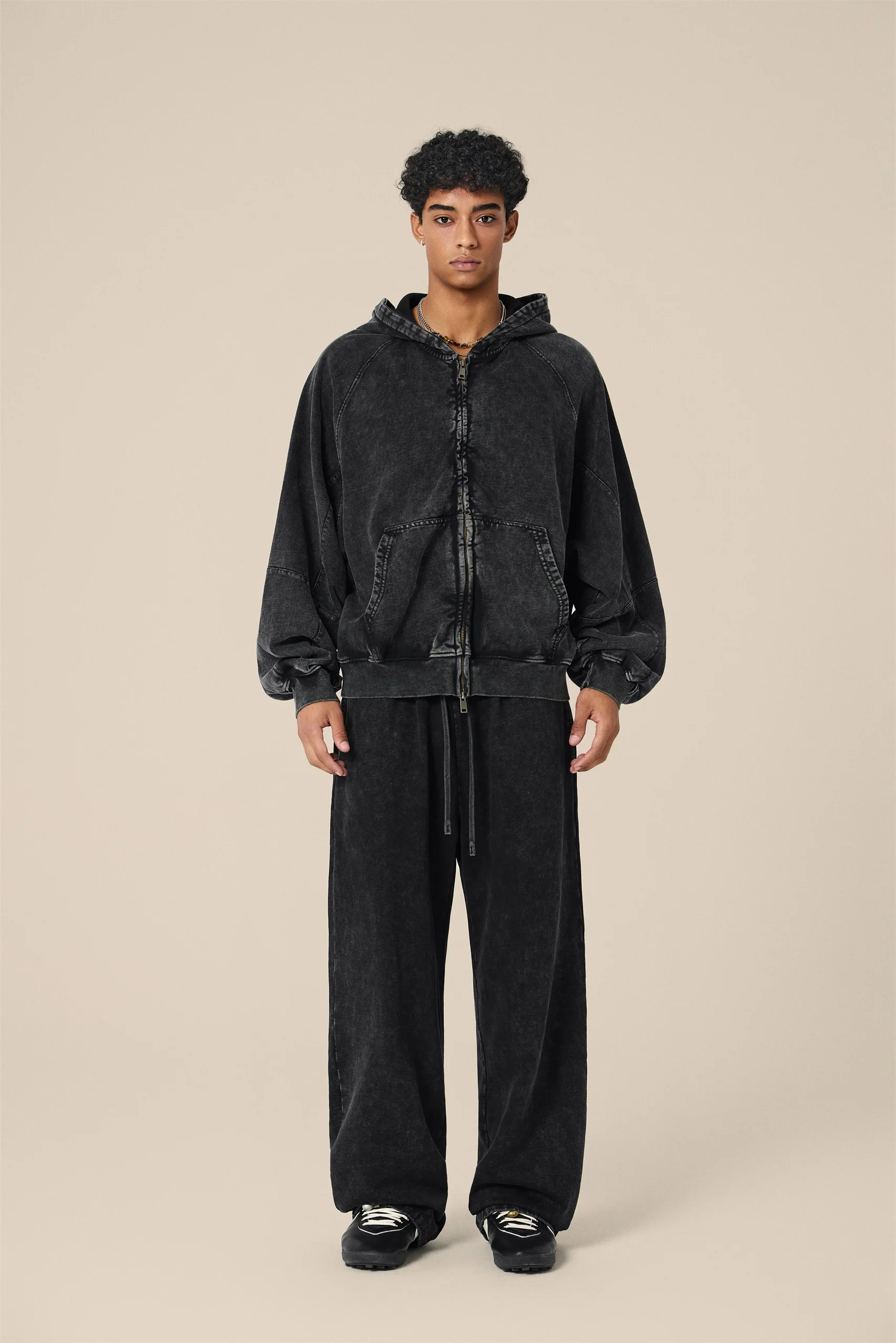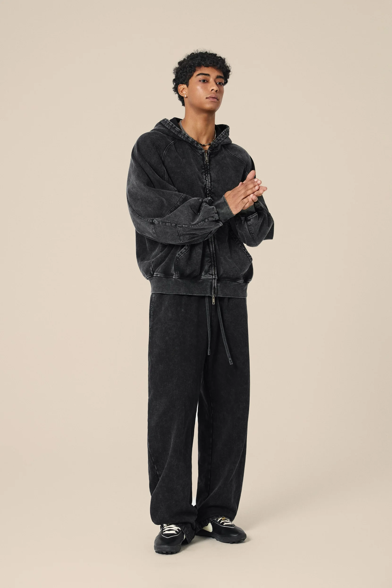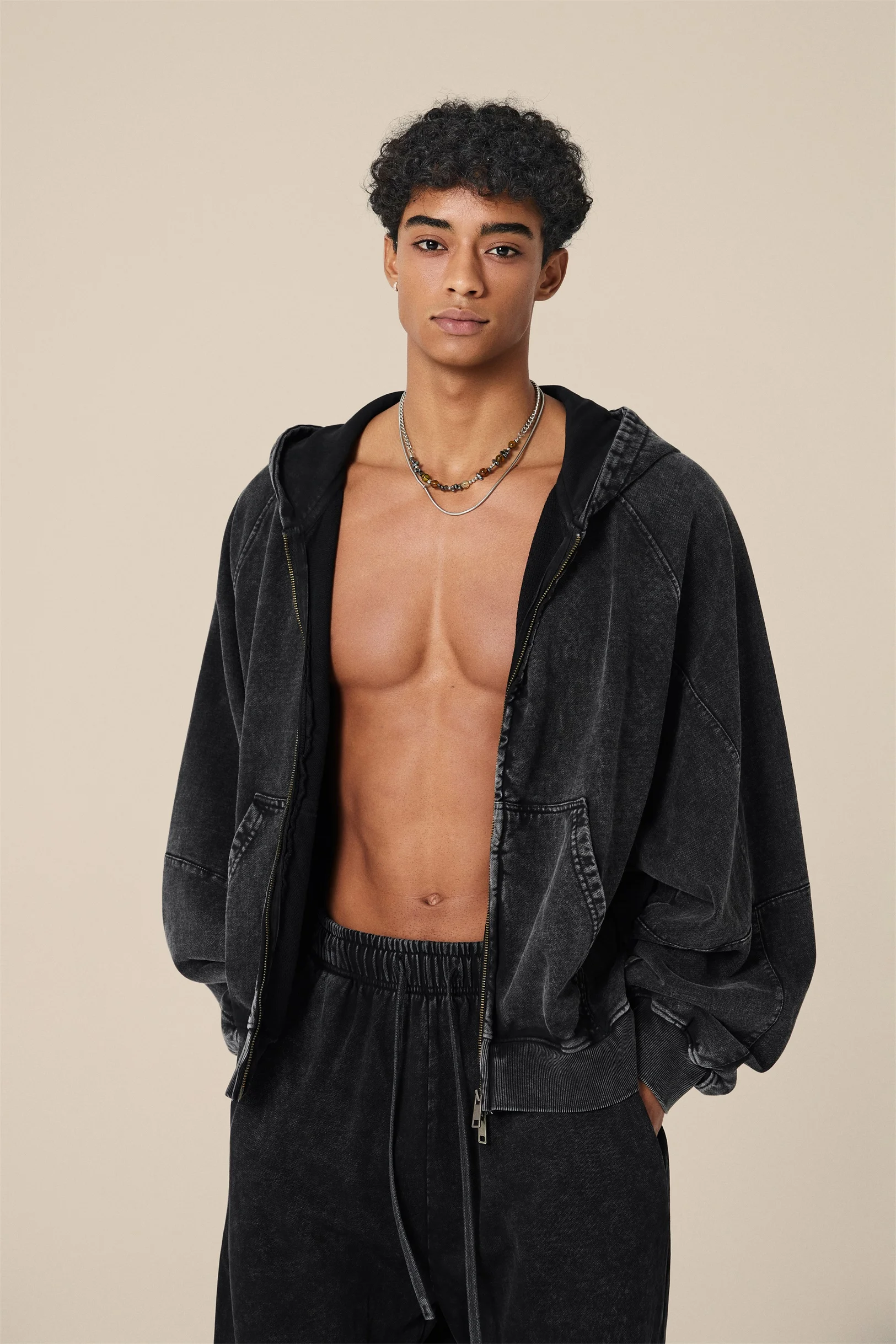 A true heavyweight with vintage attitude. Made from 480GSM bull terry cotton, this zip-up hoodie keeps you warm and sharp from 5°C to 15°C. The boxy cropped cut gives it a modern street look, while the washed finish adds that lived-in vintage vibe. Wear it three ways — zipped up clean, half-open for layering, or fully open as a casual jacket. Available in Mid Grey, Dark Grey, Coffee, and Snow Wash, this piece blends retro workwear style with modern streetwear energy — easy to match, easy to stand out.