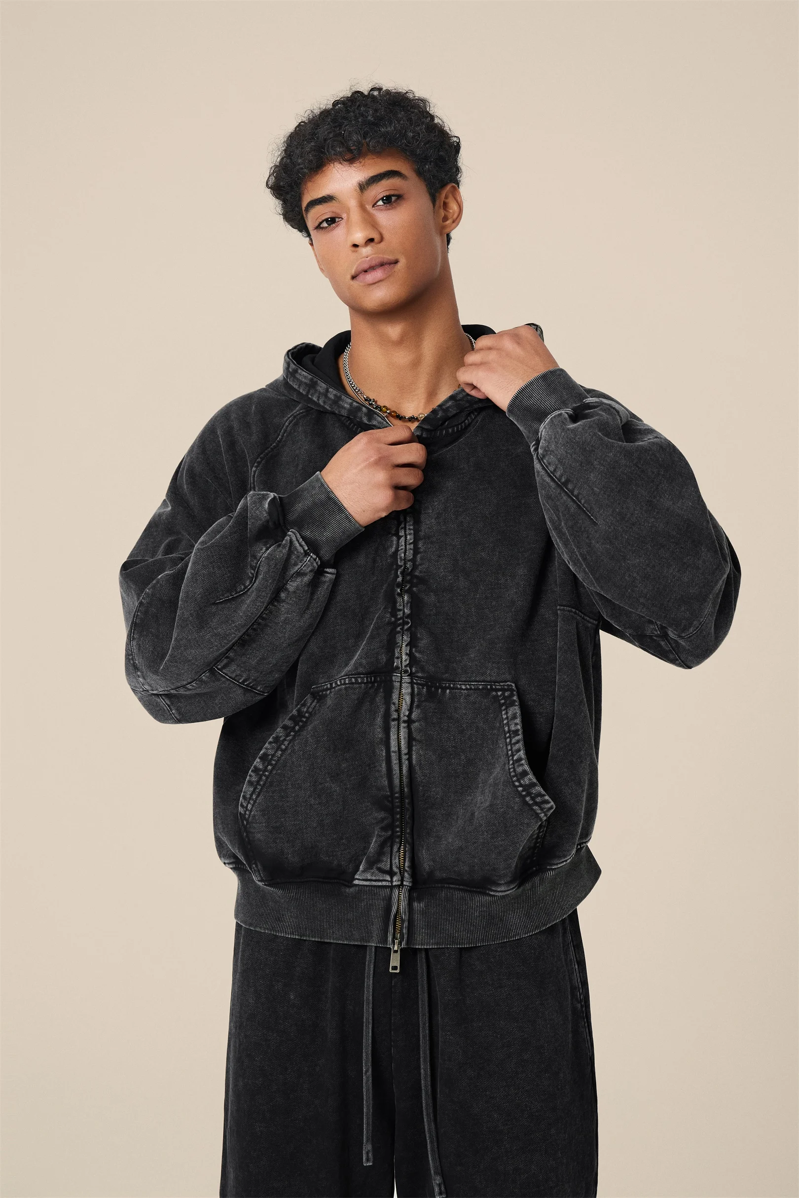 345GSM Men’s Boxy-Fit Double-Zip Hoodie