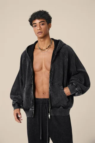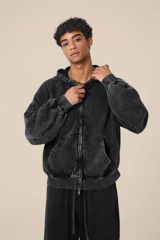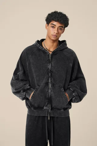 400GSM Unisex Vintage-Wash Boxy-Fit Zip-Up Sweatshirt