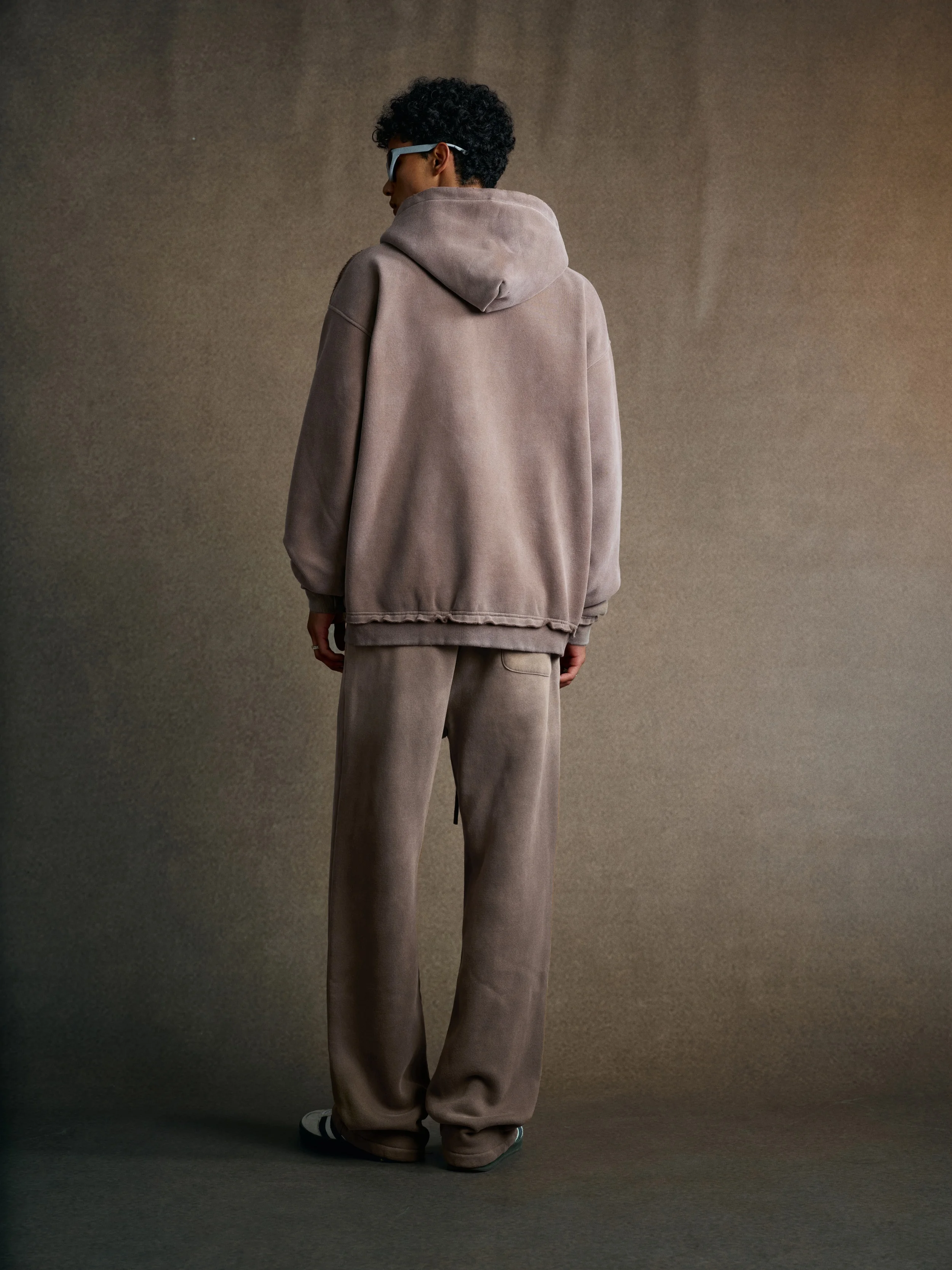 370GSM Men’s Raw-Edge Ripped French Terry PP-Sprayed (Monkey Wash) Hooded Sweatshirt