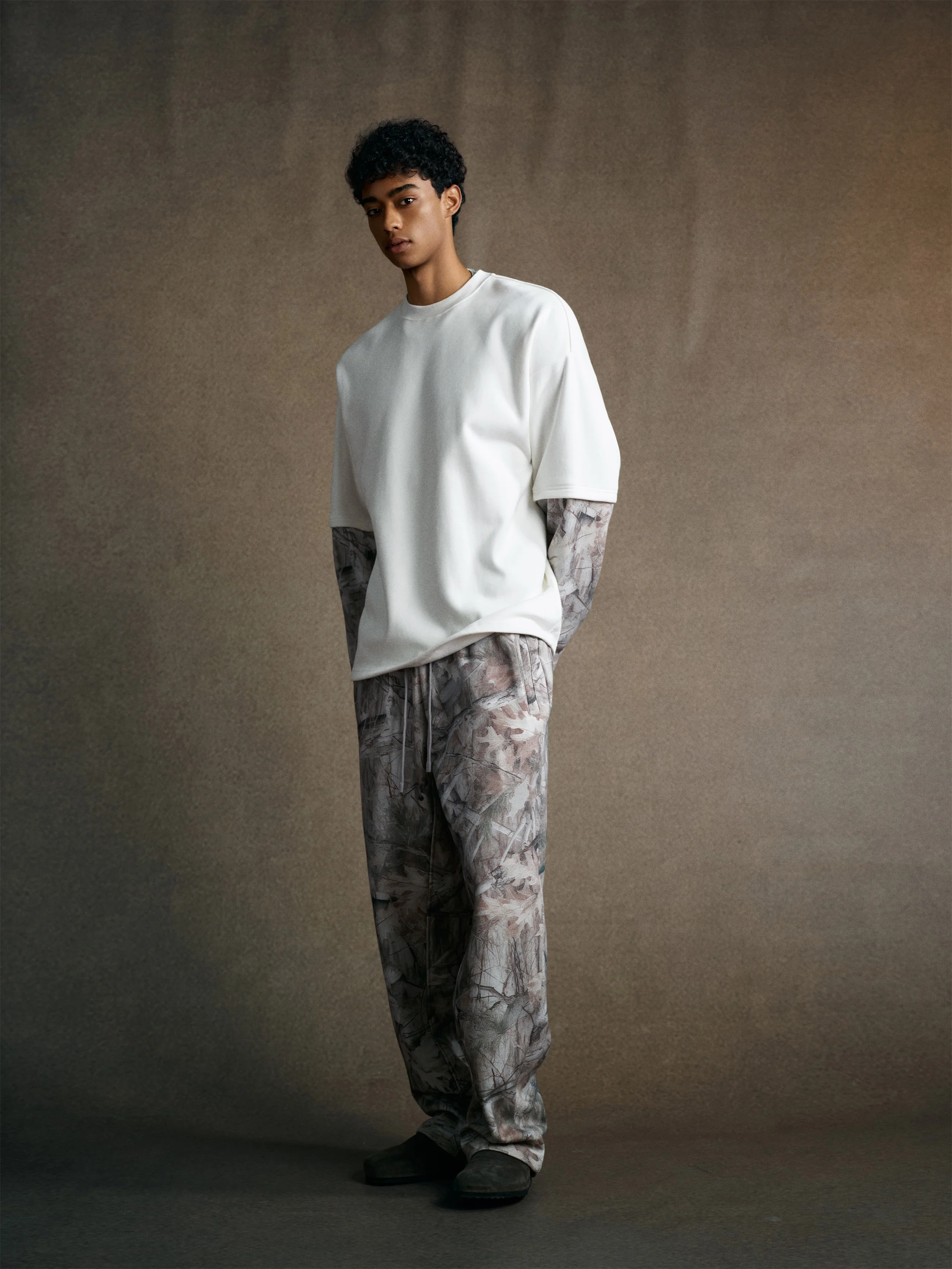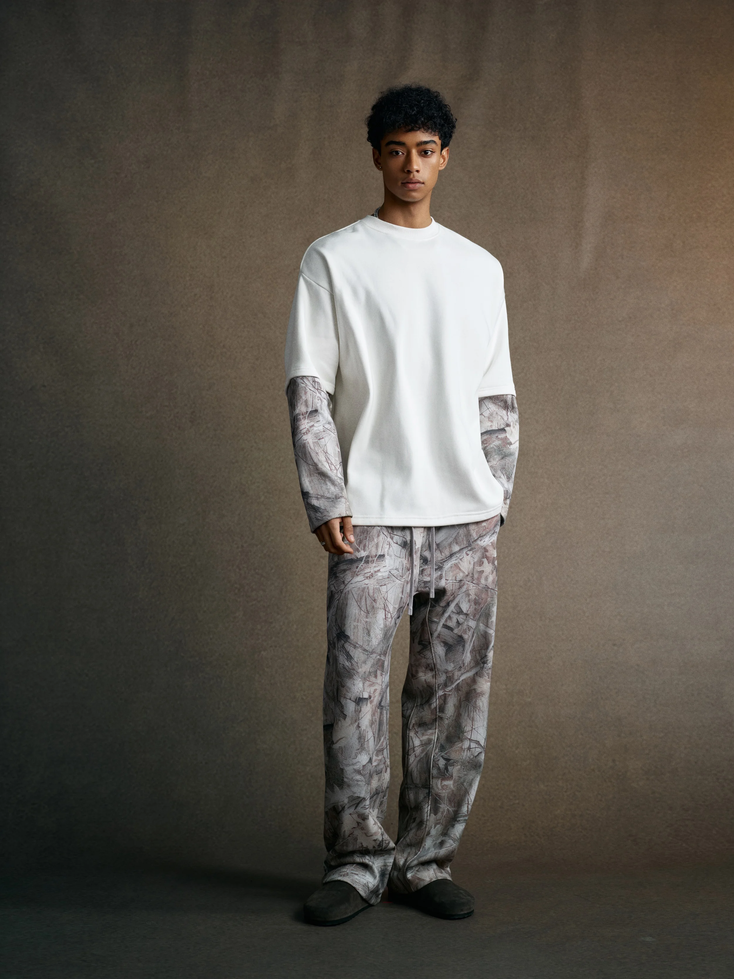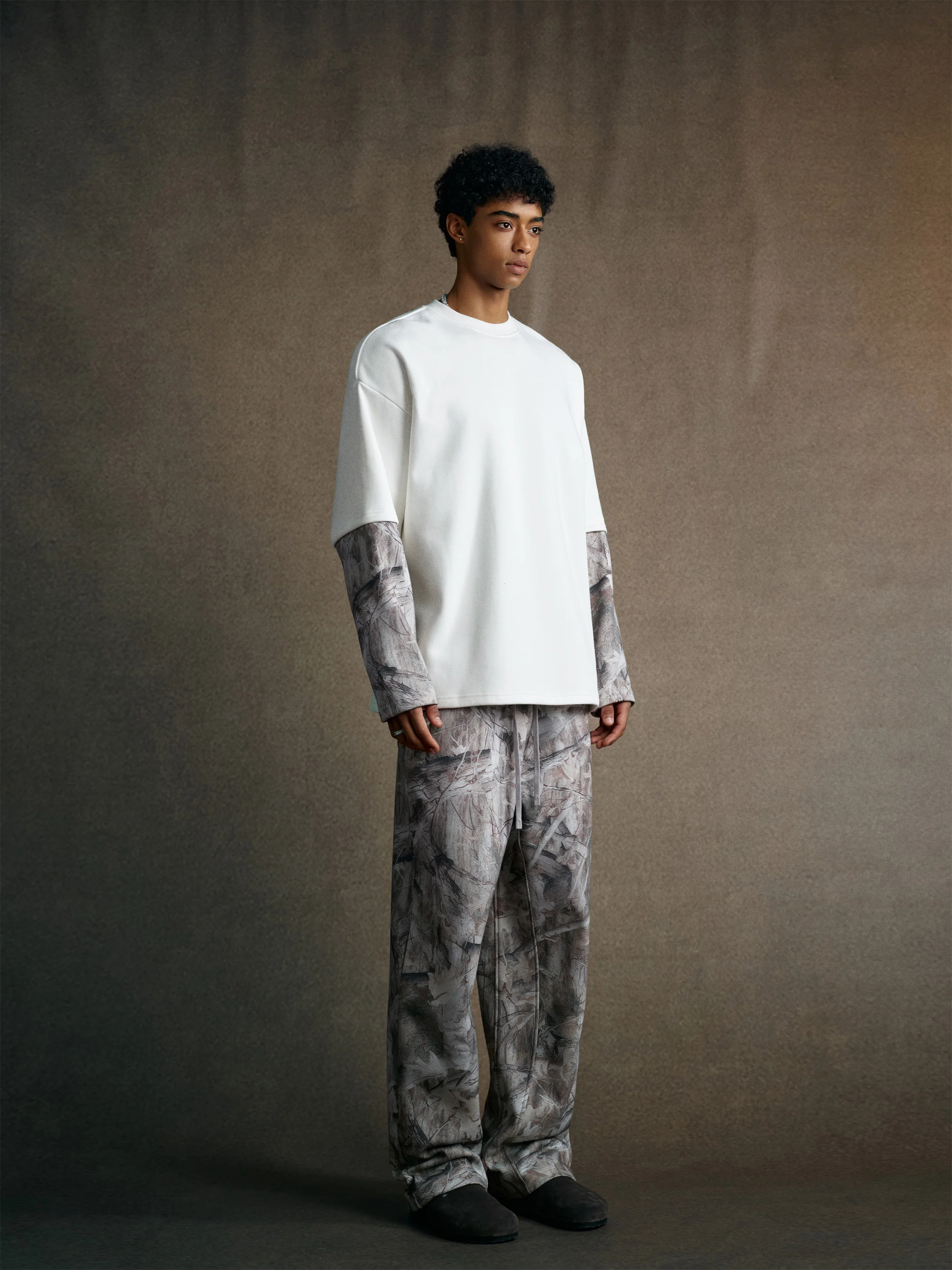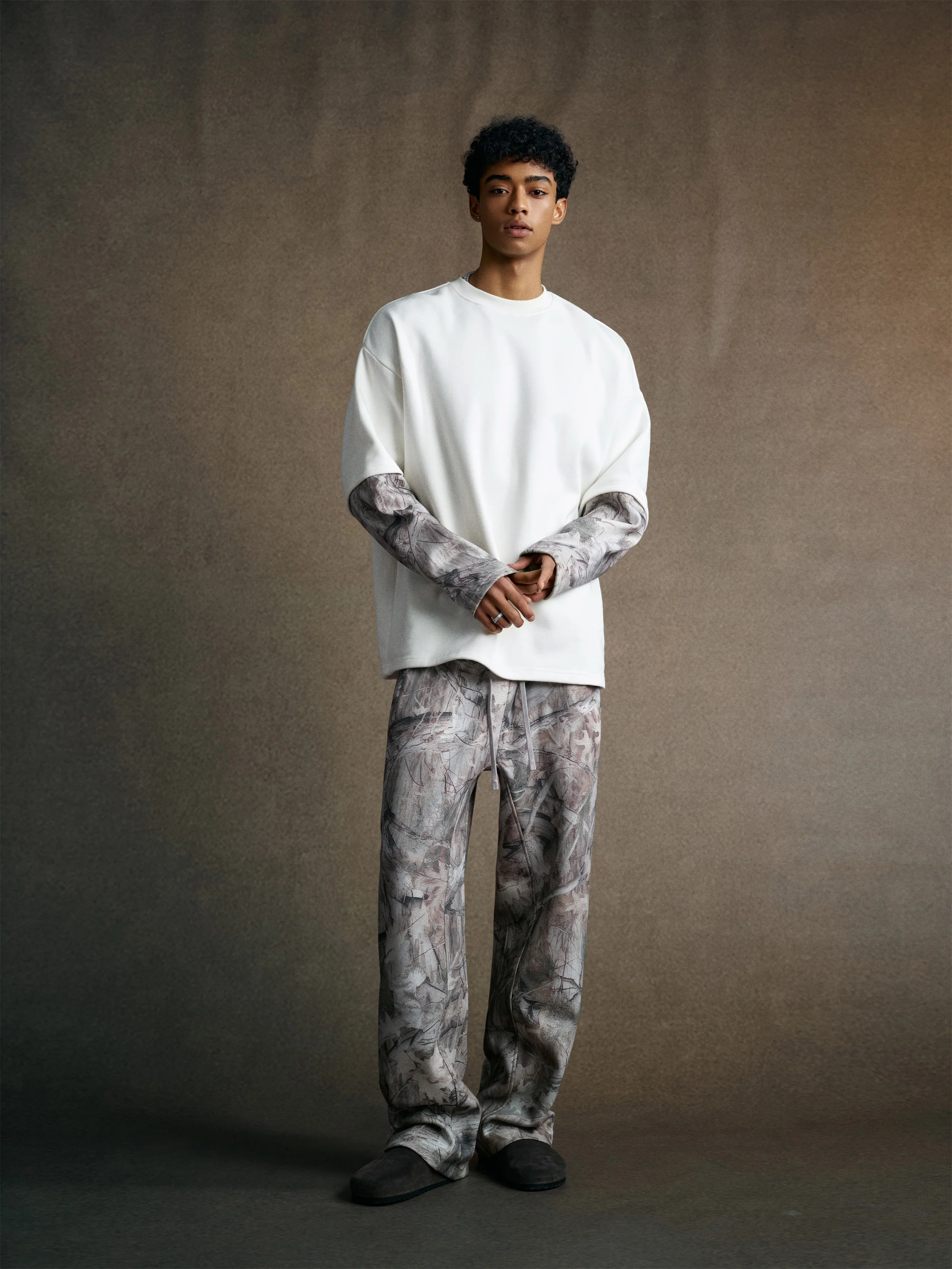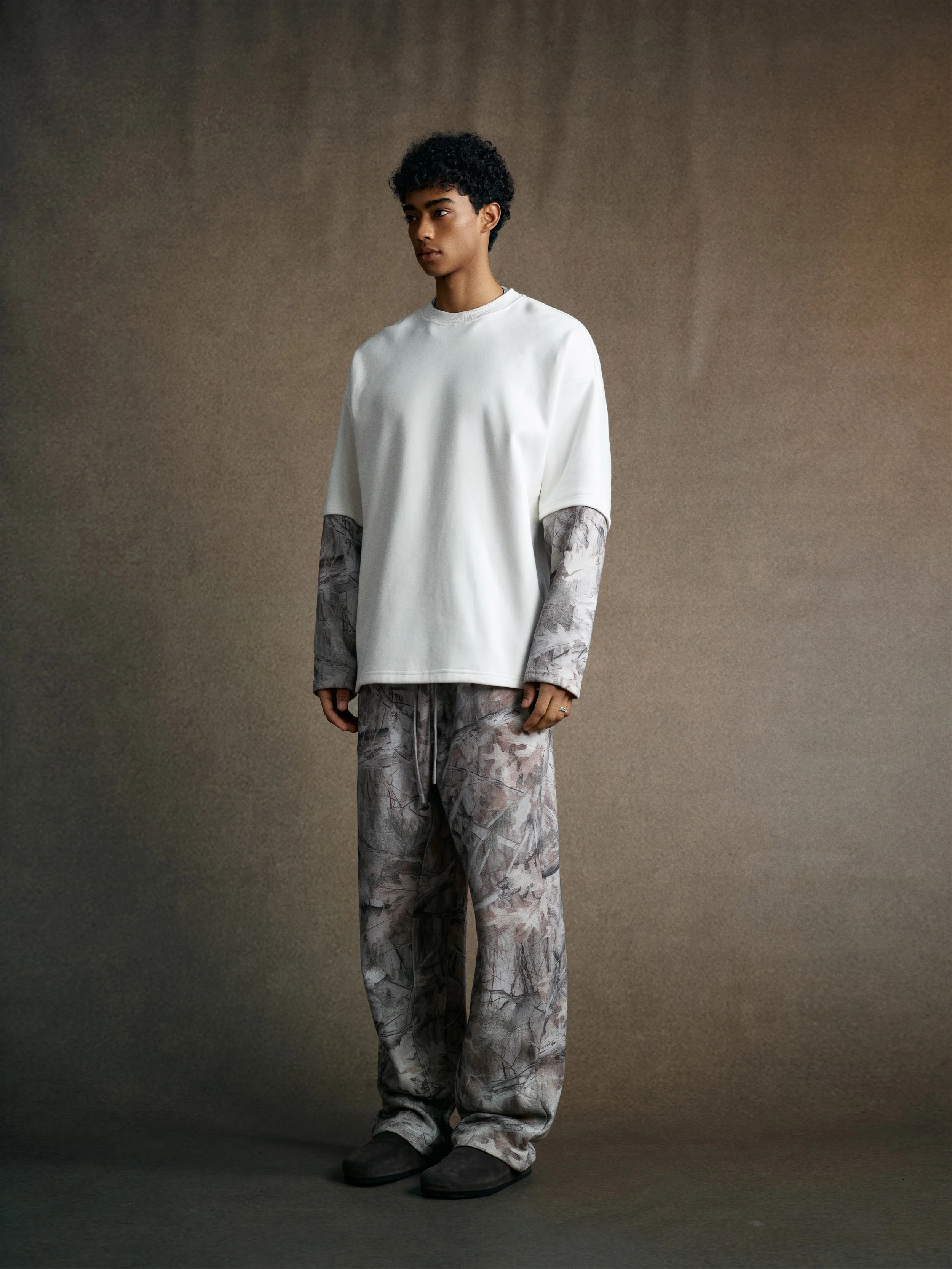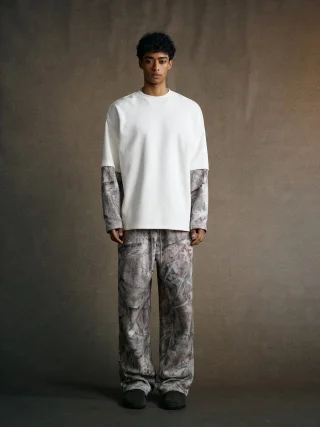 340GSM Men’s Heat Transfer Desert Camouflage Layered Look Long-Sleeve T-Shirt