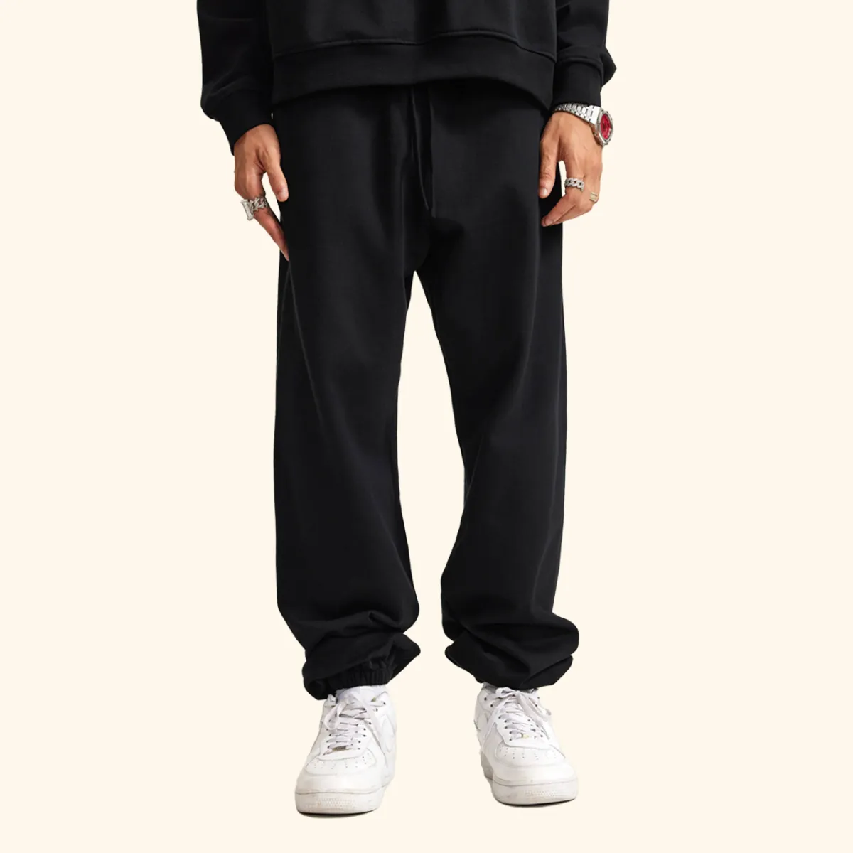 345GSM Unisex Fleece-Lined Clean Solid Drawstring Jogger Sweatpants
