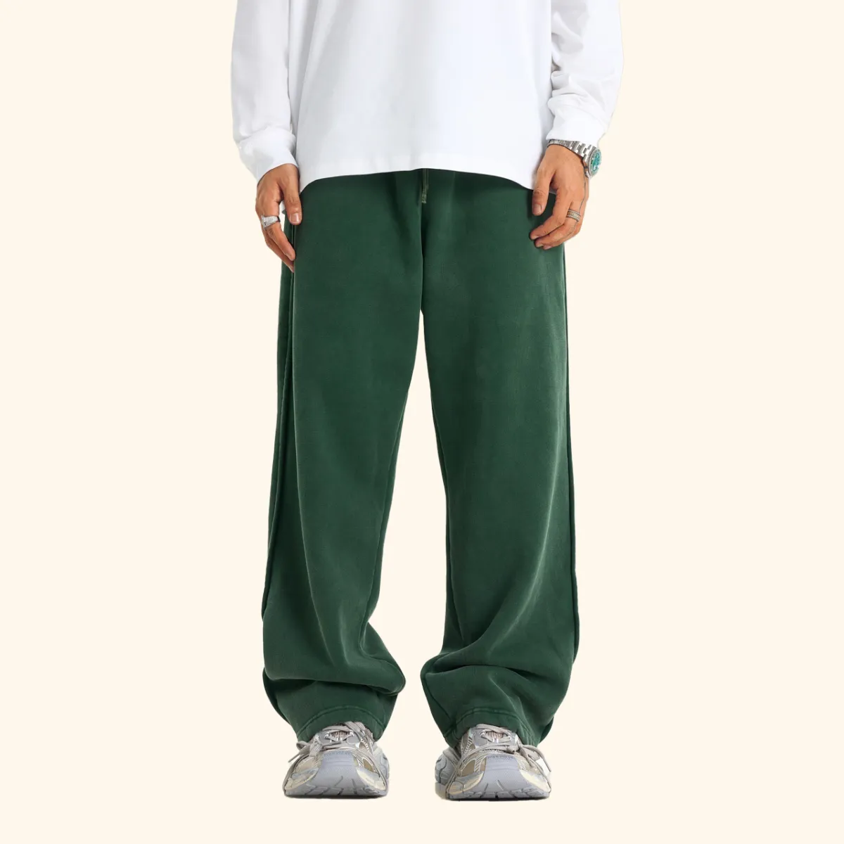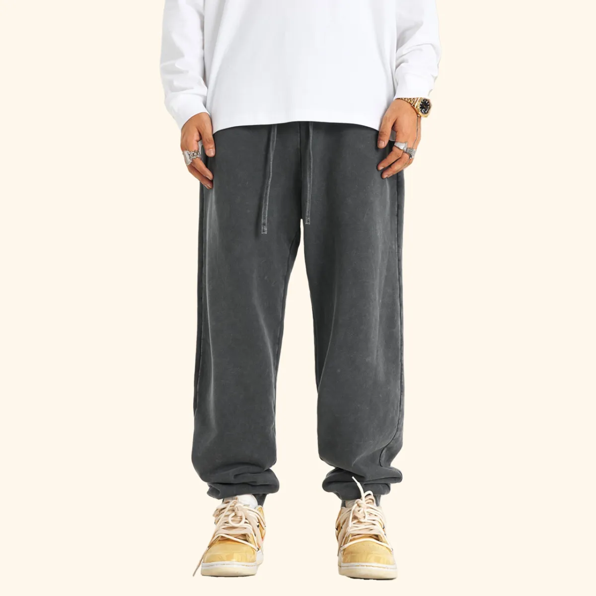 400GSM Men’s Vintage-Wash Scythe-Cut Long Pants