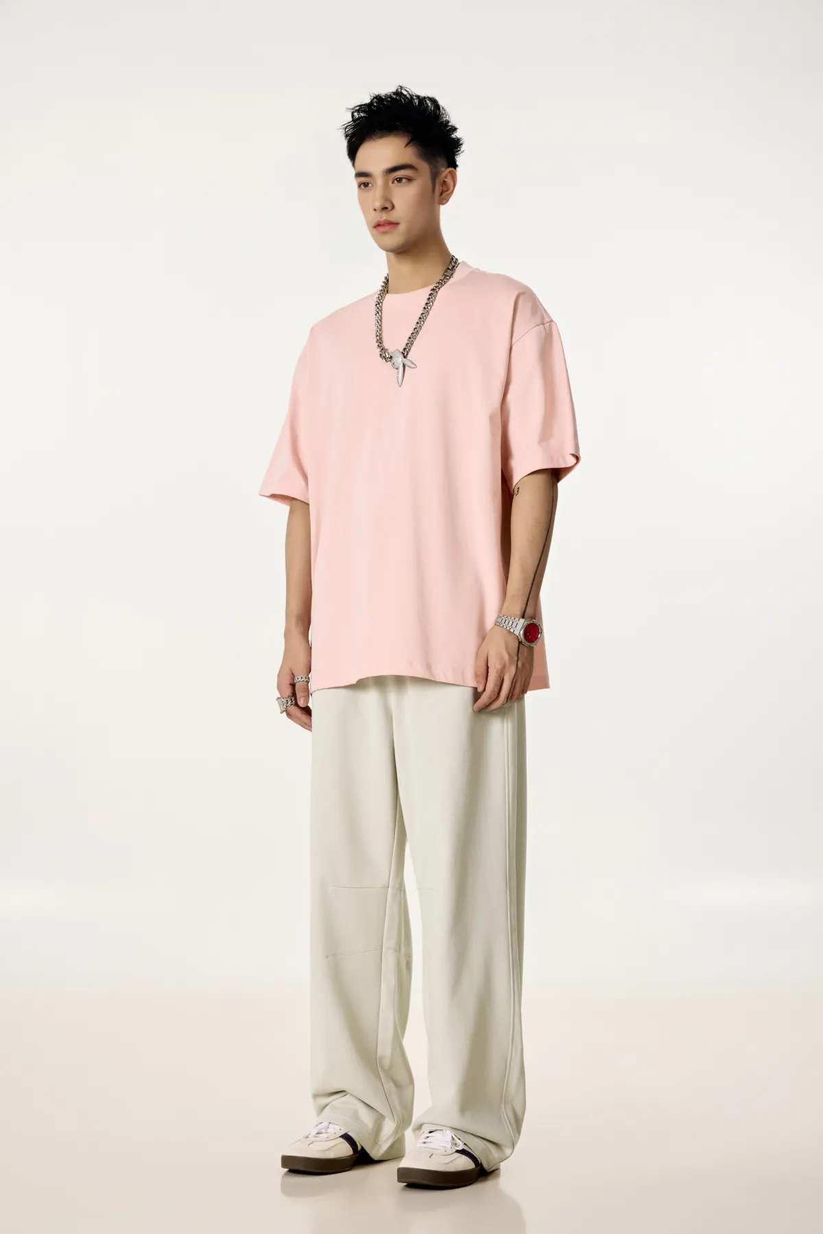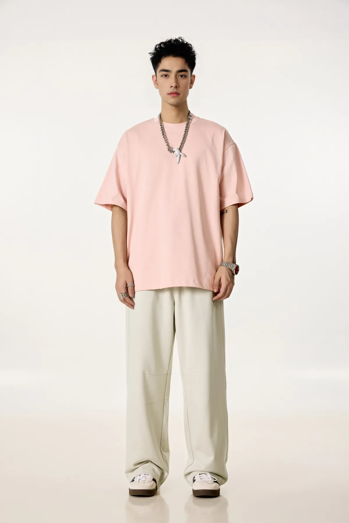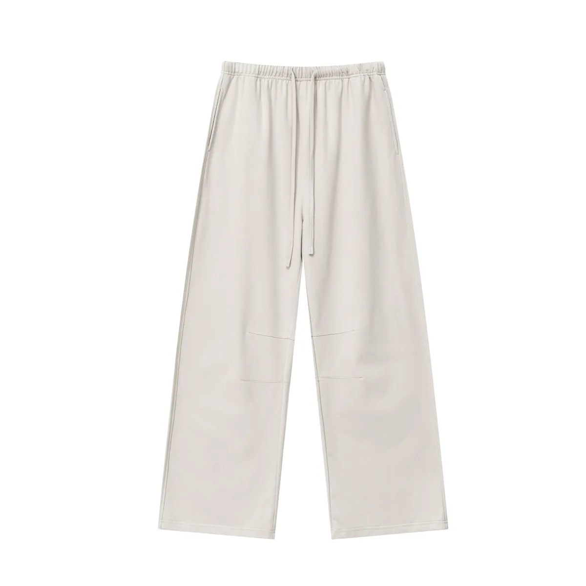 This 280gsm lounge set is made from a soft ribbed cotton blend (81% cotton, 19% polyester), offering comfortable stretch, smooth handfeel, and stable shrinkage control within 5%. Featuring advanced dyeing technology, the fabric maintains brightness even after repeated washing. Designed with a self-fabric elastic waistband, contrast cotton drawcords, and precise stitching (12 stitches per inch), the set delivers durability and a clean, refined look. The pant leg features tailored tucks and neat hem finishing for improved fit and structure. A versatile, easy-to-wear silhouette ideal for POD programs and private-label collections.