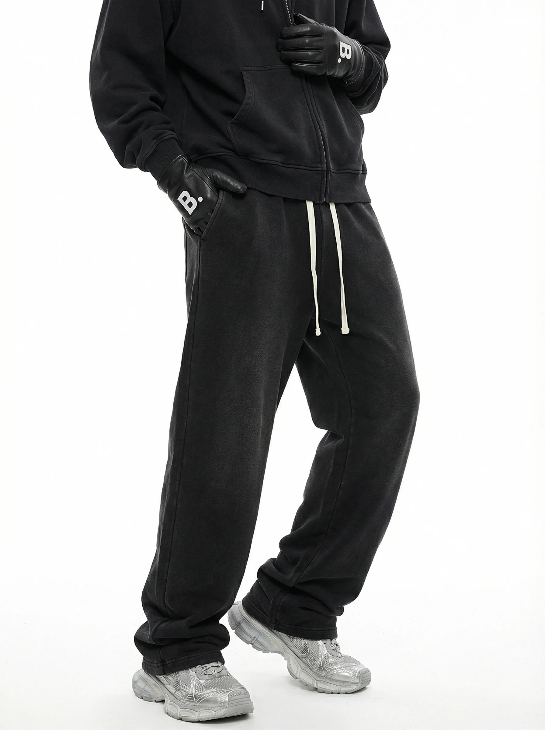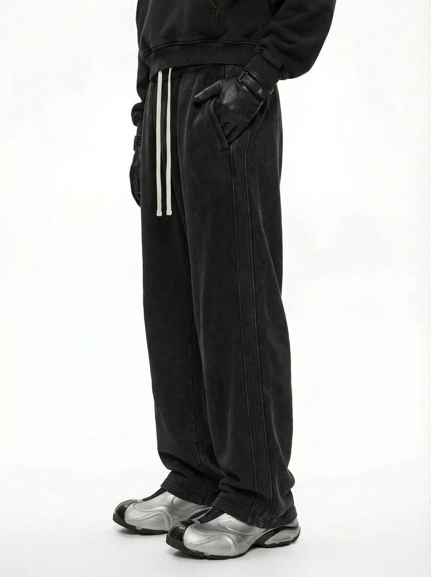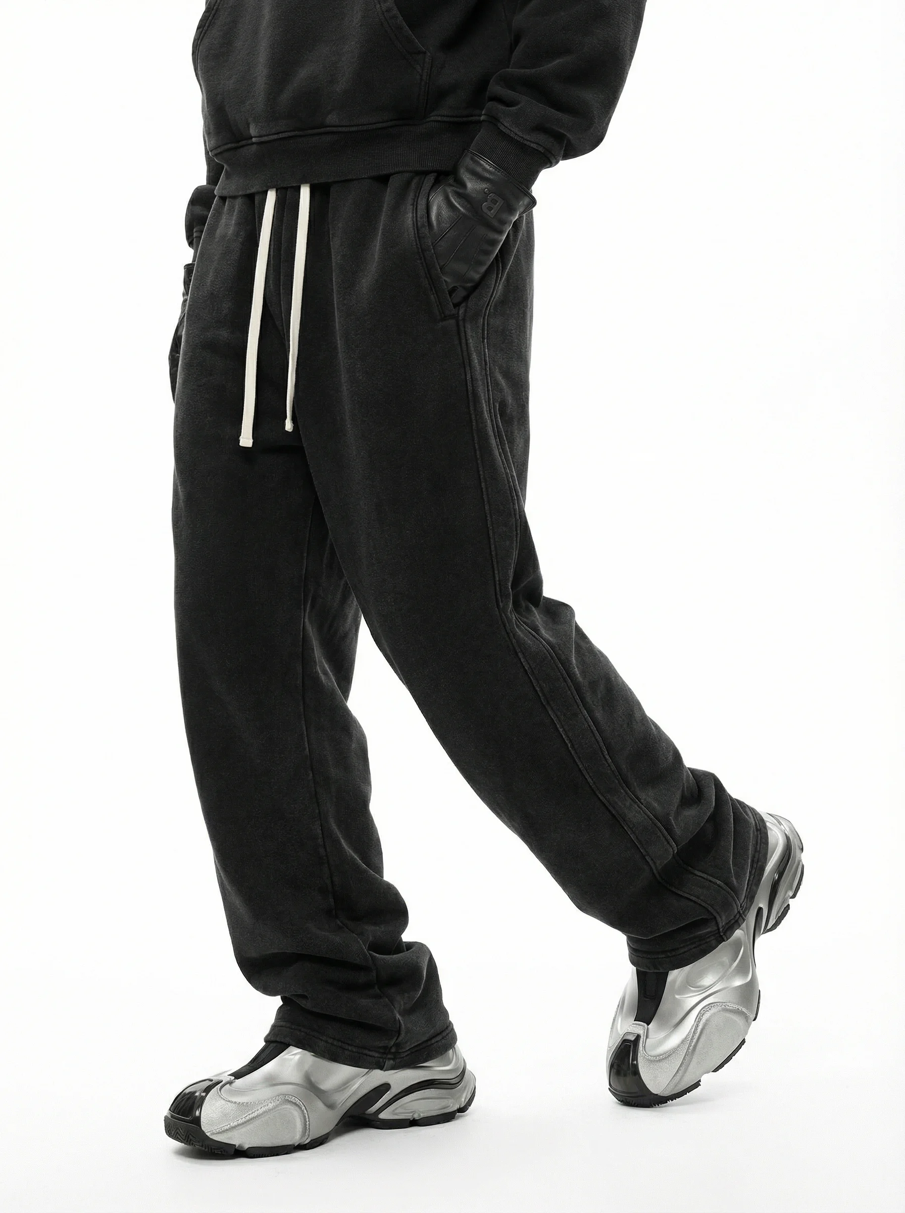400GSM Men’s Vintage-Wash Scythe-Cut Long Pants