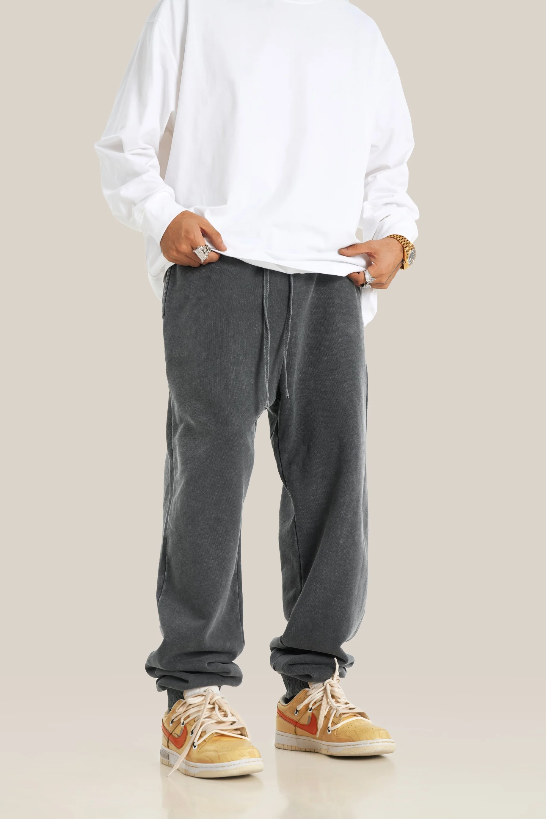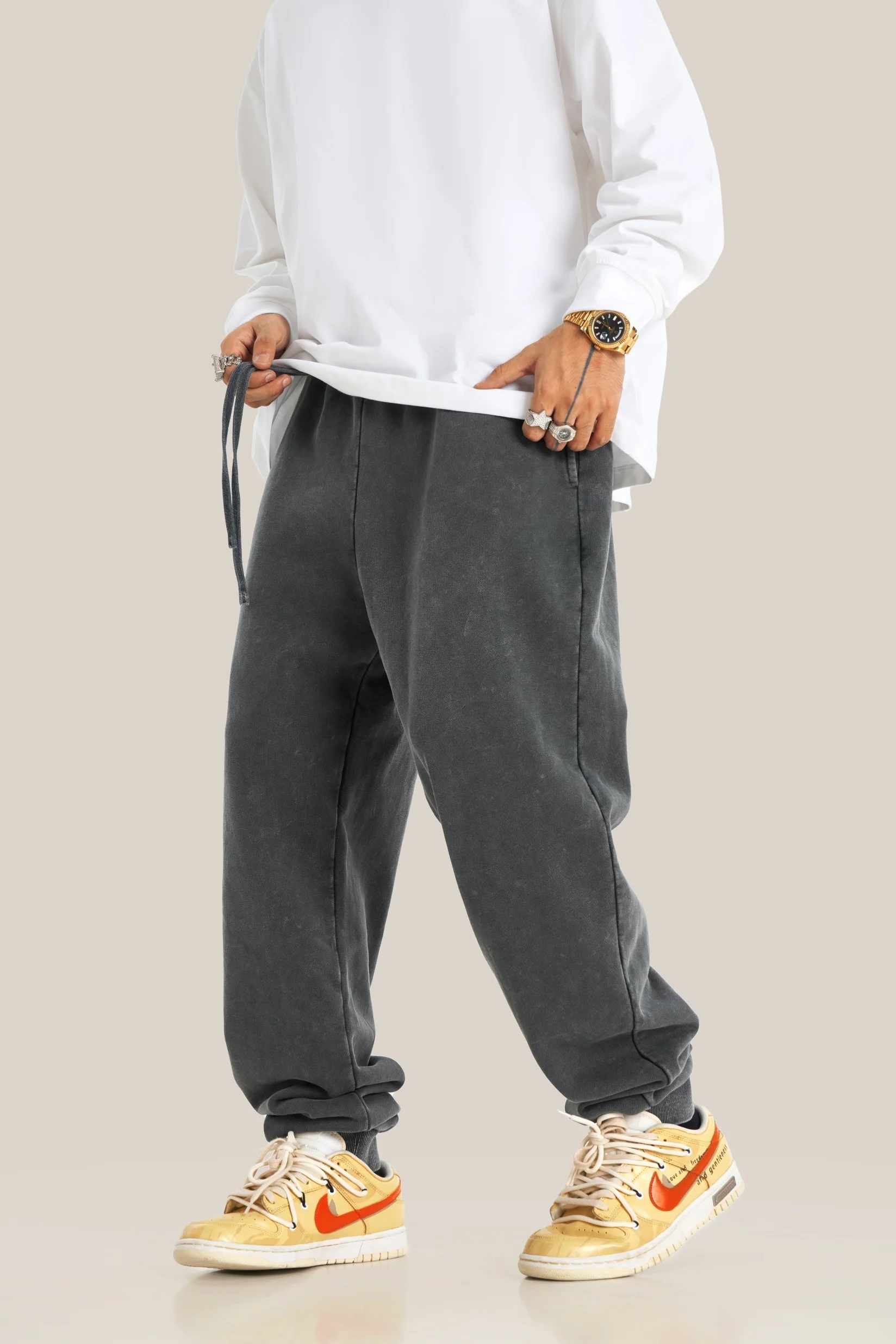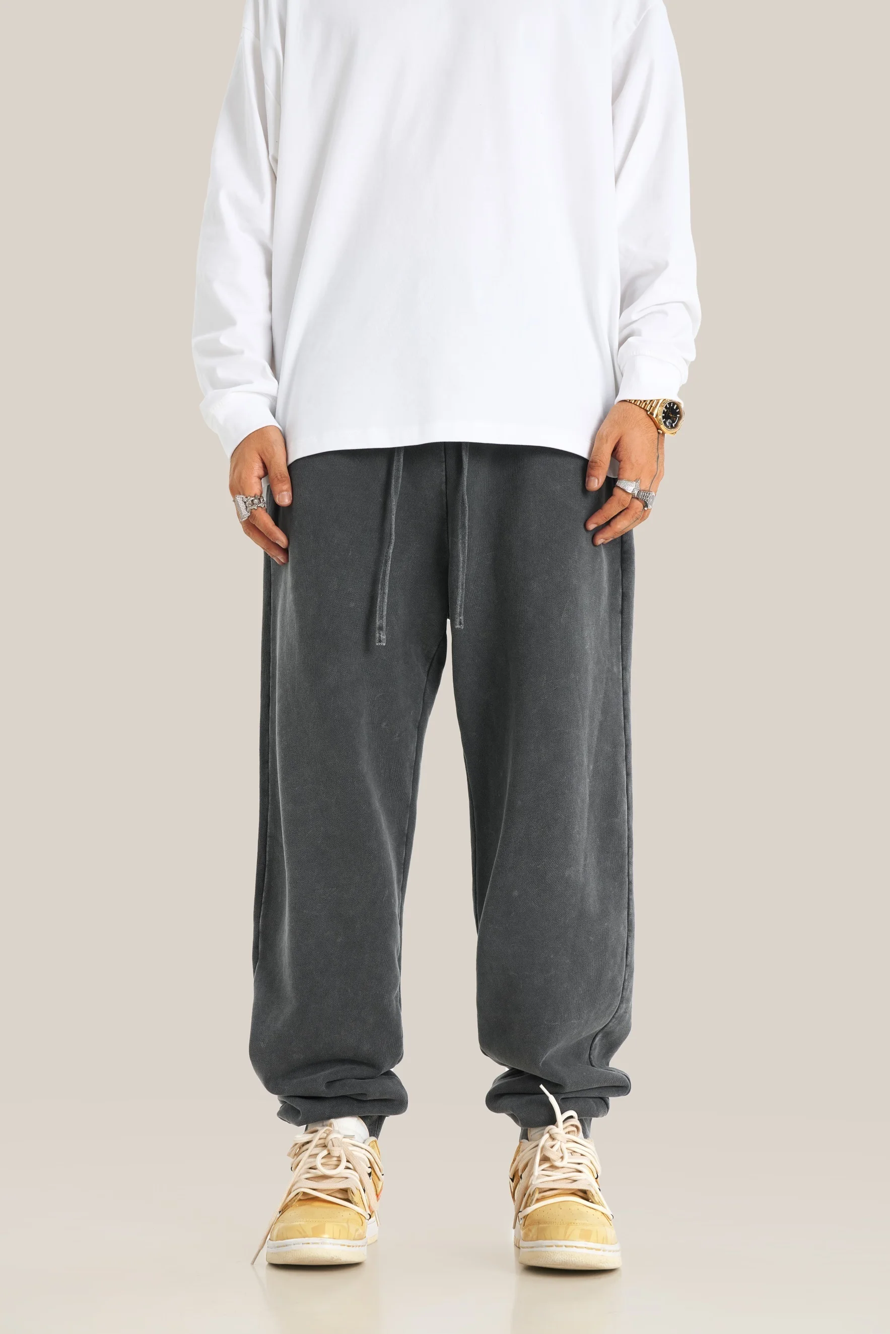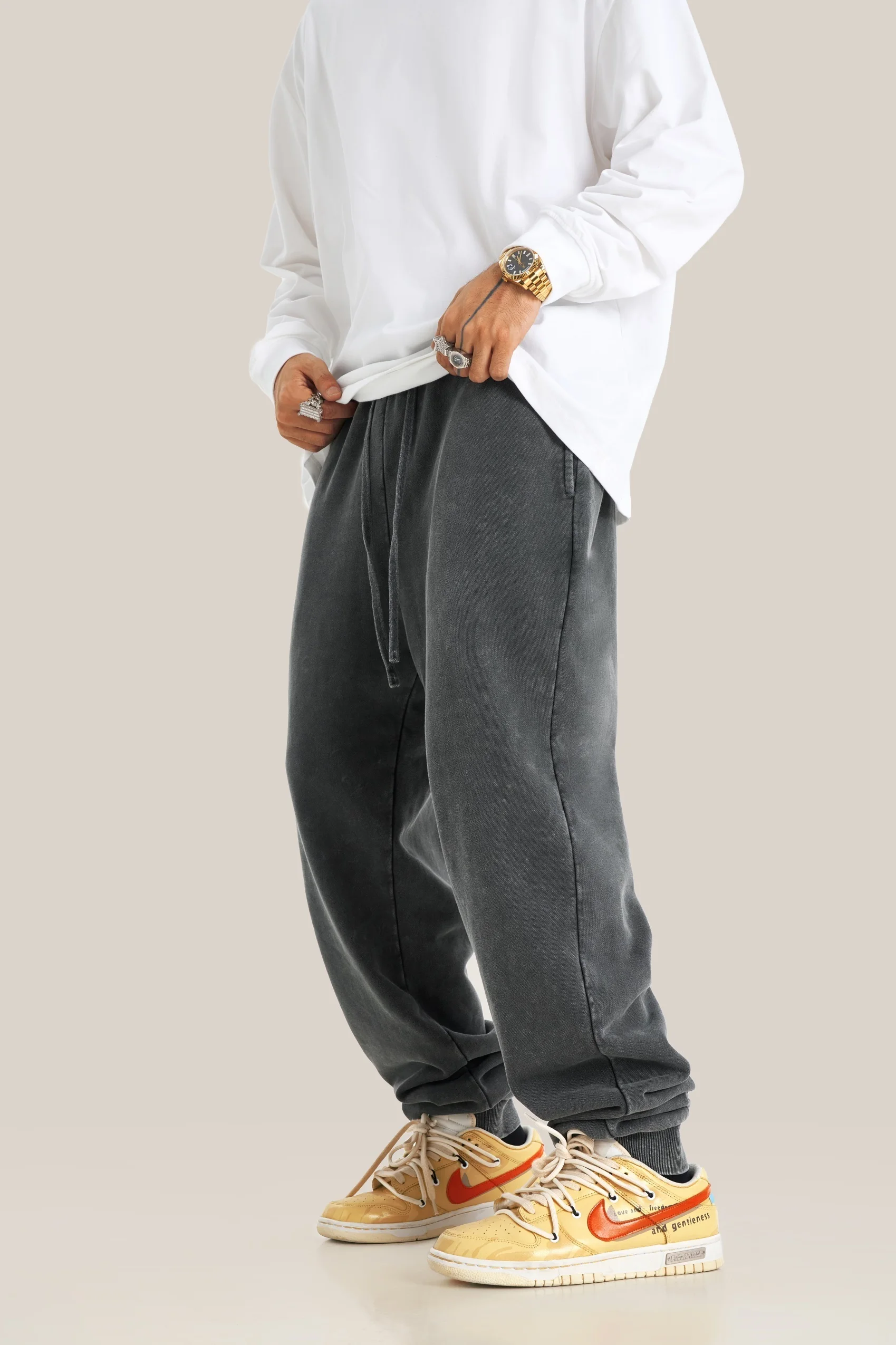 400GSM Heavyweight Snow-Washed Ribbed-Cuff Jogger Sweatpants
