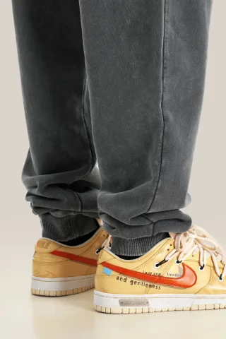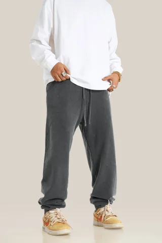 Loose-fit jogger pants made from 100% cotton, 400g beefy fleece with a vintage marled wash for a natural, retro look. Forward side seams visually slim the legs, while ribbed cuffs secure the ankle for better mobility. Features durable flat drawcord with reinforced bar-tack tips, elastic waistband with adjustable drawstring, wind-resistant rib cuffs, and functional side and back pockets. A versatile, body-inclusive silhouette ideal for winter collections.