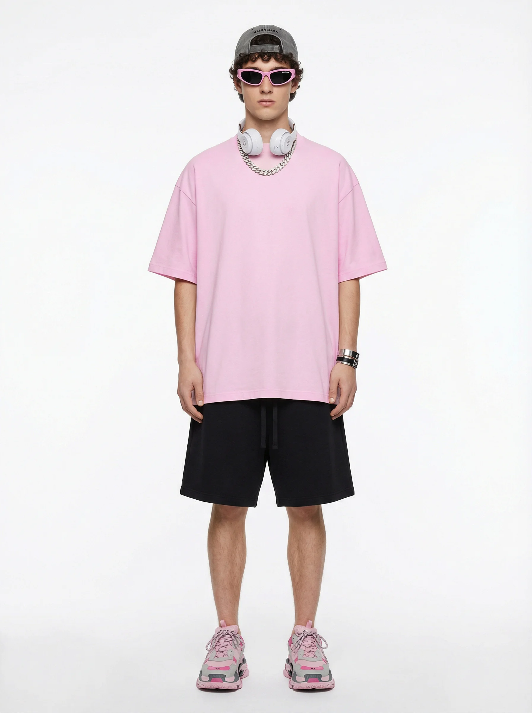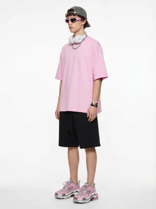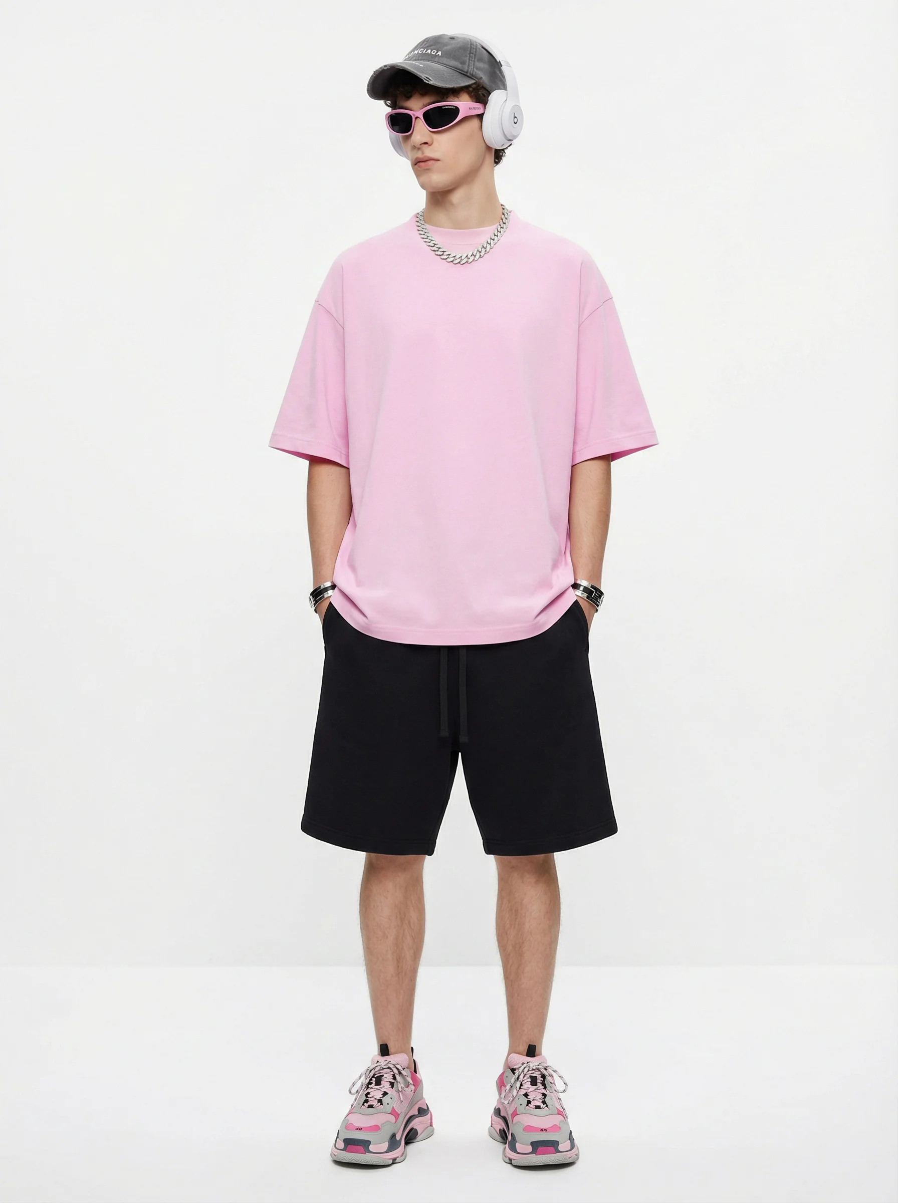 240GSM Men’s Ice-Feel Sorona Boxy-Fit Solid-Color Loose Short-Sleeve T-shirt
