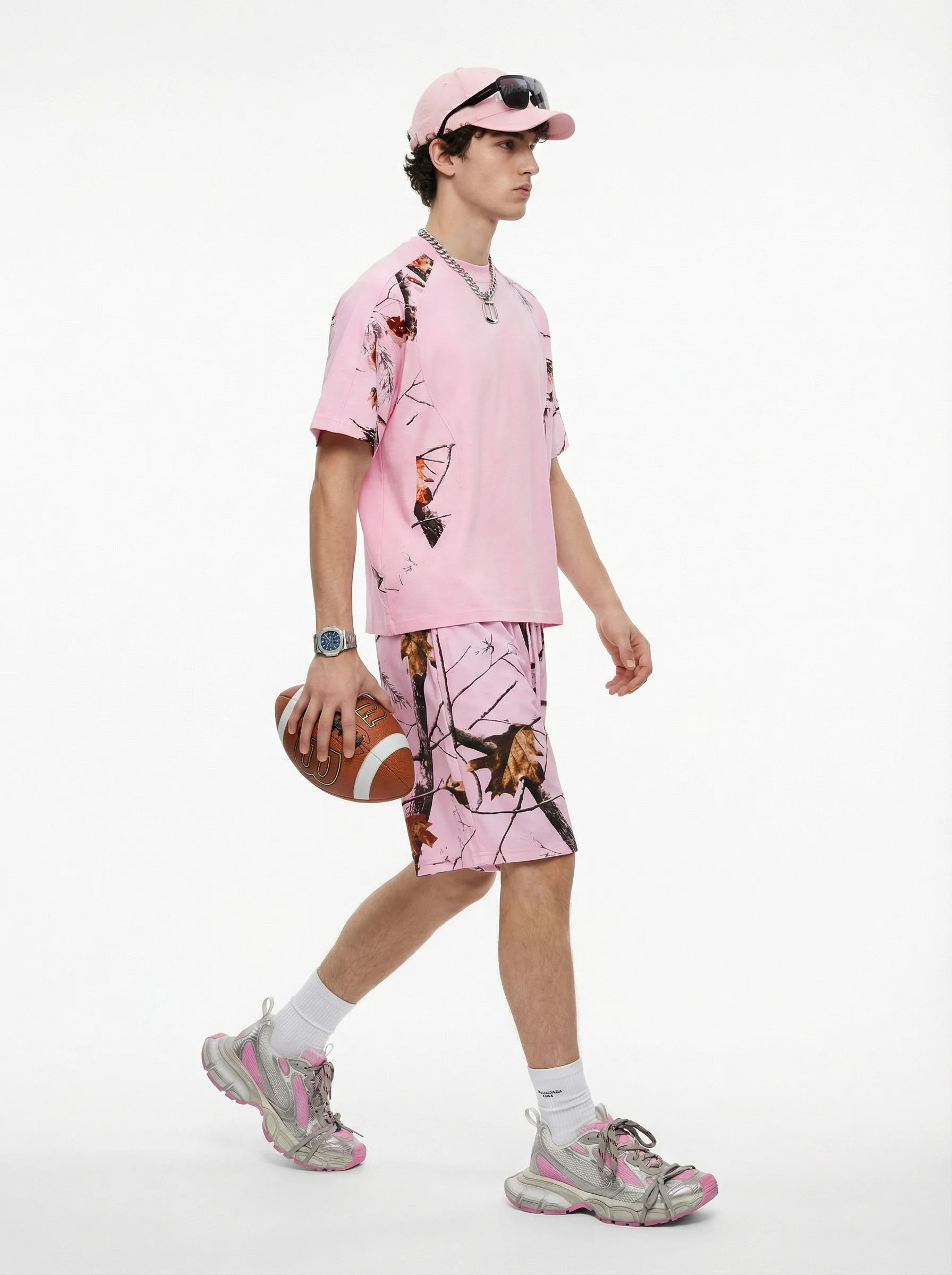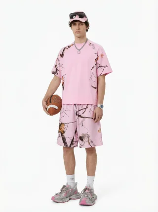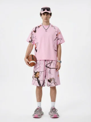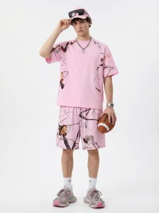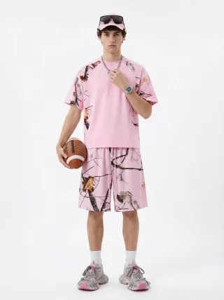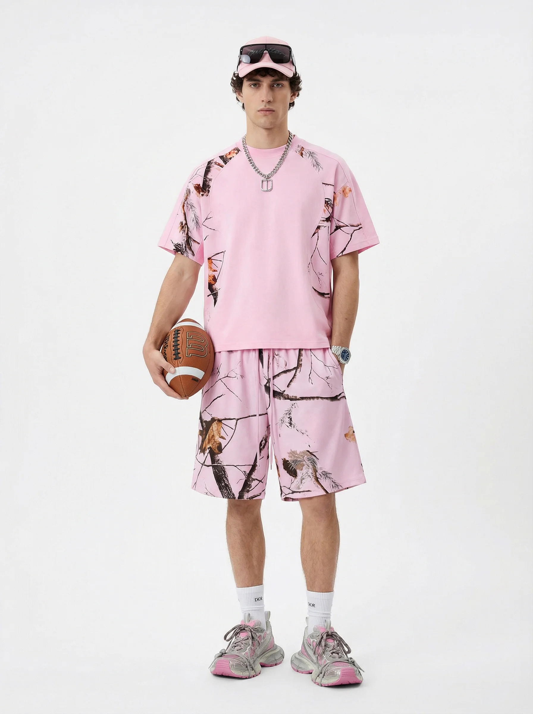 240GSM Men’s Heat-Transfer Branch Print Structured Panel T-shirt
