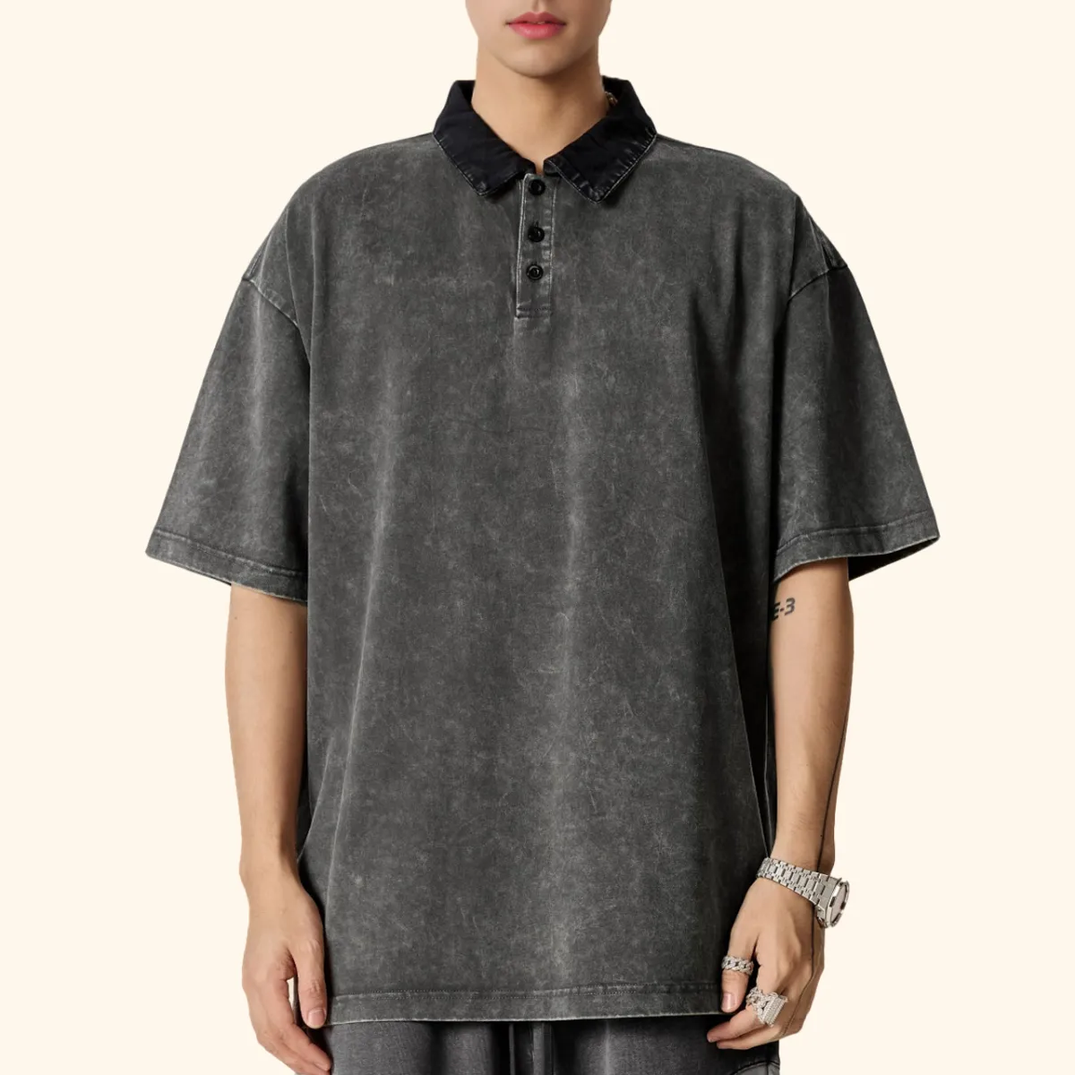 285GSM Vintage Washed Polo T-Shirt 100% Cotton Twill