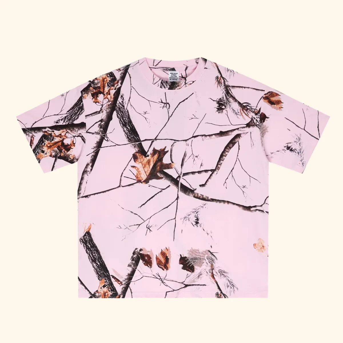 240GSM Men’s Relaxed Fit Tree Leaf Heat-Transfer Short-Sleeve T-shirt