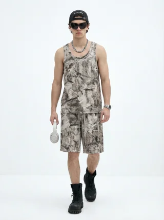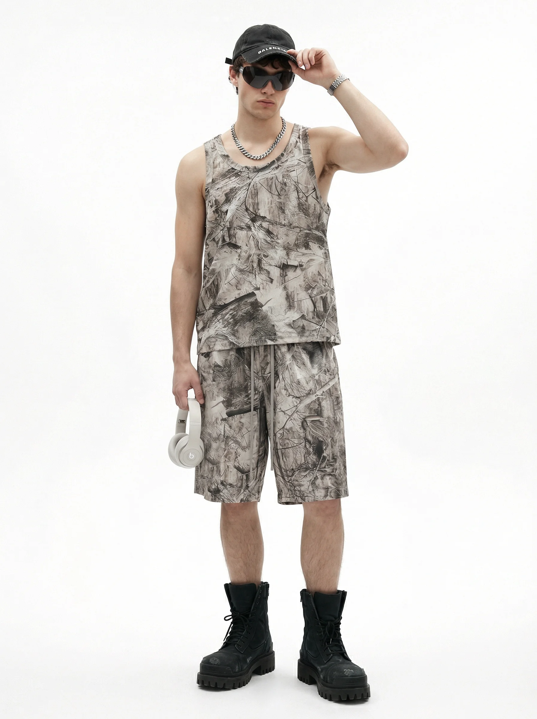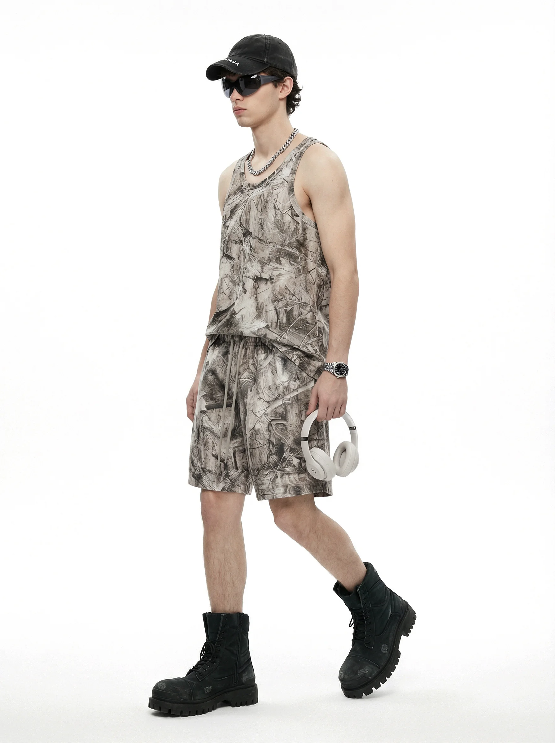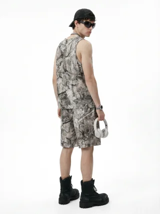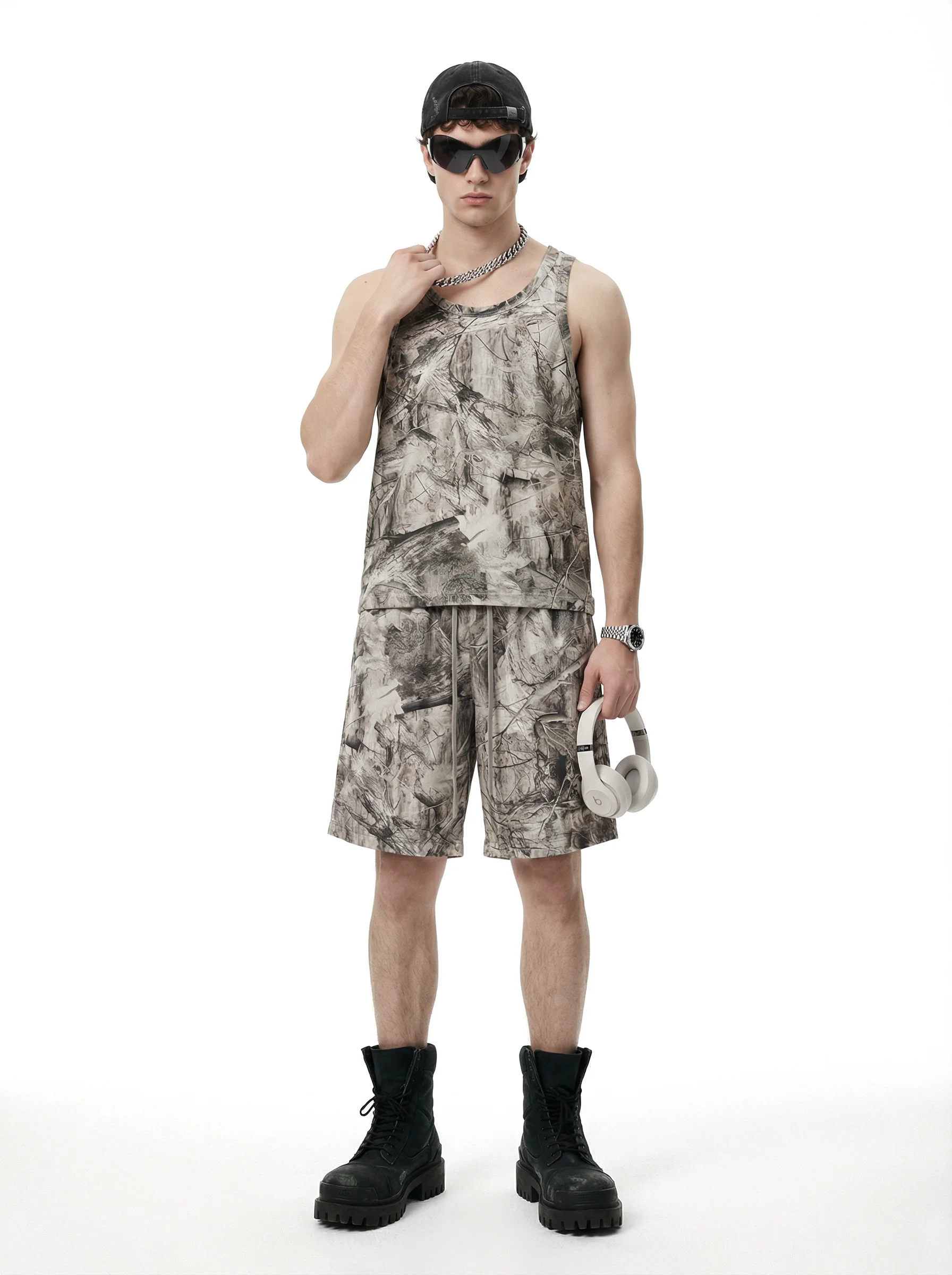 Made with 315GSM stretch rib fabric for strong elasticity, shape retention, and long-lasting color clarity. The fitted racerback cut highlights shoulder and arm lines, delivering a clean and athletic silhouette. Branch camo print enhances a military-inspired street look with sharp, durable heat-transfer detailing. Bound neckline with self-fabric edging ensures durability and comfort without deformation. Designed for active movement and daily styling — sporty, rugged, and easy to layer.