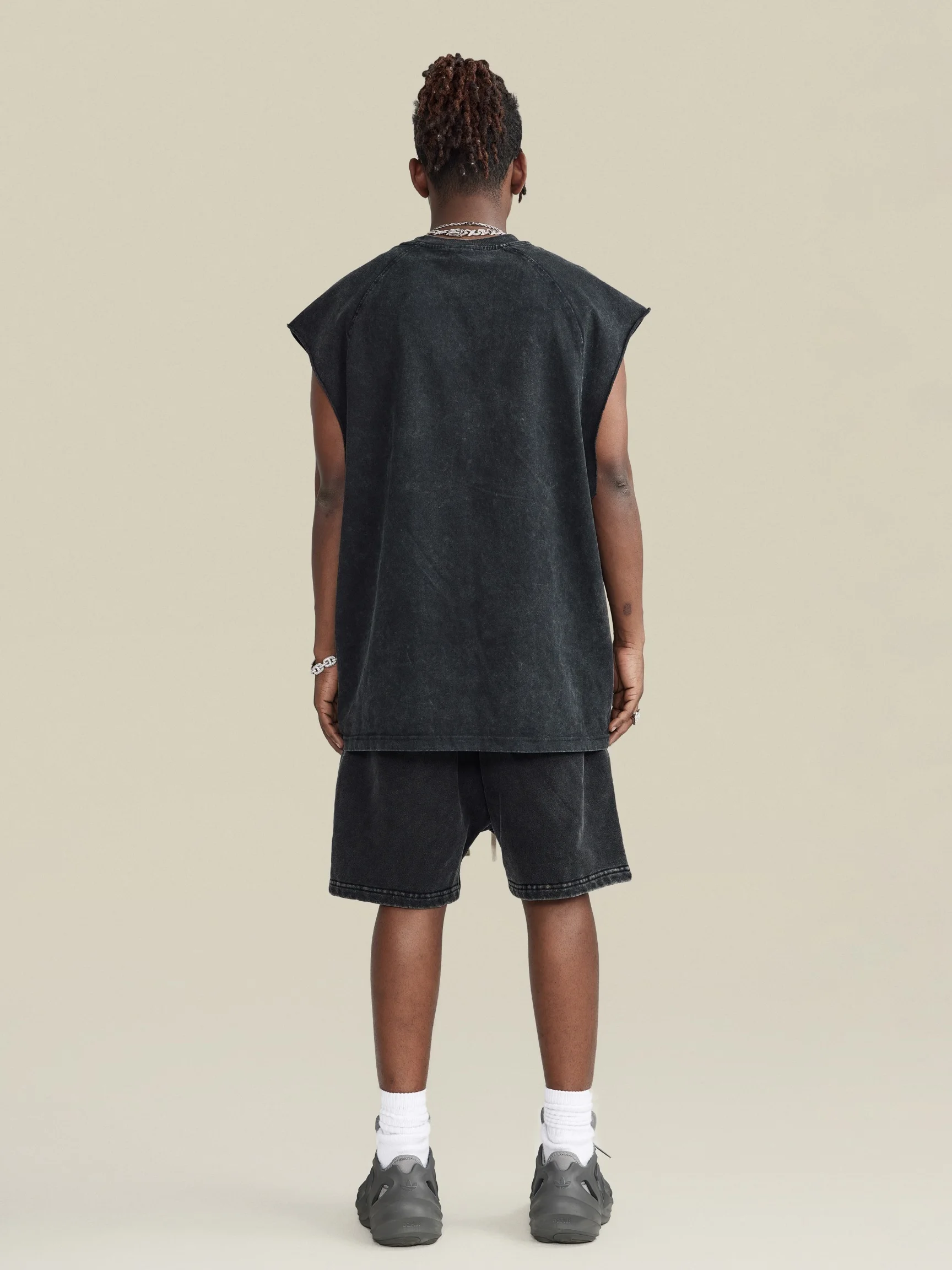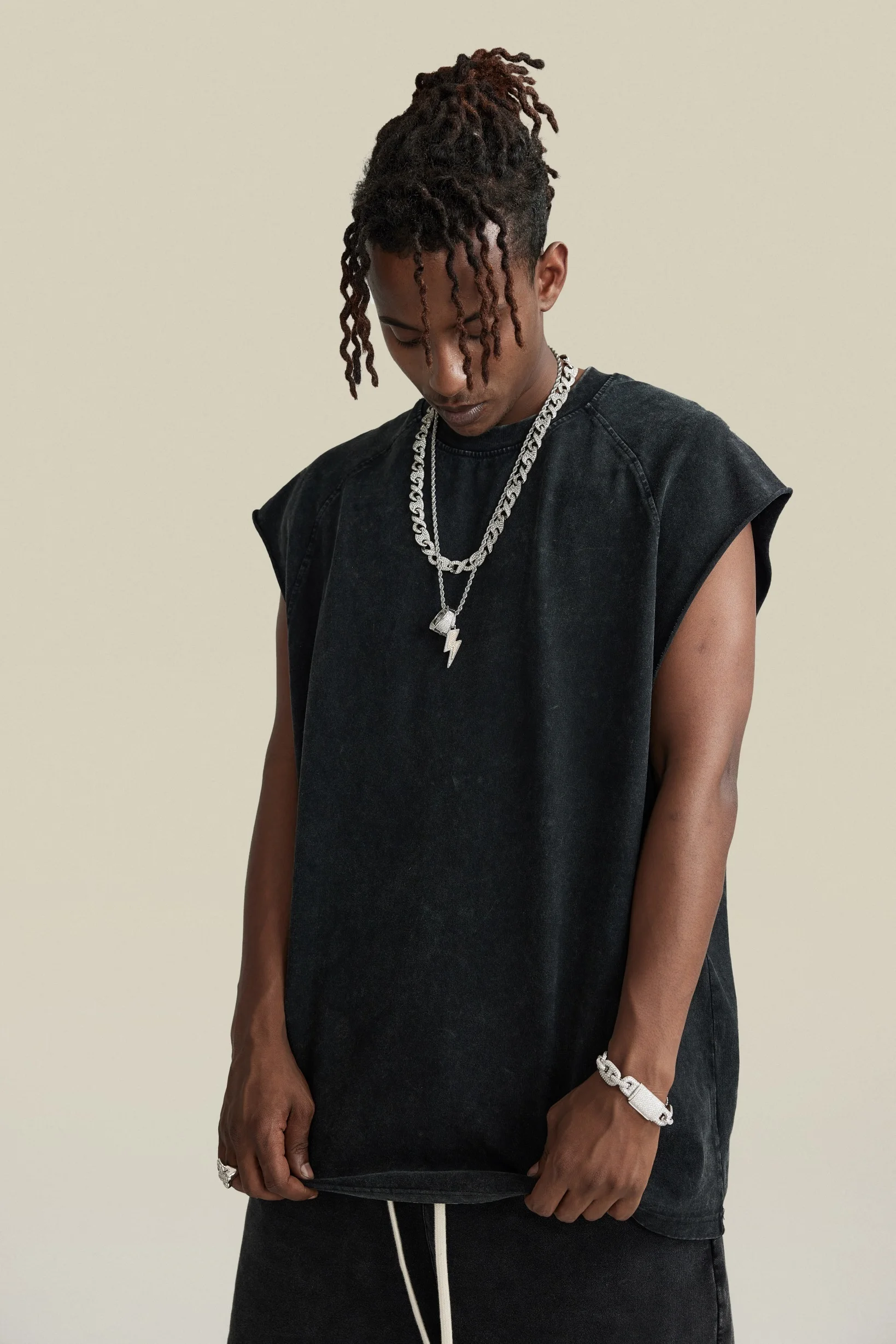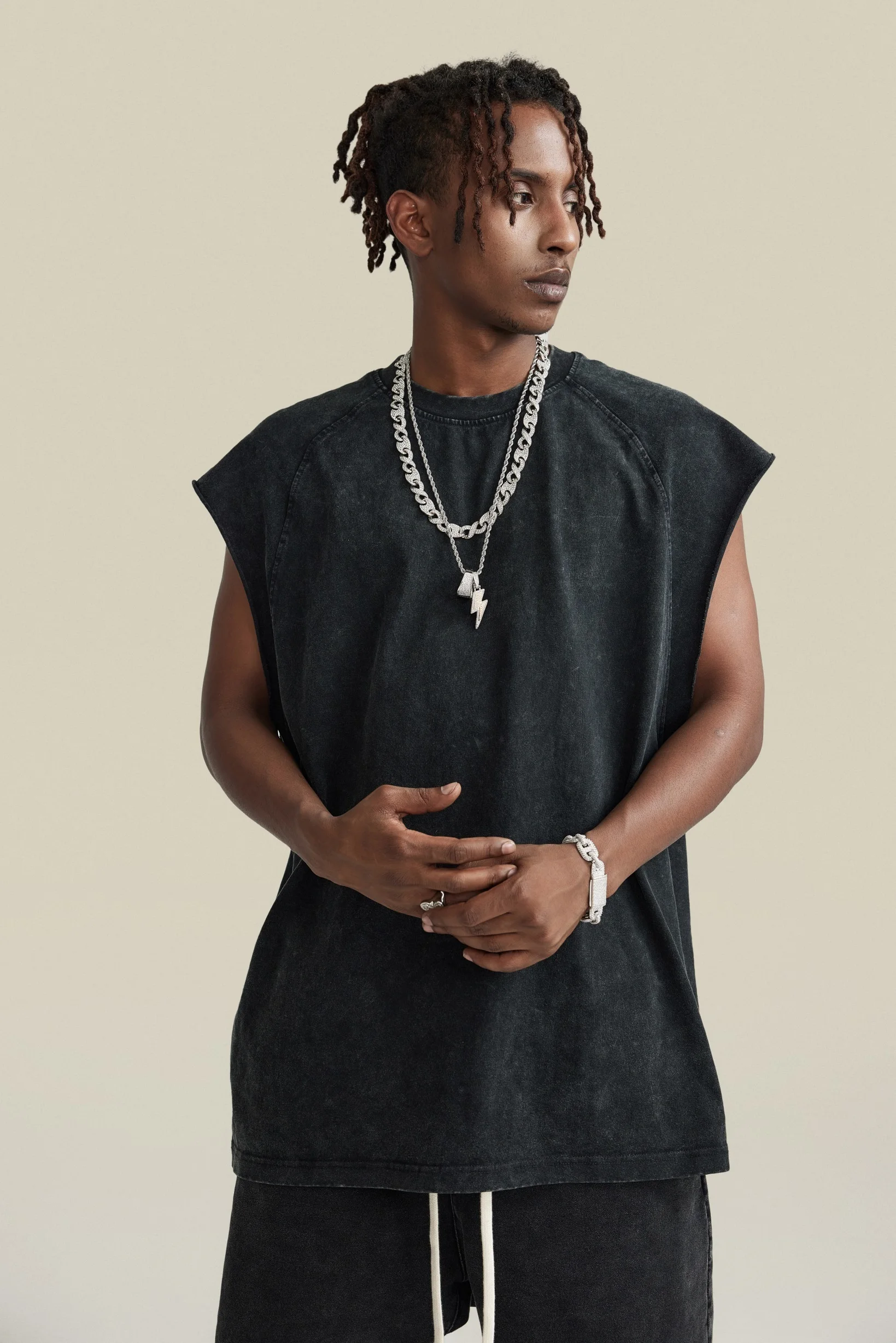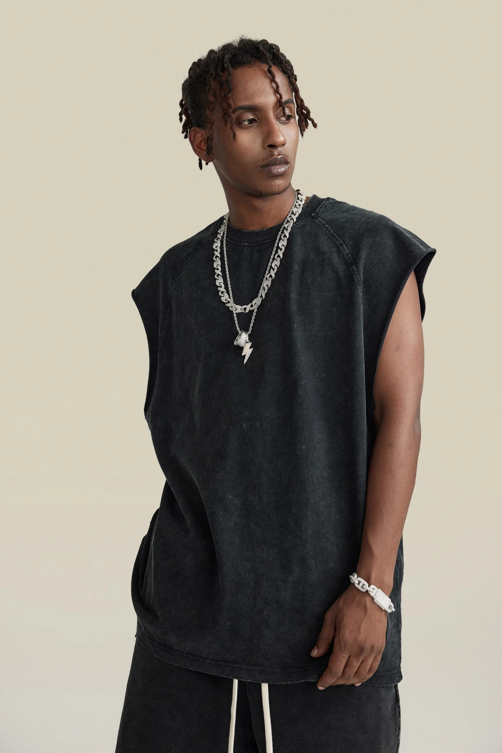 285GSM Men‘s Raglan-Style Snow-Wash Sleeveless T-shirt
