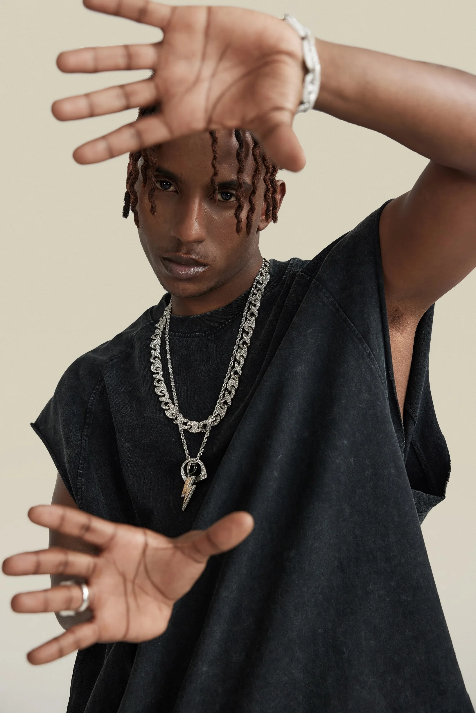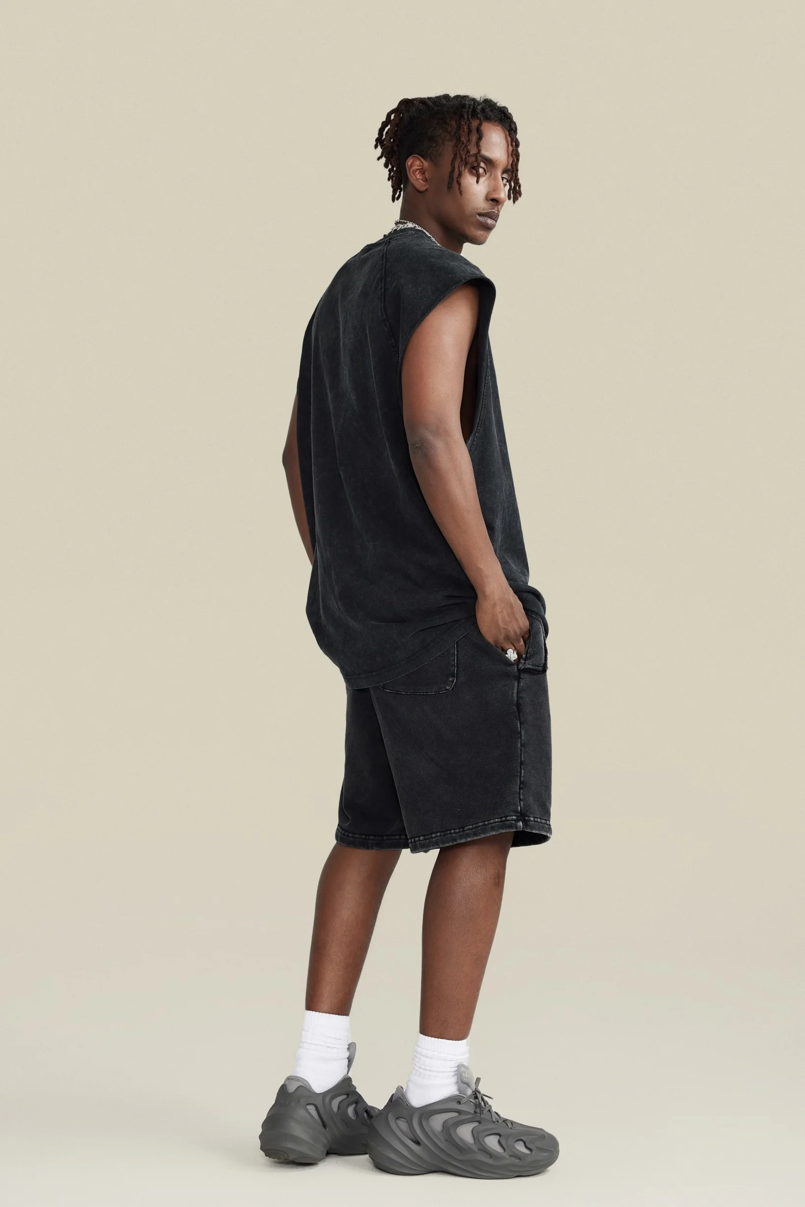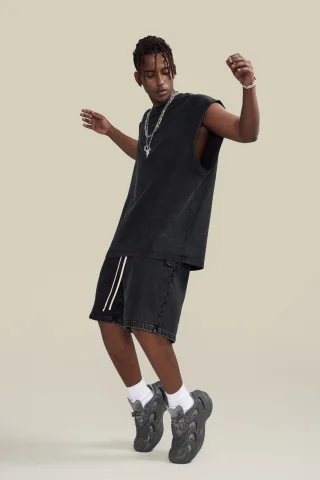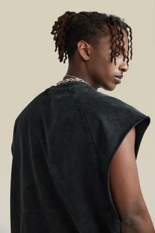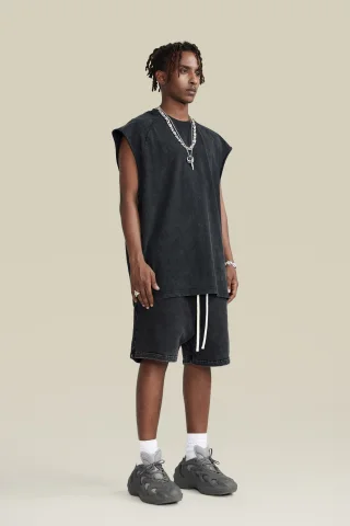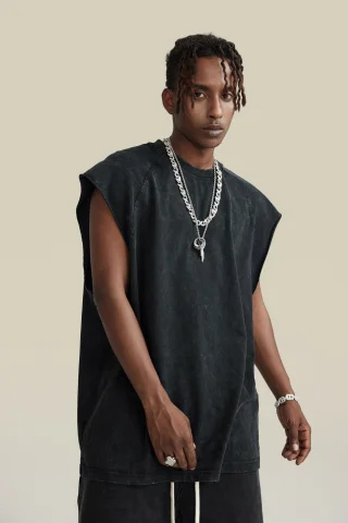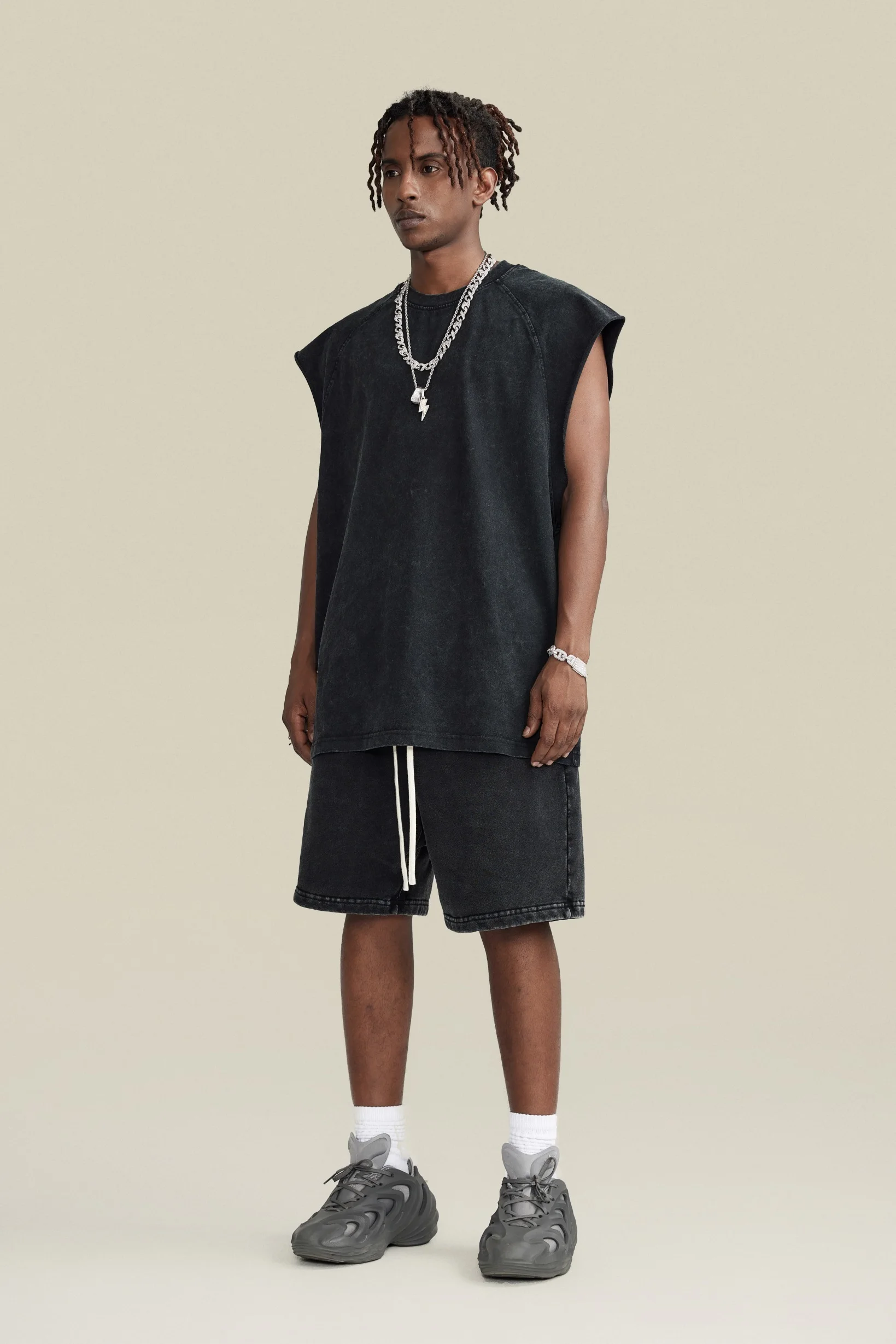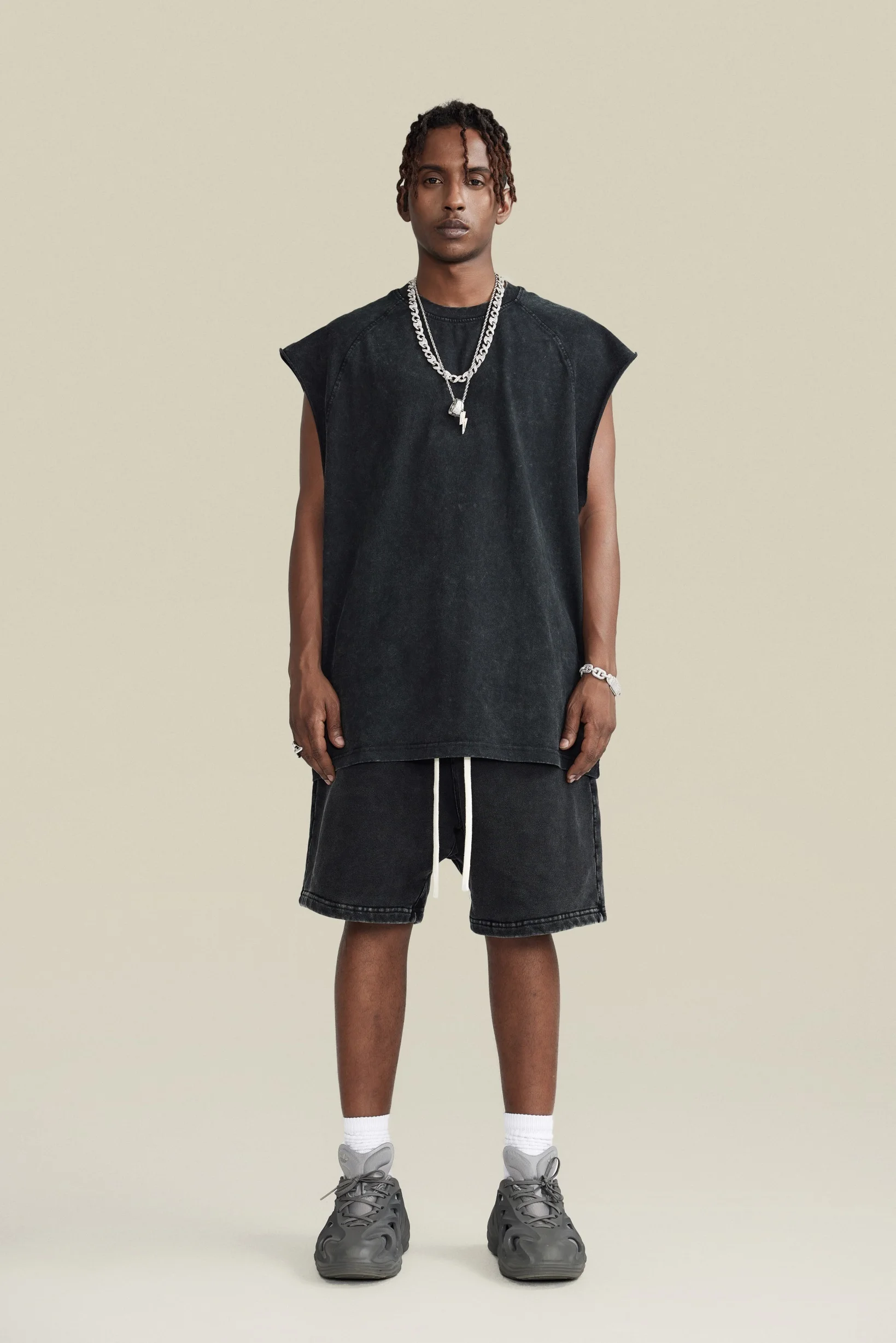 285GSM Men‘s Raglan-Style Snow-Wash Sleeveless T-shirt