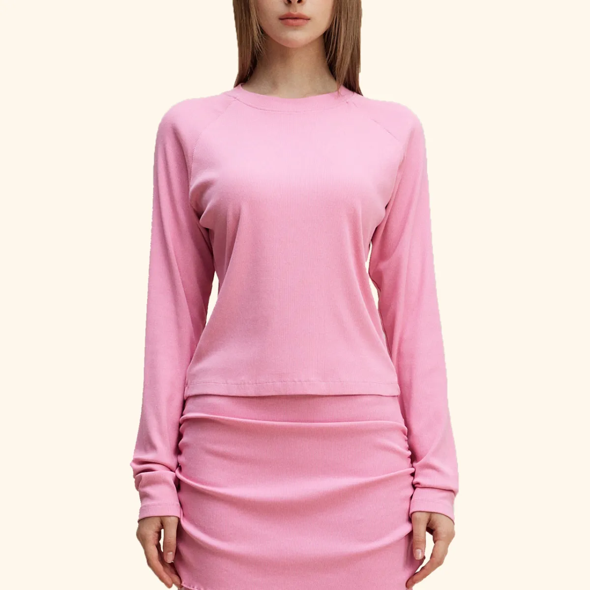 275GSM Washed Cotton Raglan Slim Long Sleeve for Women