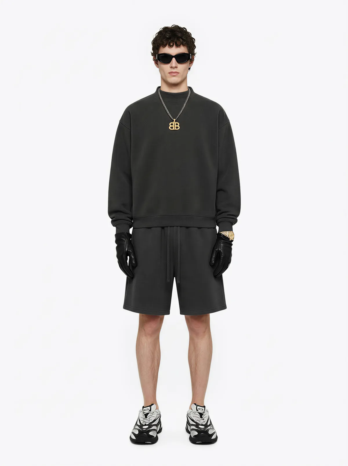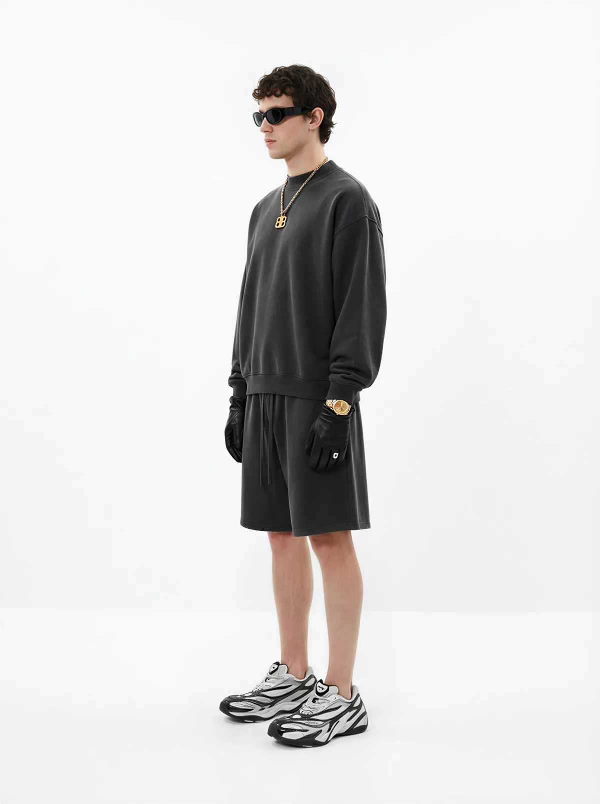 The drop-shoulder silhouette creates a relaxed, contemporary fit, while the ribbed cuffs and hem enhance structure and durability.