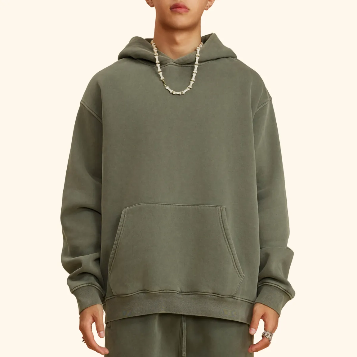 400GSM Unisex Heavyweight Vintage-Wash Pigment-Dye Hooded Sweatshirt