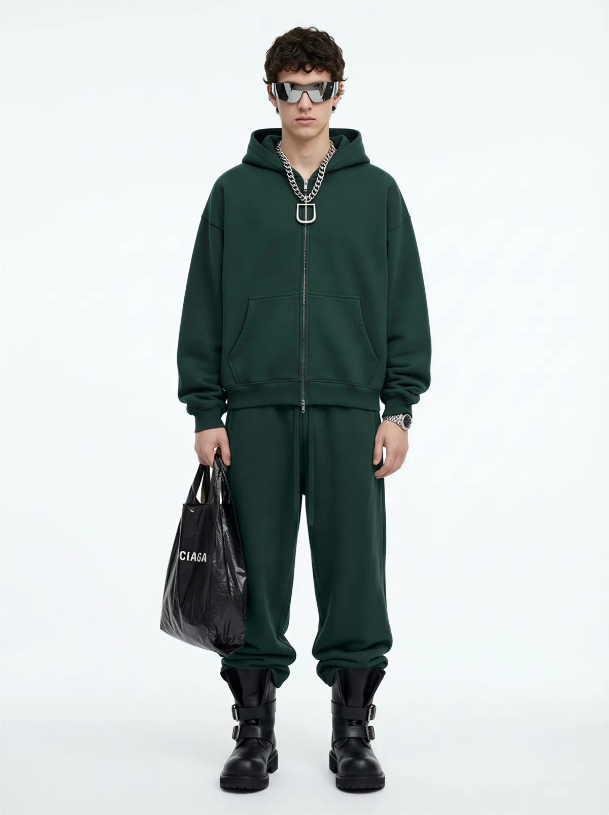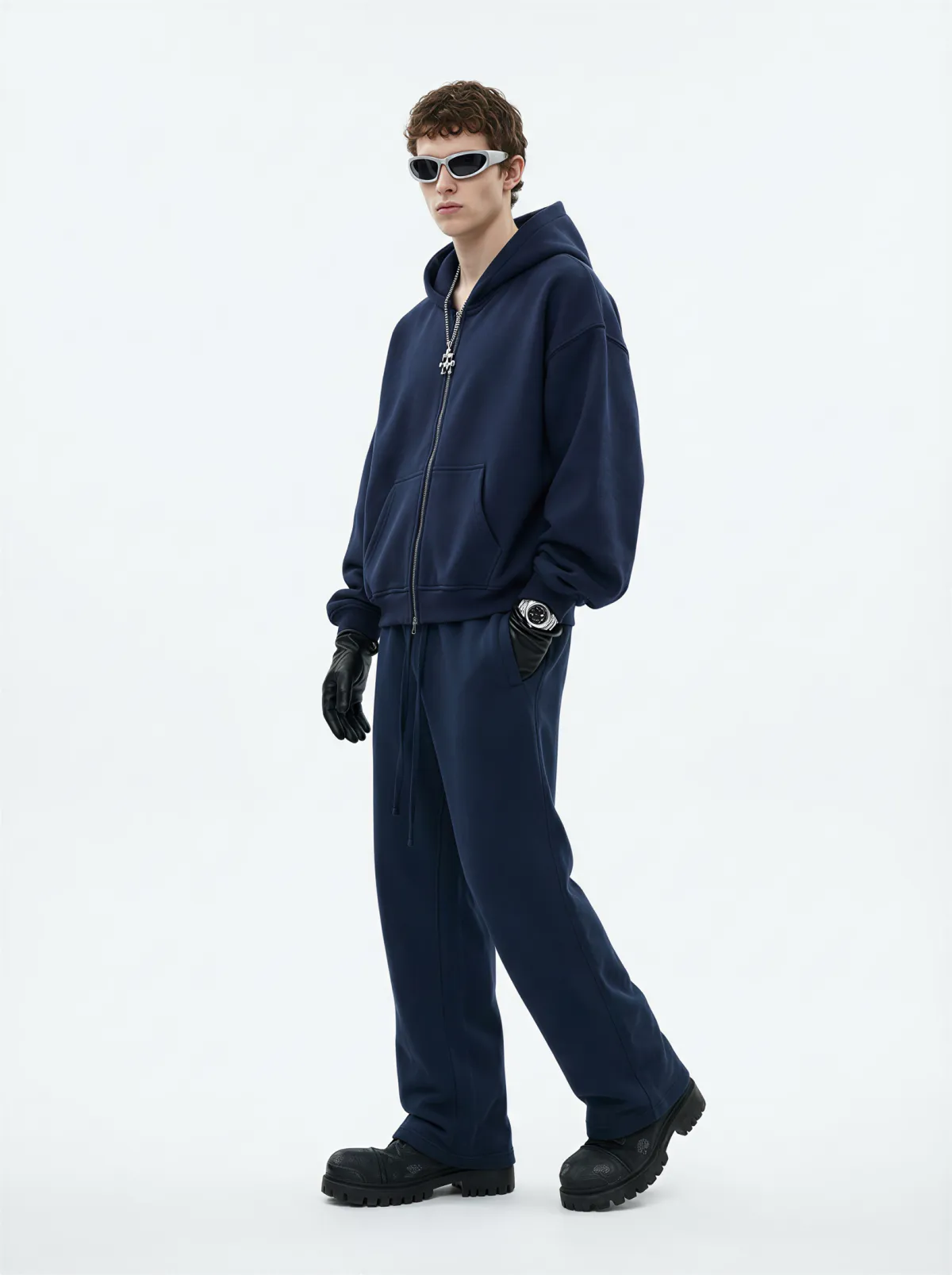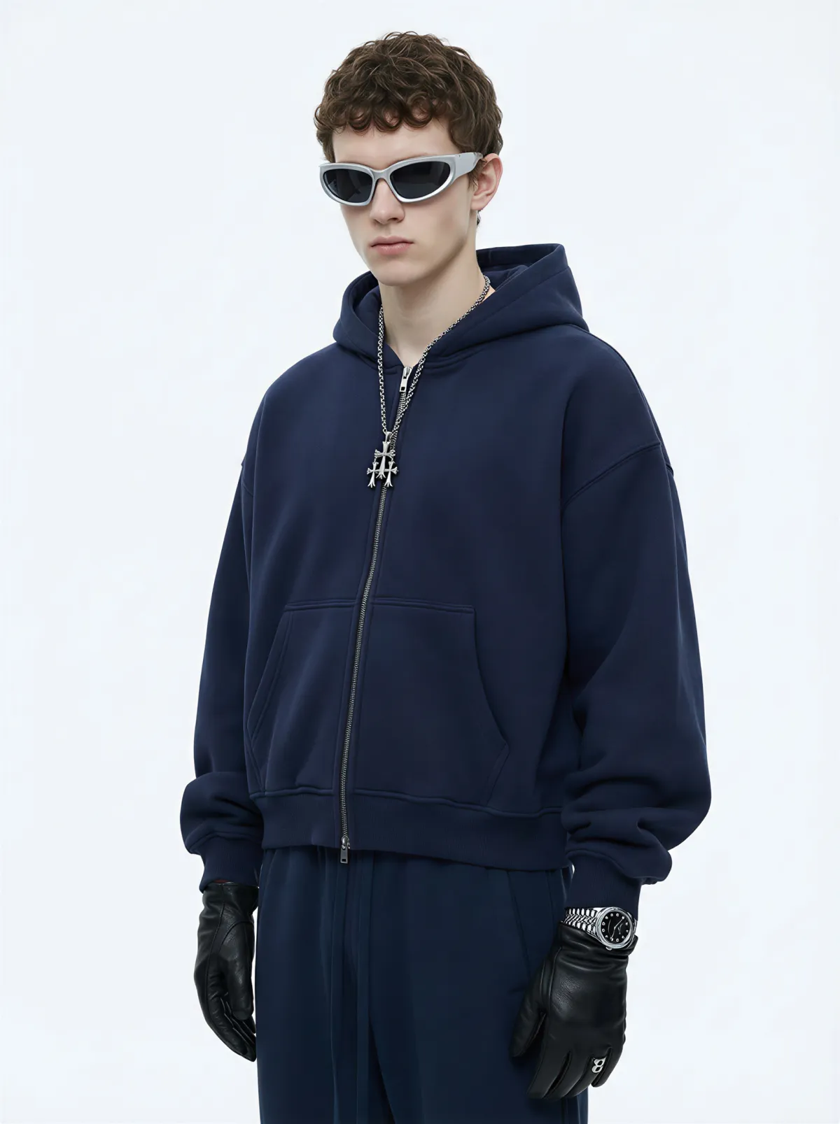 The boxy fit silhouette enhances the drape and gives a clean, structured look. Featuring a two-way front zipper, it allows multiple styling options — wear it zipped up, open, or half-way for a more relaxed streetwear vibe.