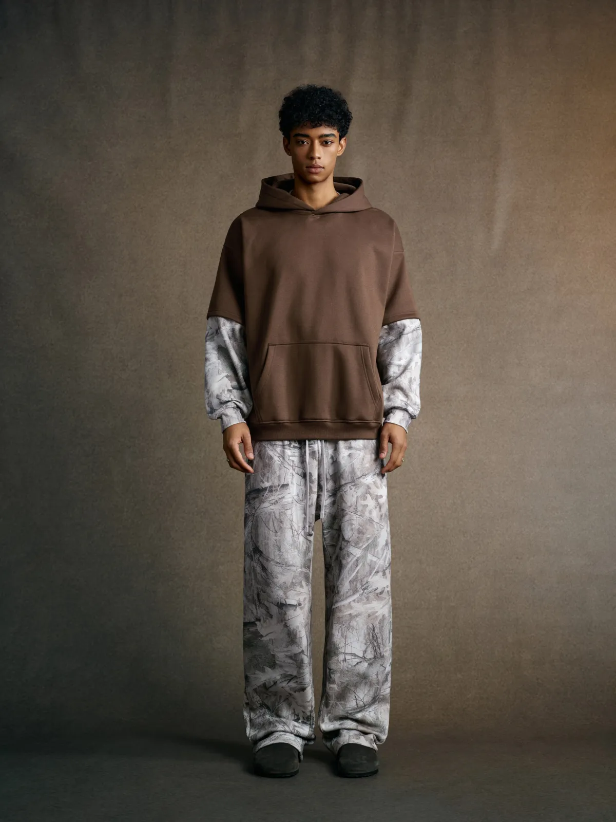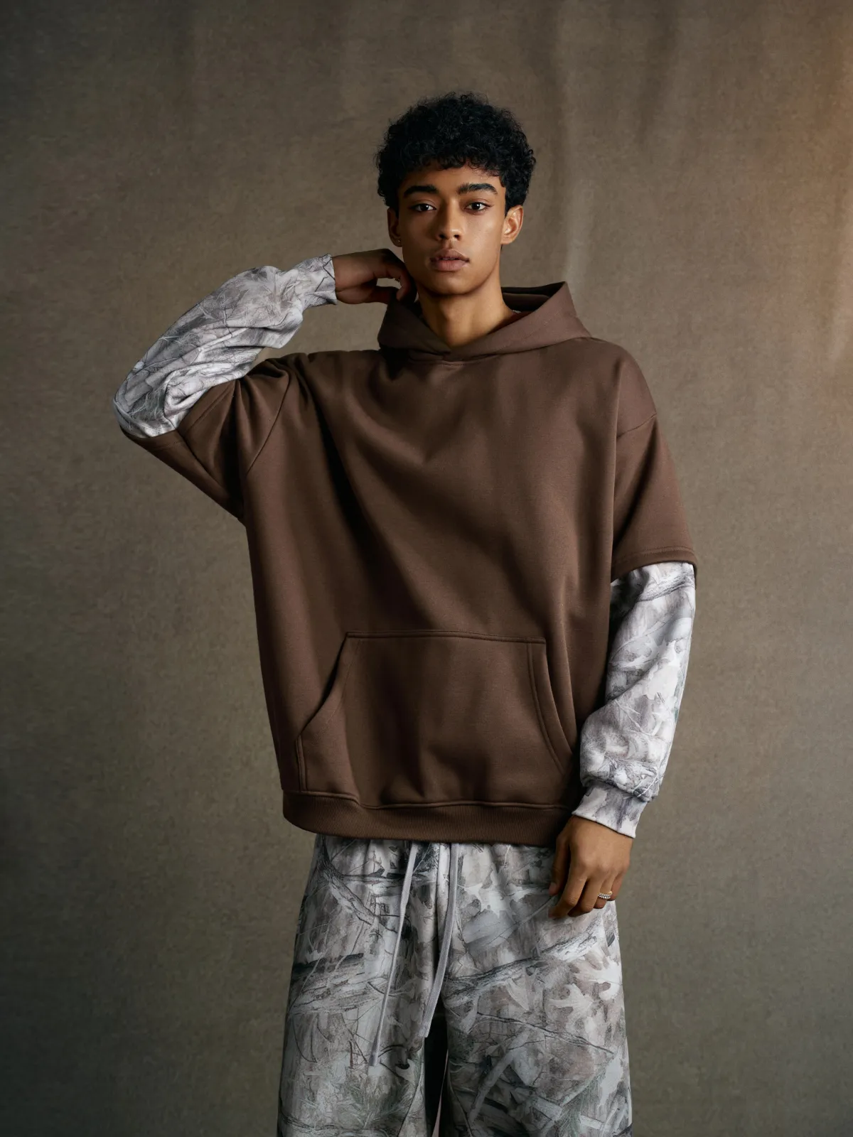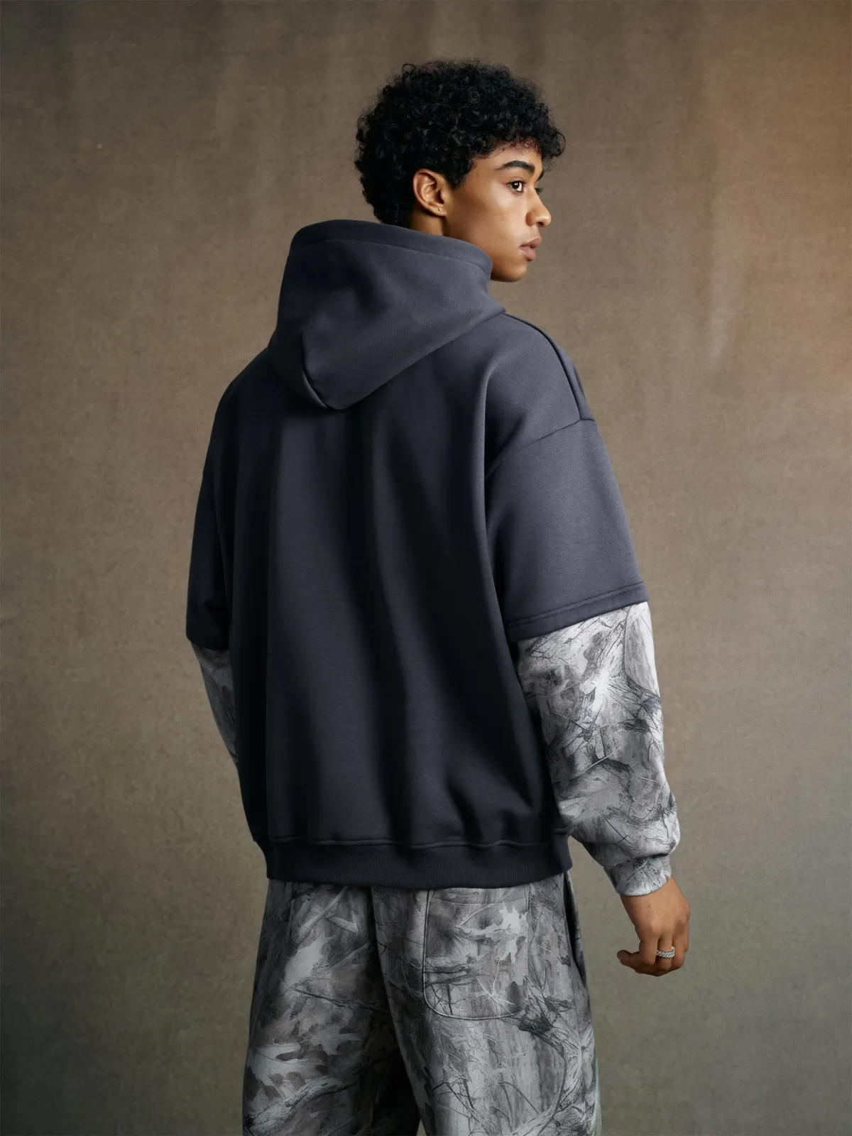 The layered spliced construction creates a unique two-in-one visual effect — delivering both depth and dimension without adding bulk.