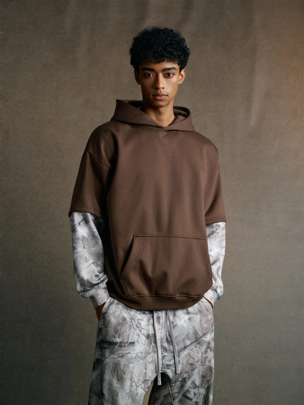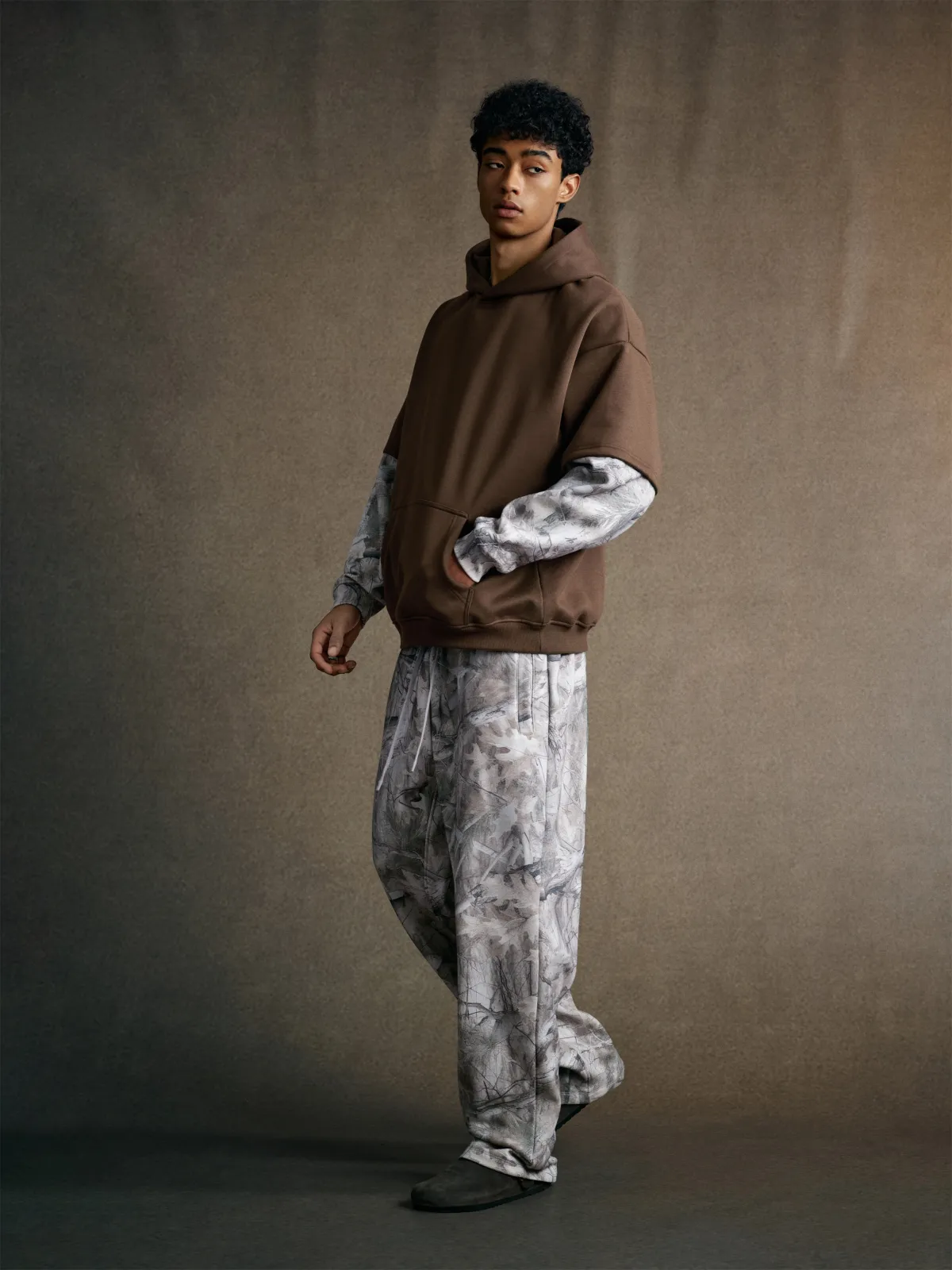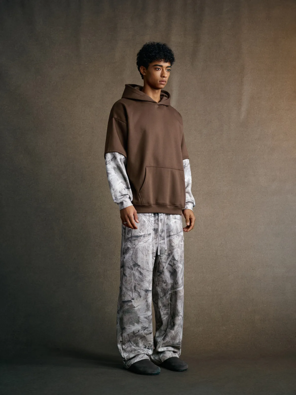 The layered spliced construction creates a unique two-in-one visual effect — delivering both depth and dimension without adding bulk.