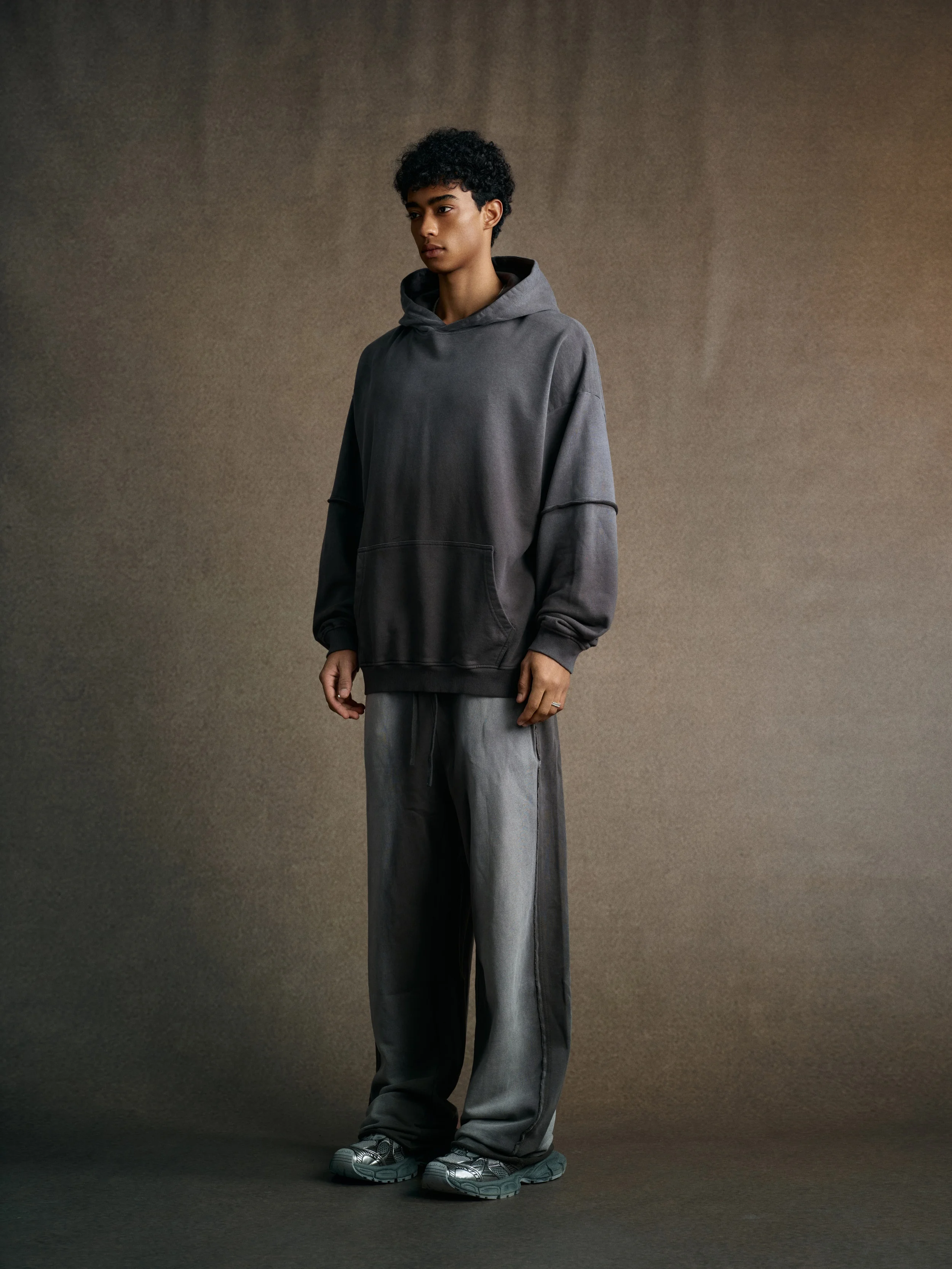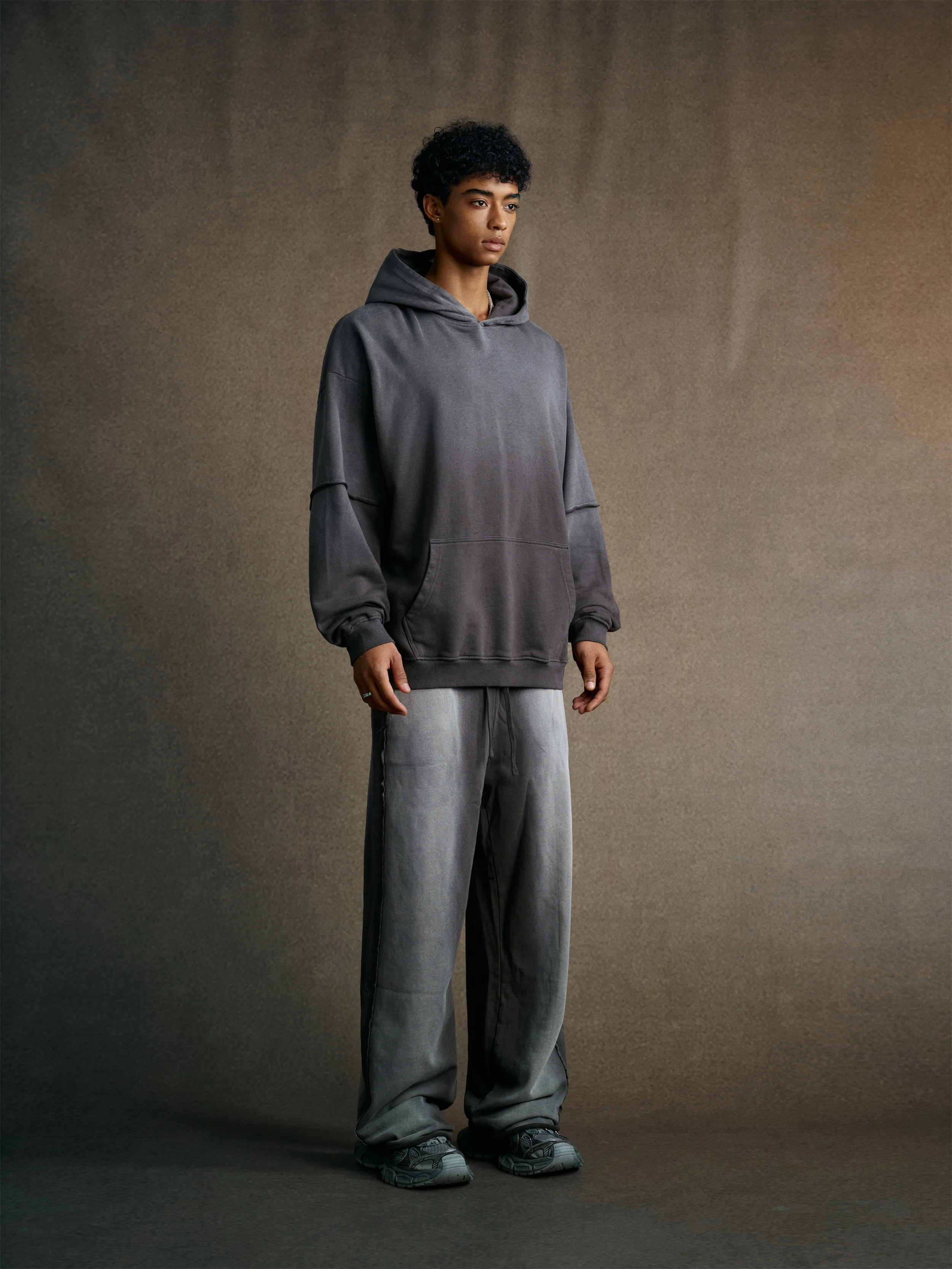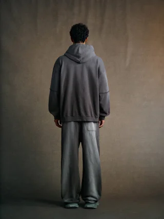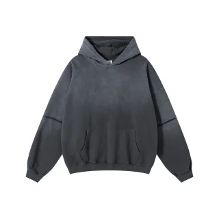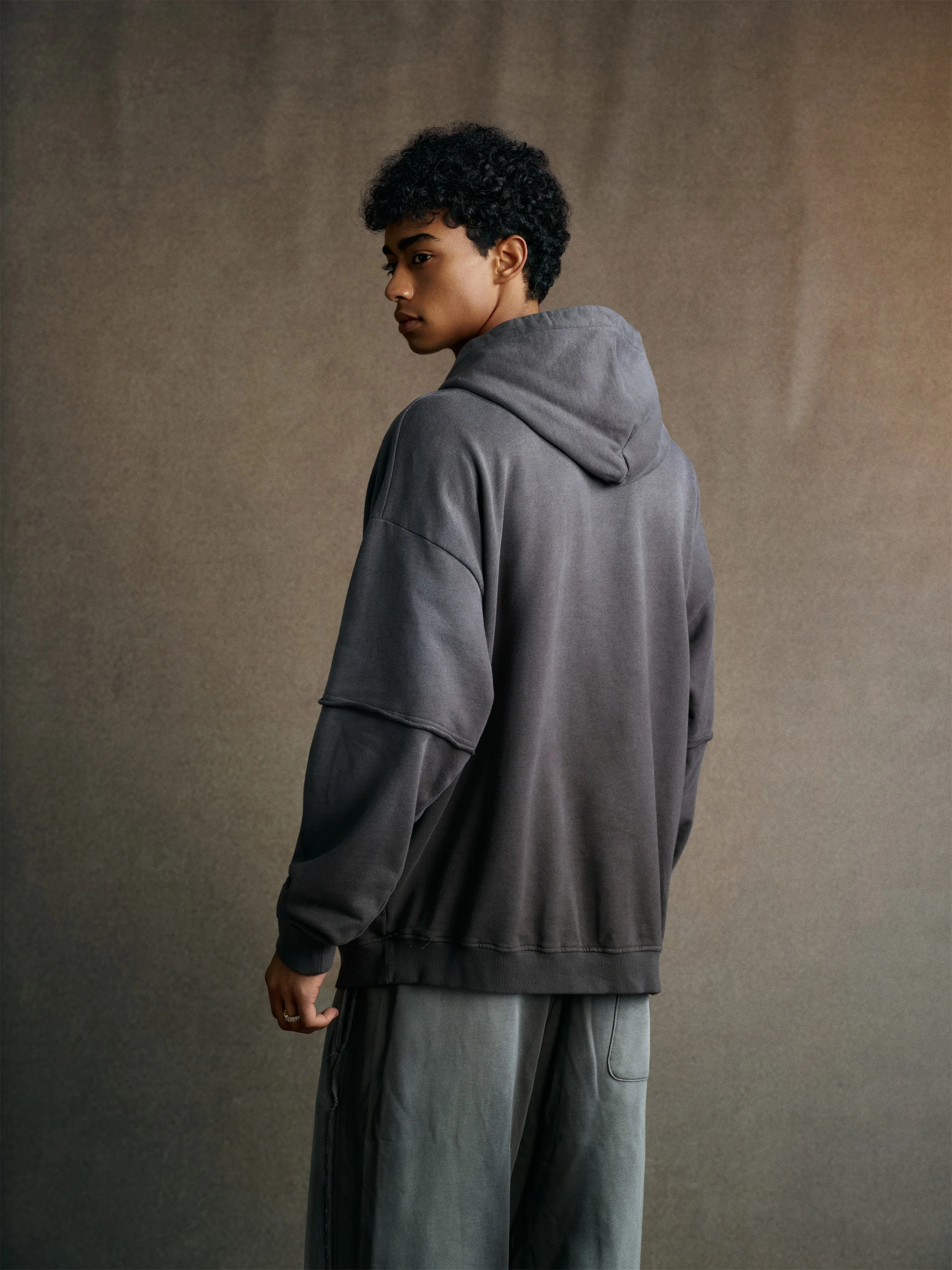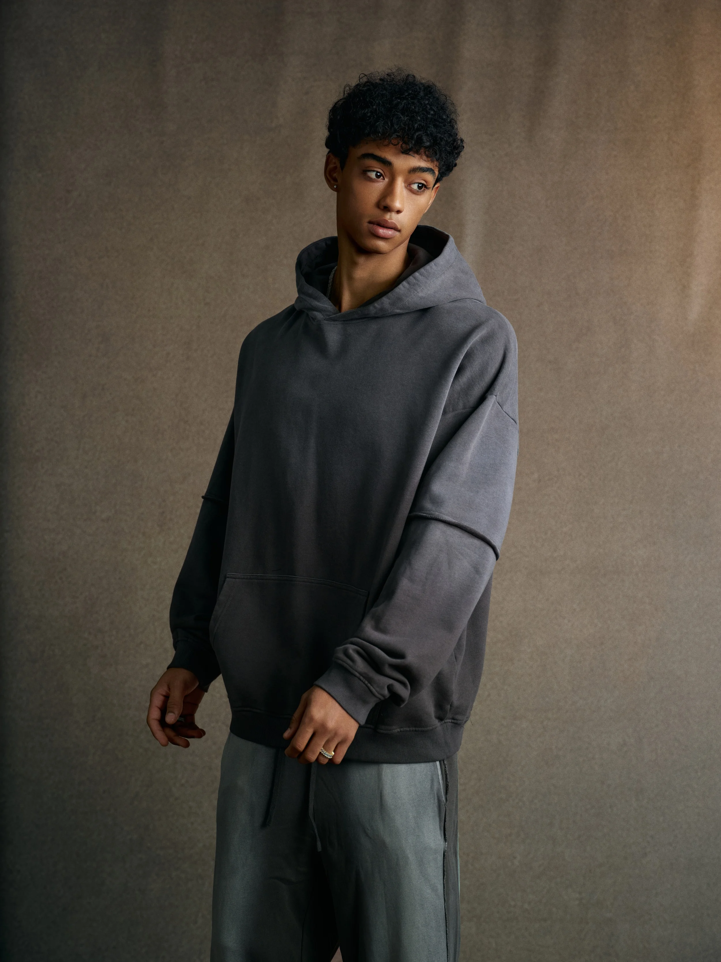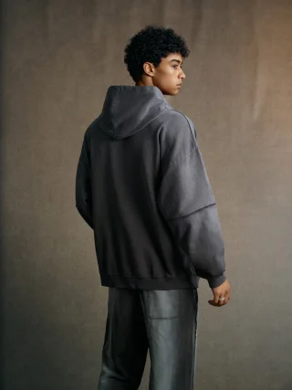 370GSM Men’s Faux-Two-Piece PP-Sprayed (Monkey Wash) French Terry Hoodie