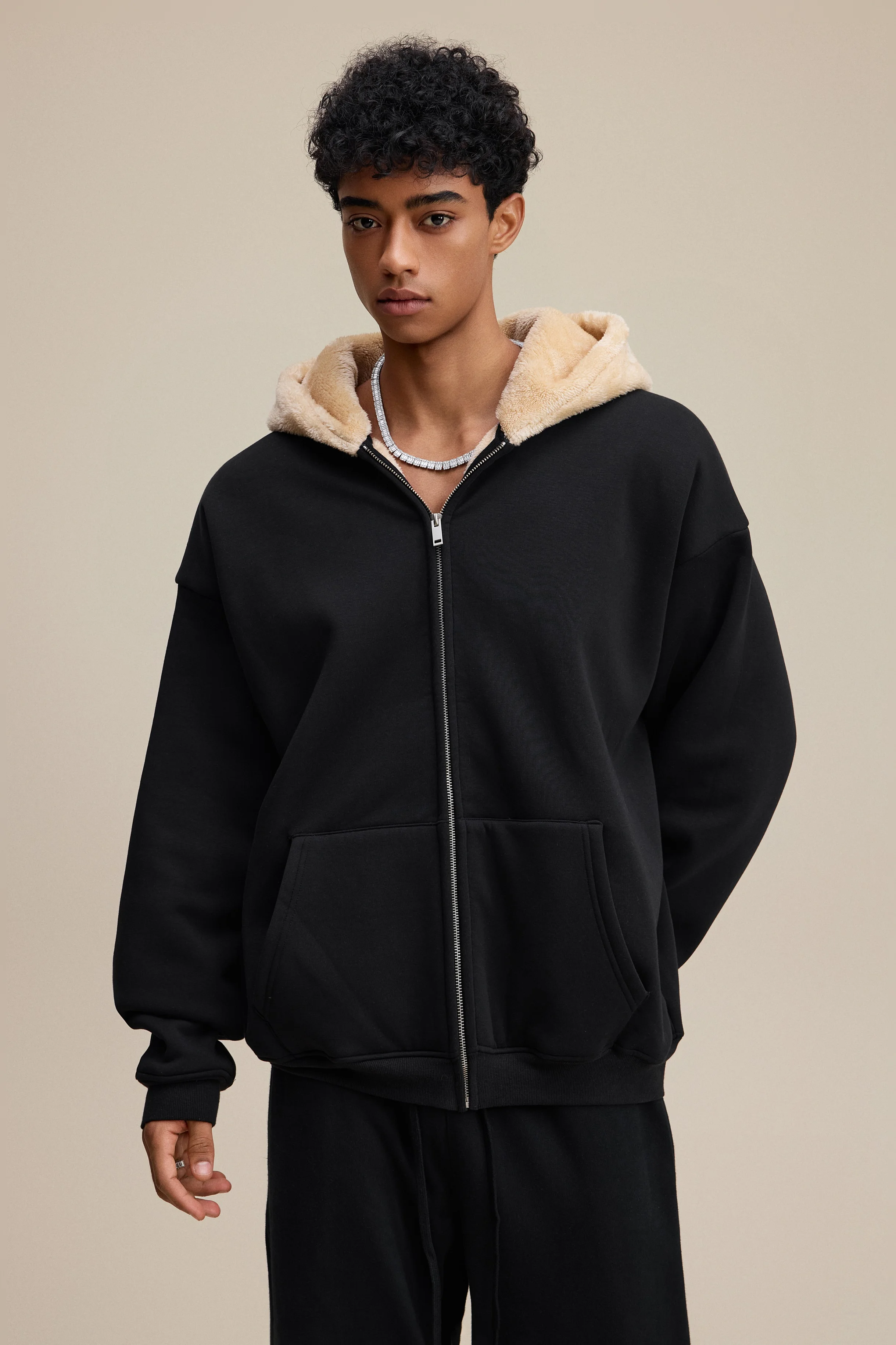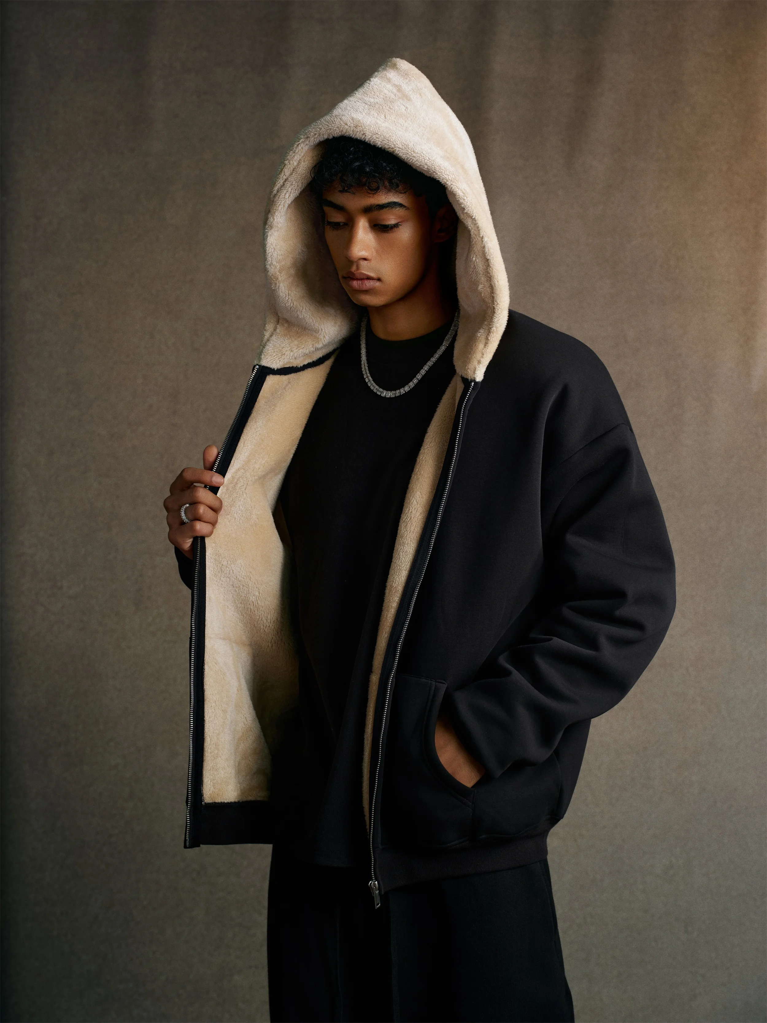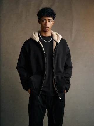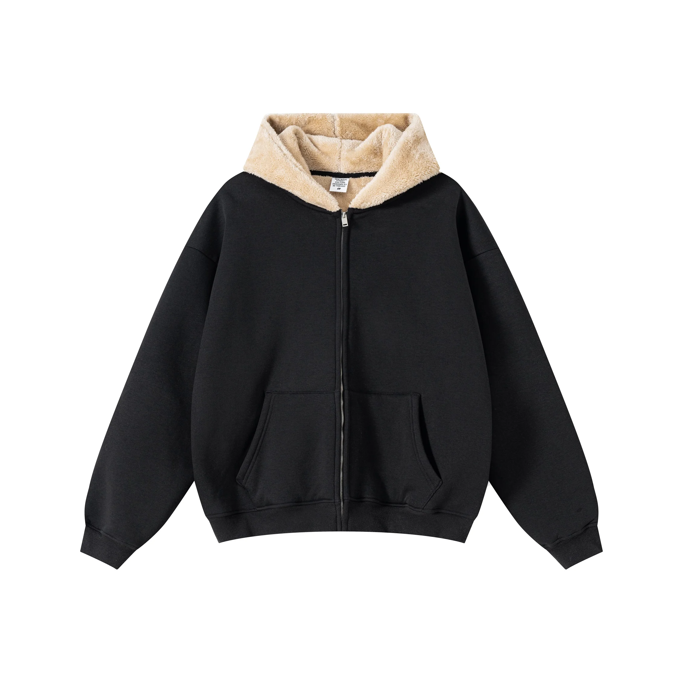 560GSM Men’s Composite Fleece Zip-Up Hooded Sweatshirt