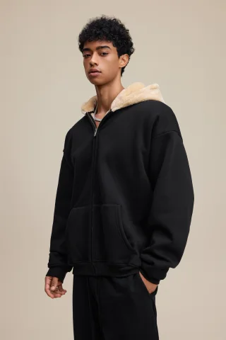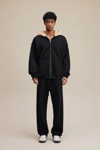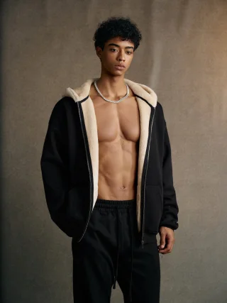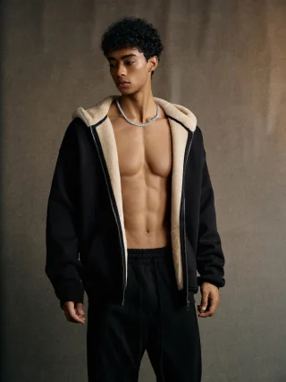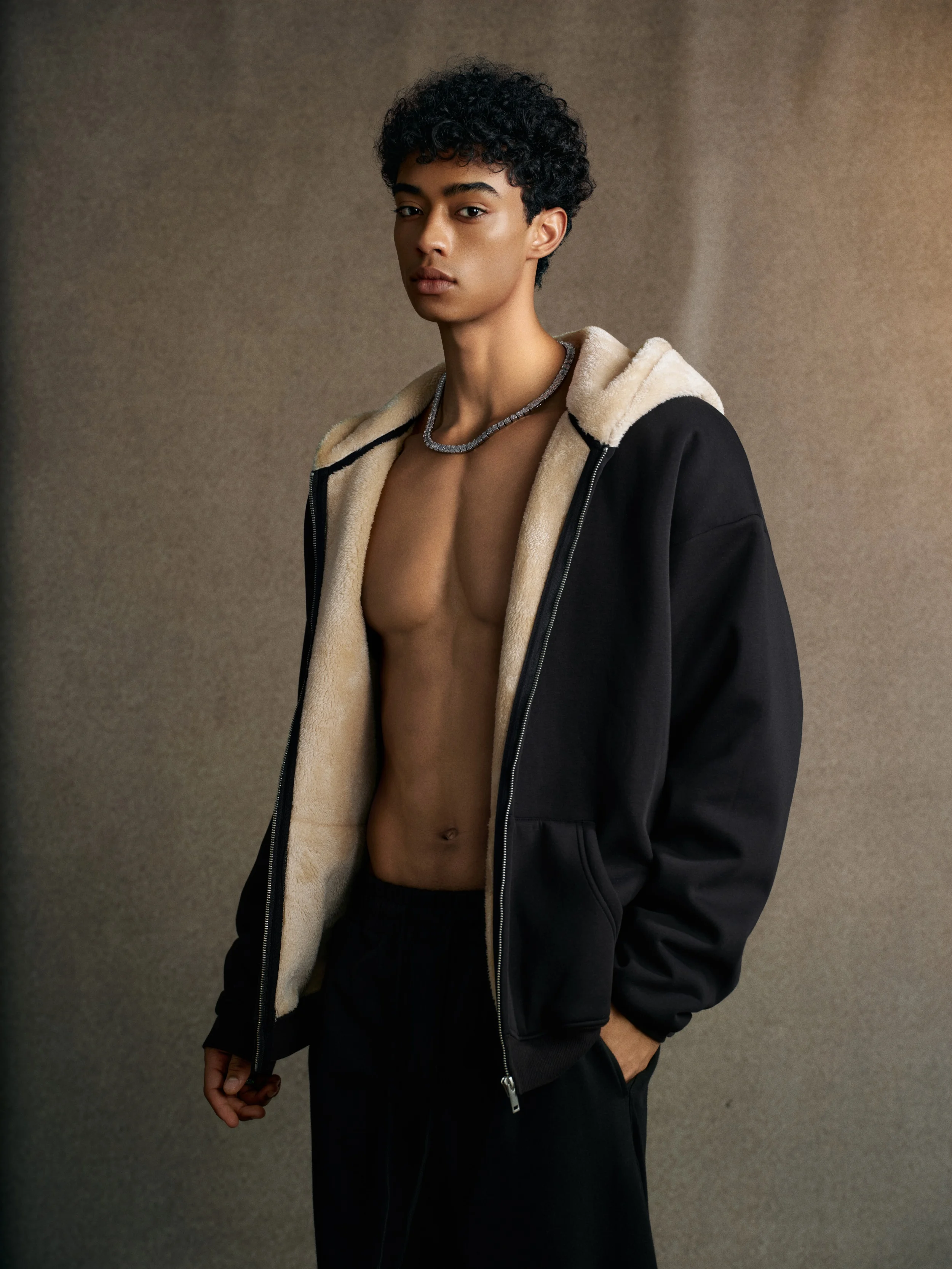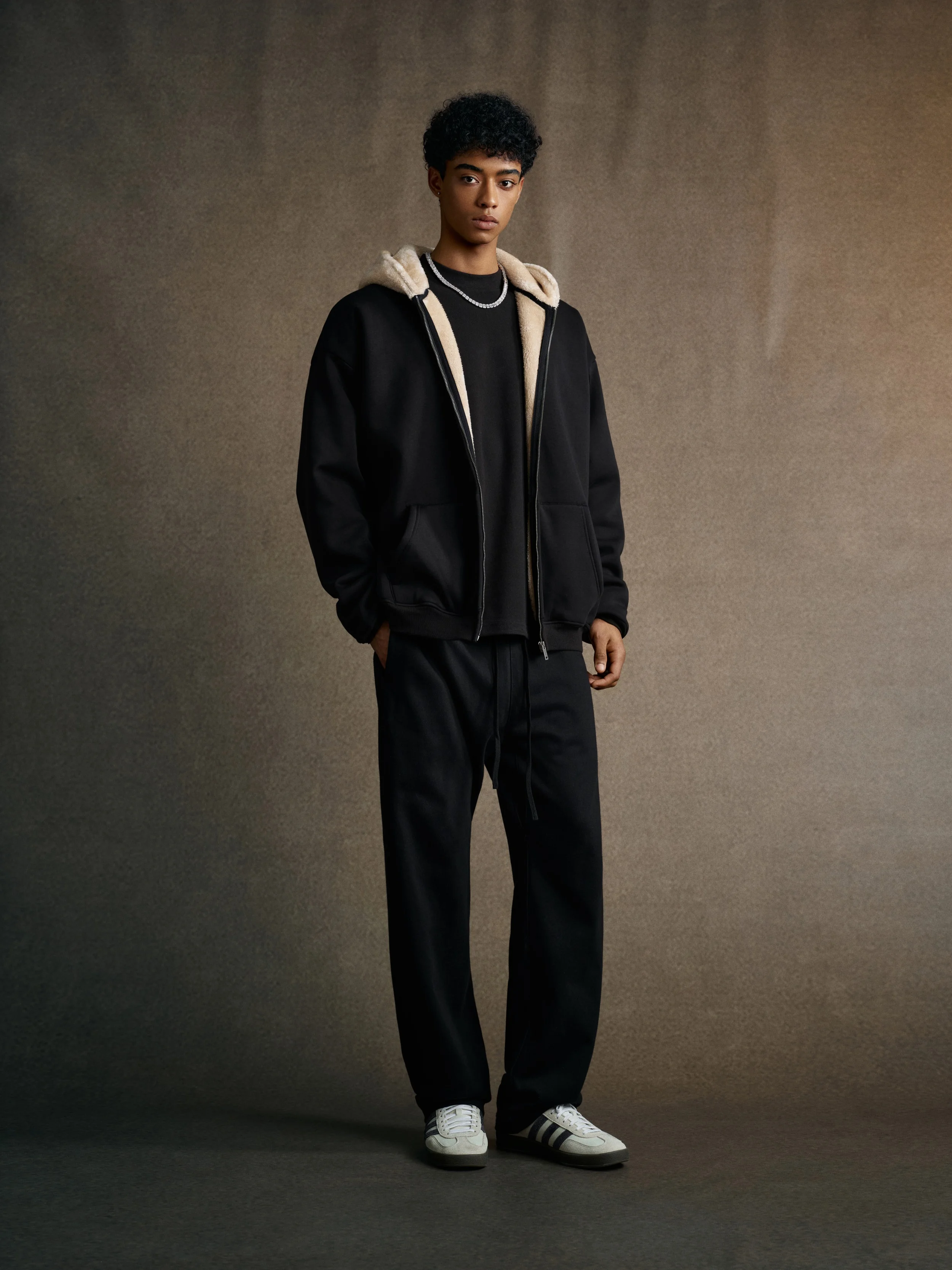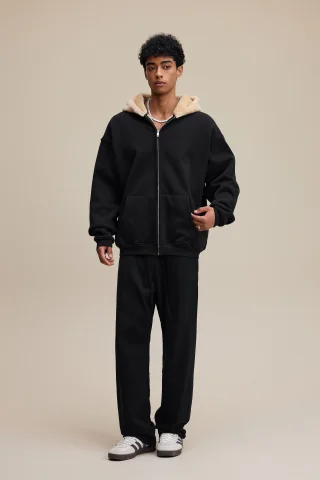 560GSM Men’s Composite Fleece Zip-Up Hooded Sweatshirt