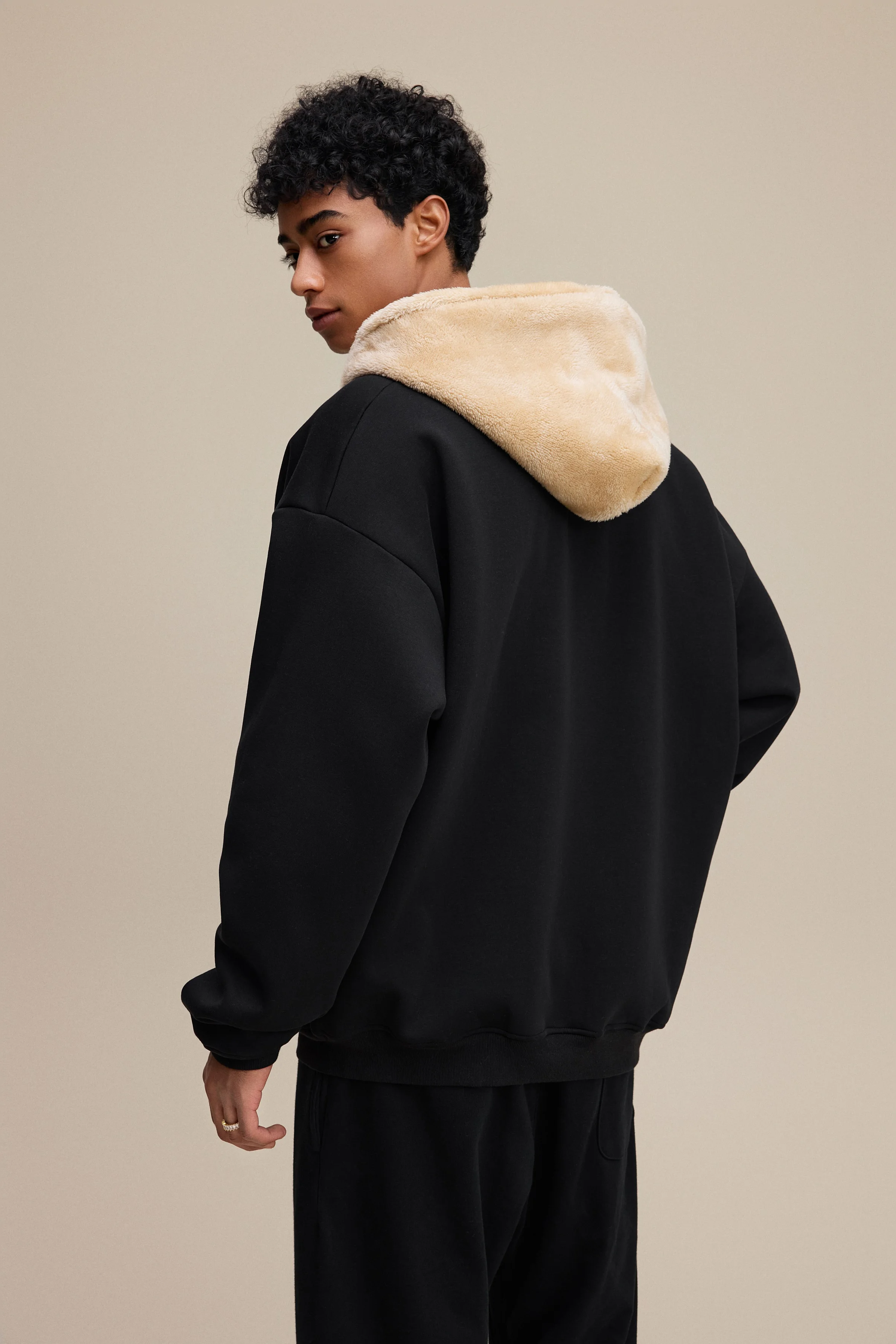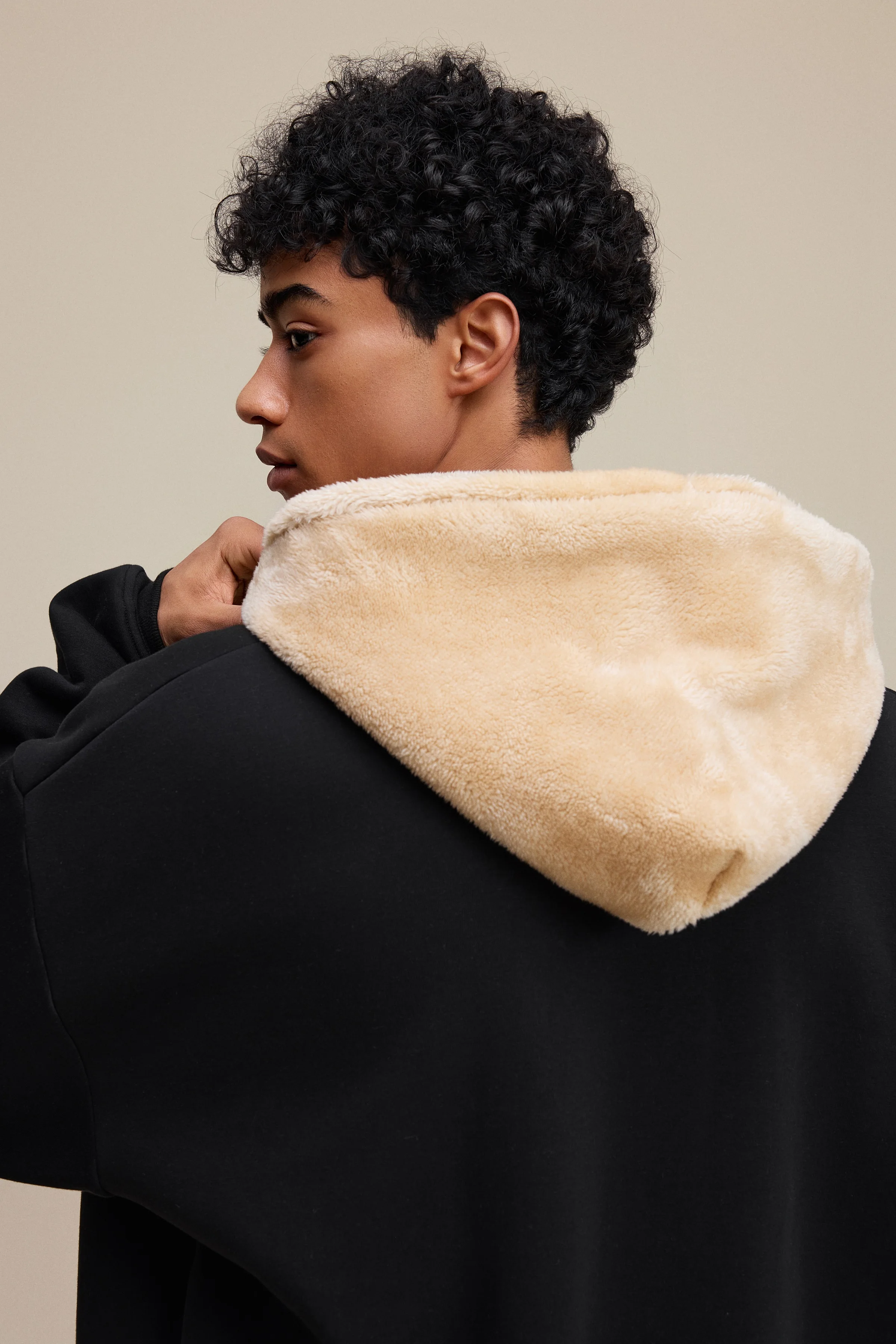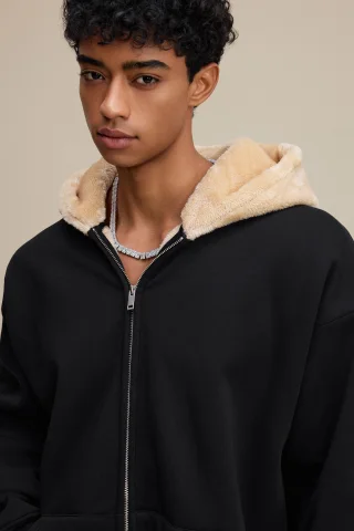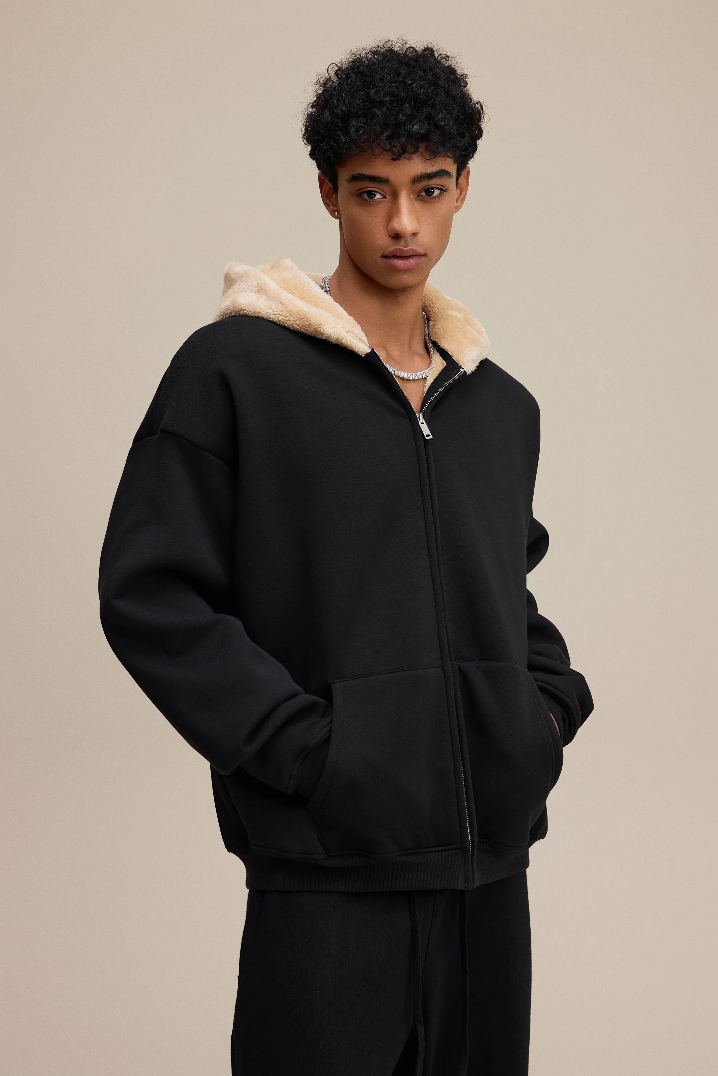 400GSM Women‘s Vintage Boxyfit Faux Fur Collar Zipper Hoodie