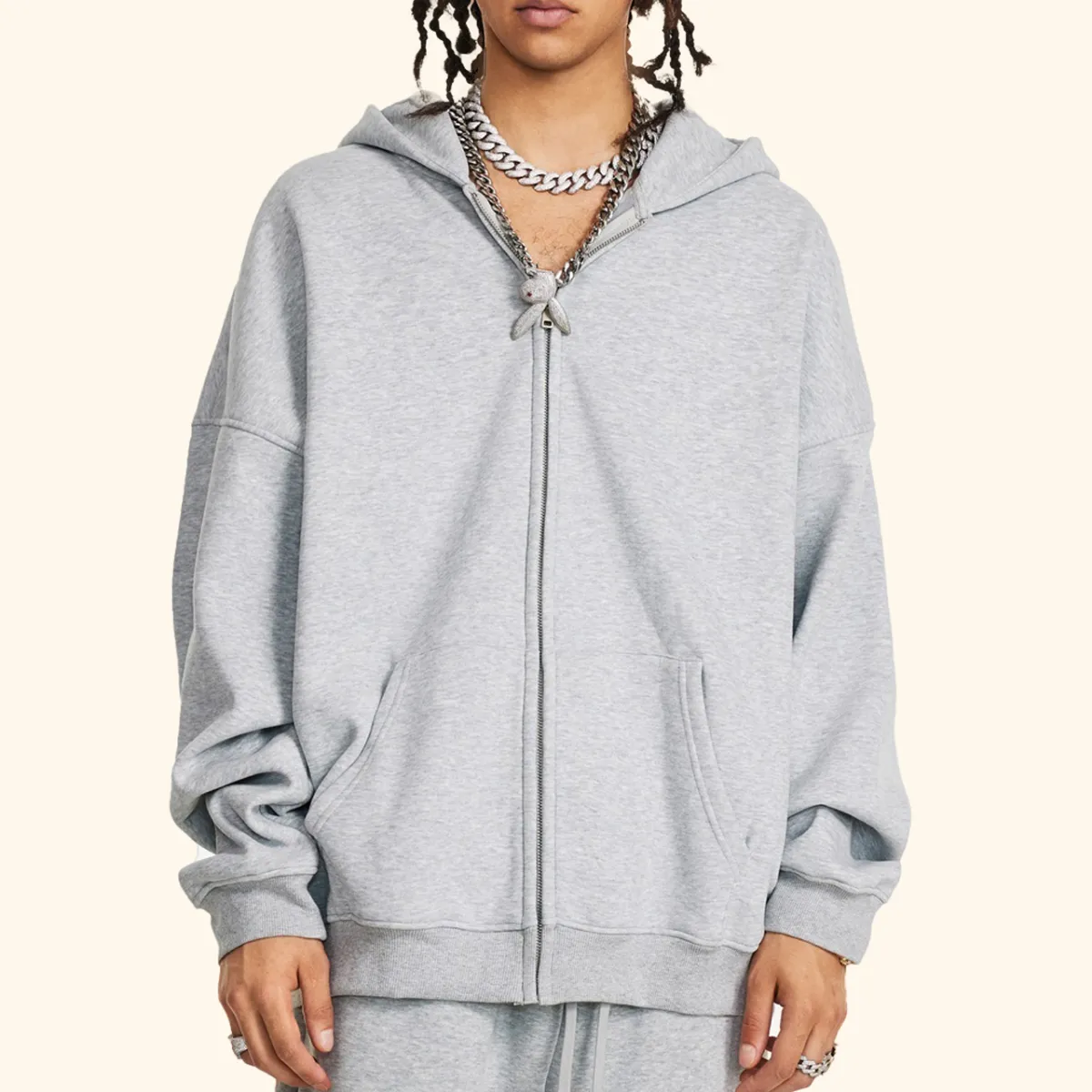 Built for warmth. Styled for the streets. This 560GSM fleece-lined zip hoodie feels solid, soft, and seriously warm — perfect for cold days. The multi-zip detail adds a modern edge to its clean design, while the oversized fit keeps it effortlessly chill. Simple, solid, and made to last — a go-to piece for anyone into minimalist streetwear.