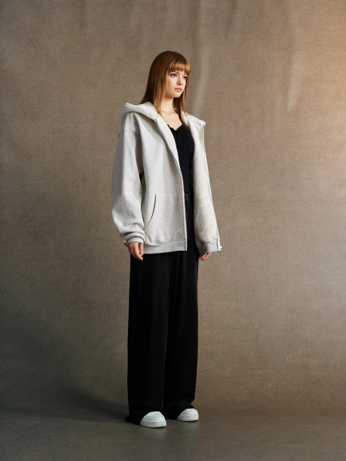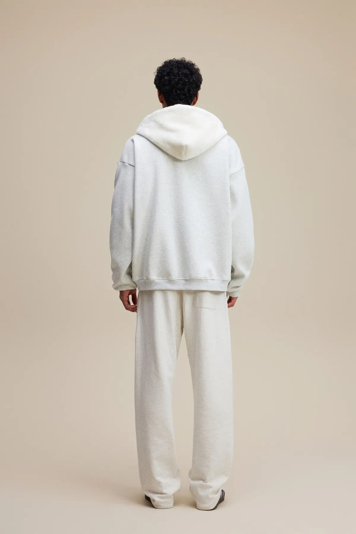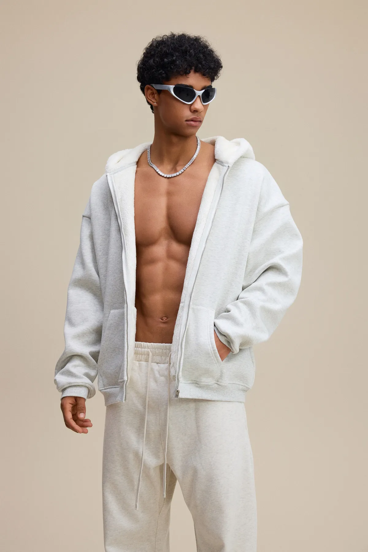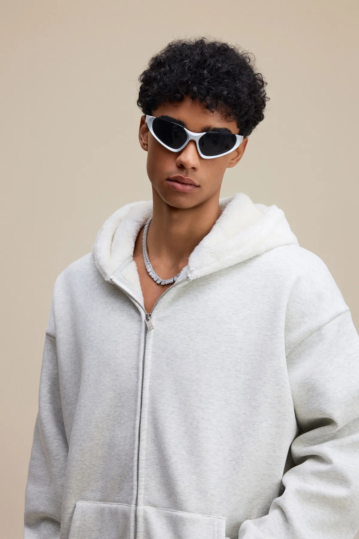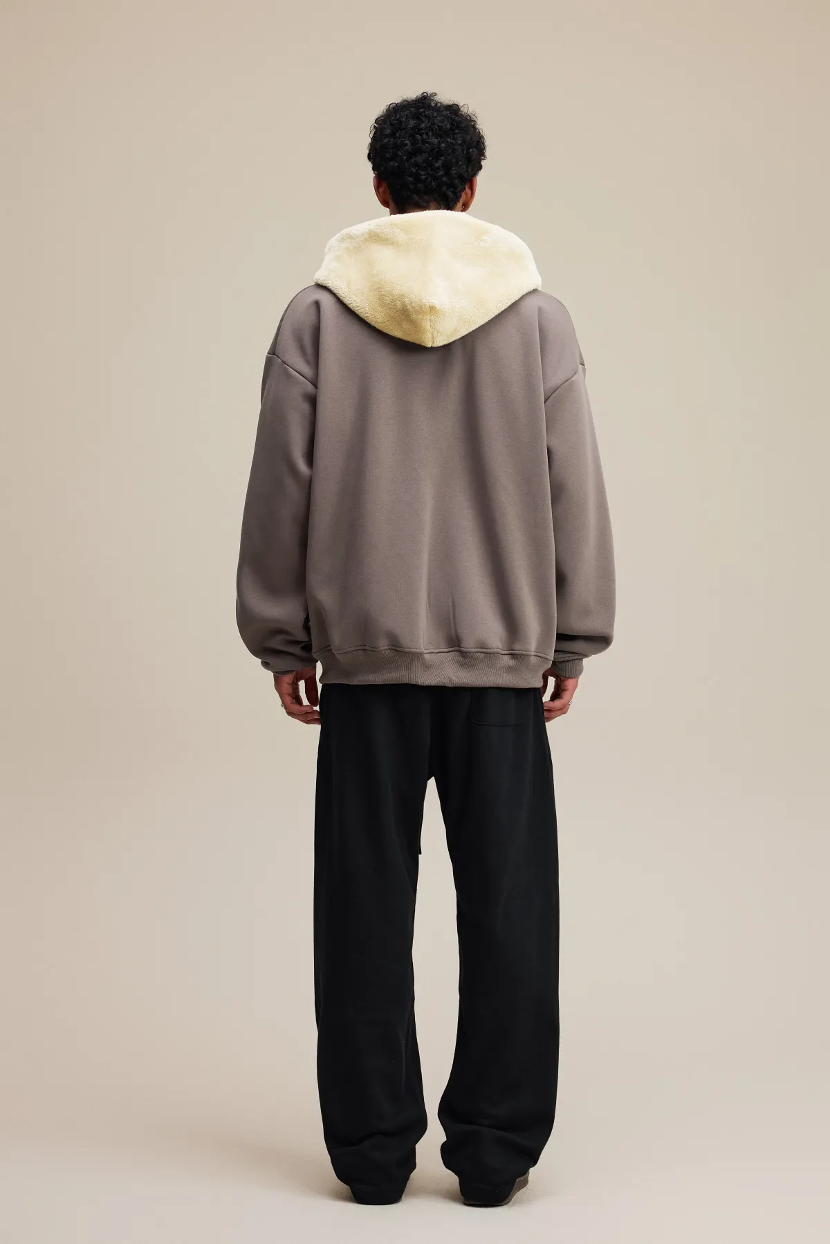This 570GSM heavyweight zip hoodie delivers premium warmth and structure through its dense cotton shell and fleece-lined interior.