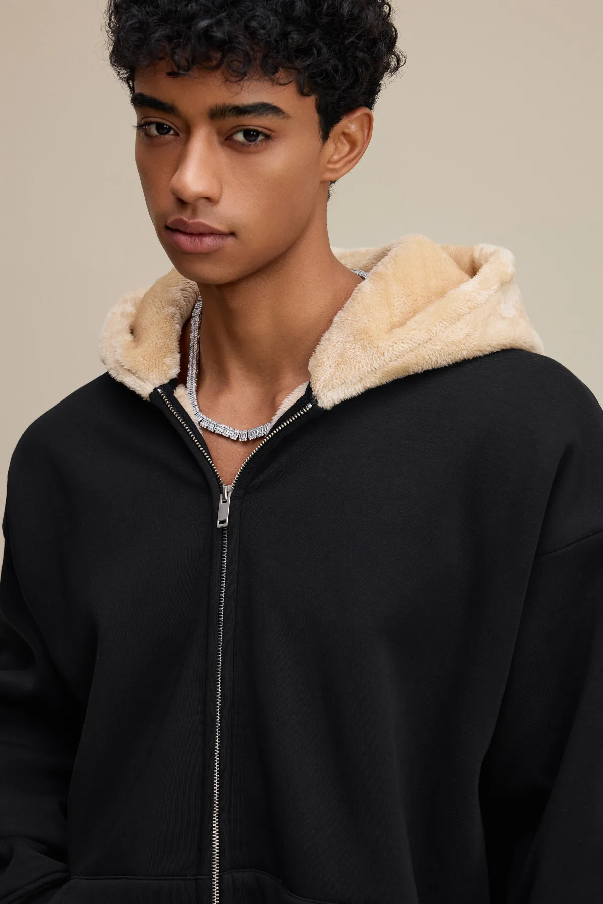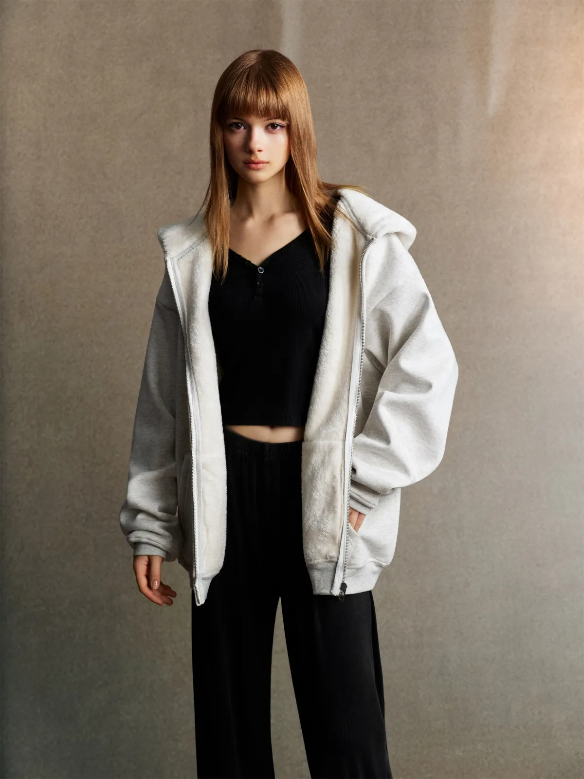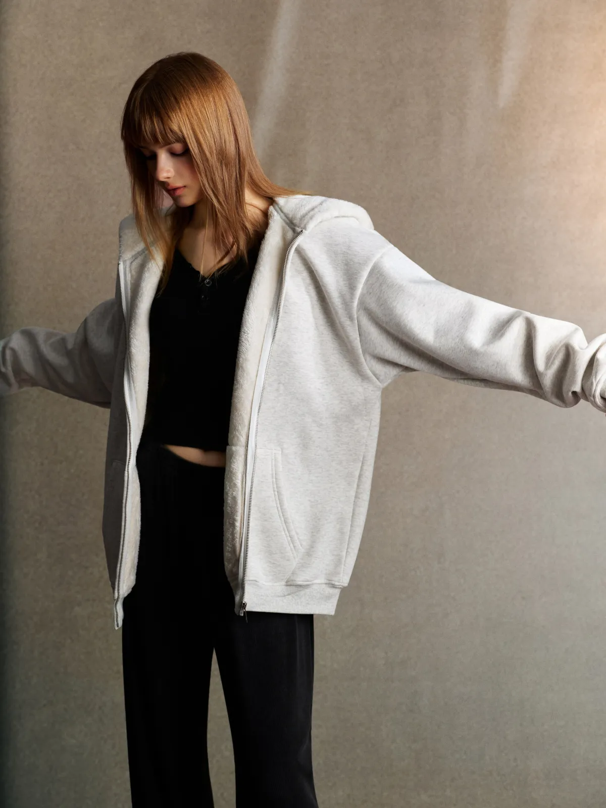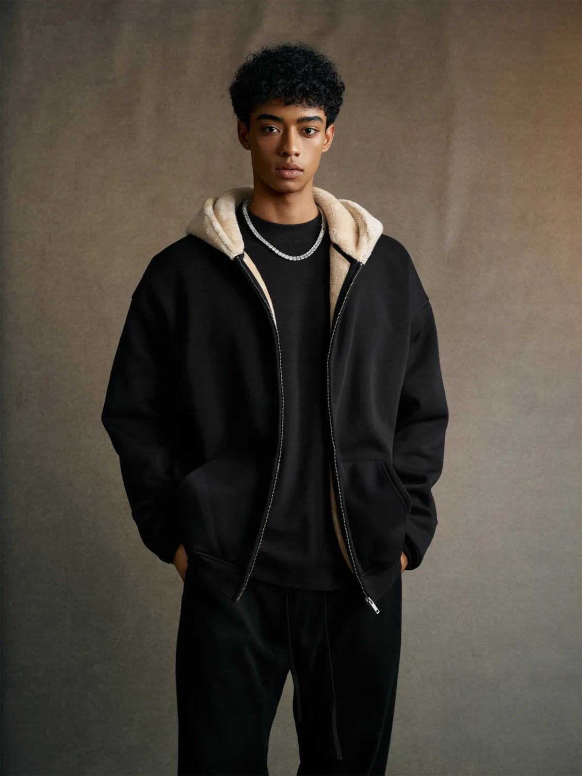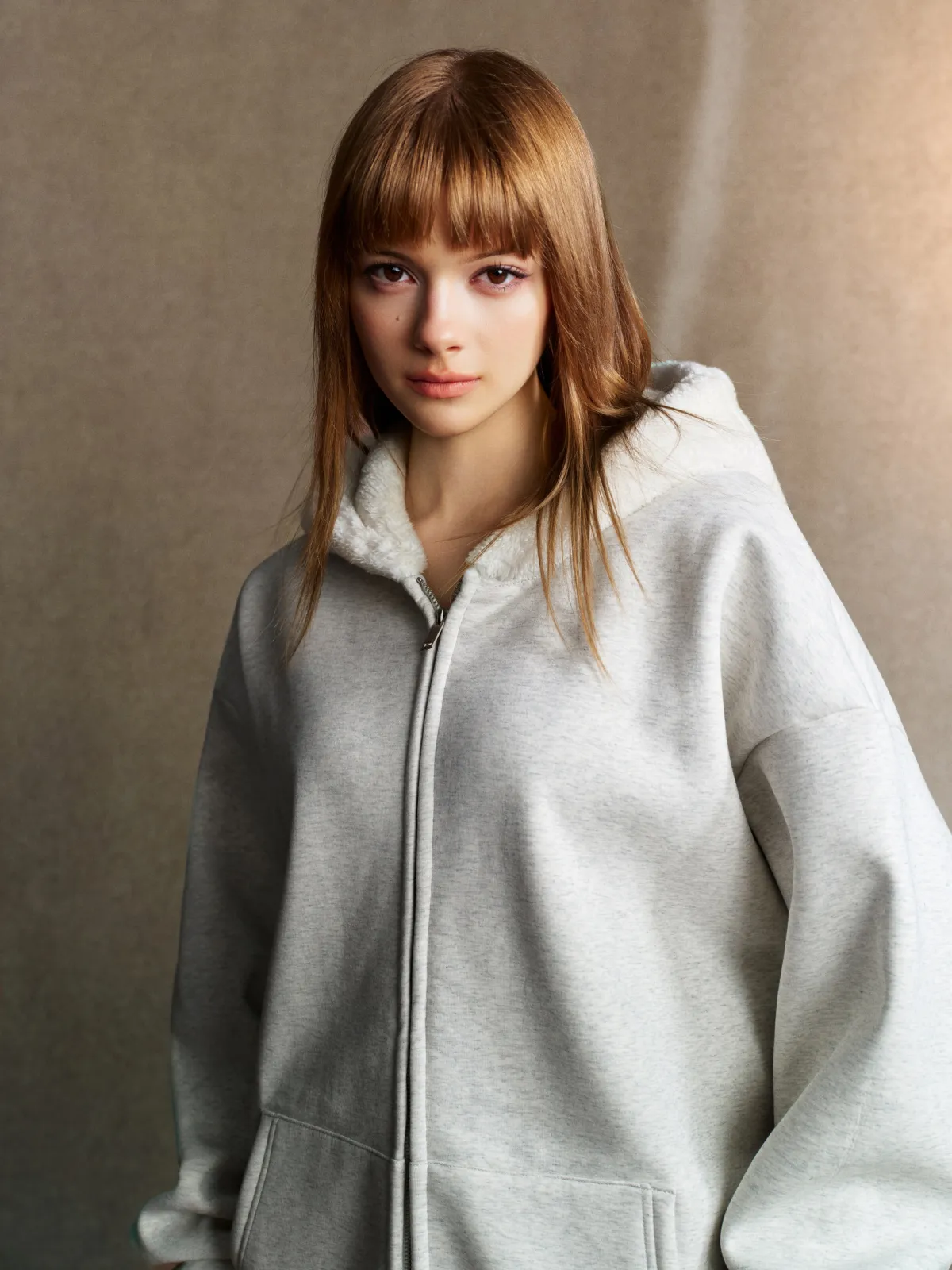 This 570GSM heavyweight zip hoodie delivers premium warmth and structure through its dense cotton shell and fleece-lined interior.