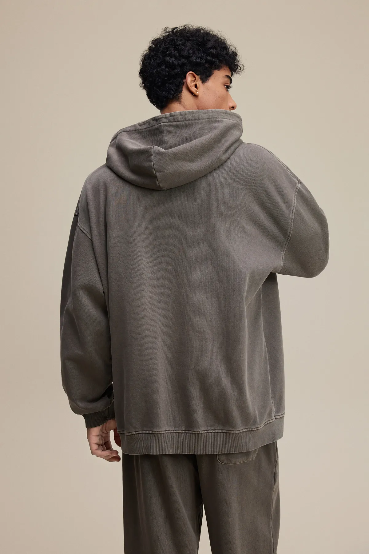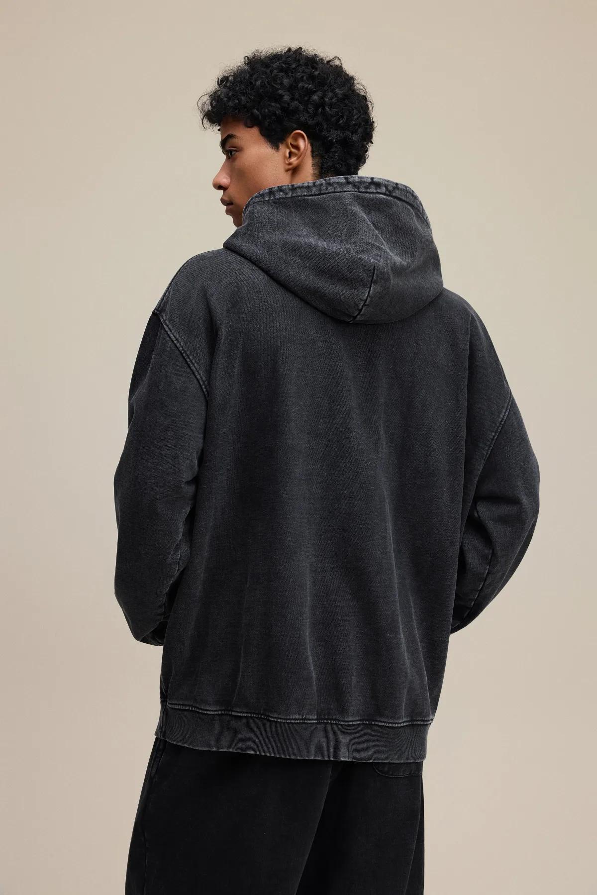 This 480GSM heavyweight zip hoodie blends vintage aesthetics with streetwear functionality.