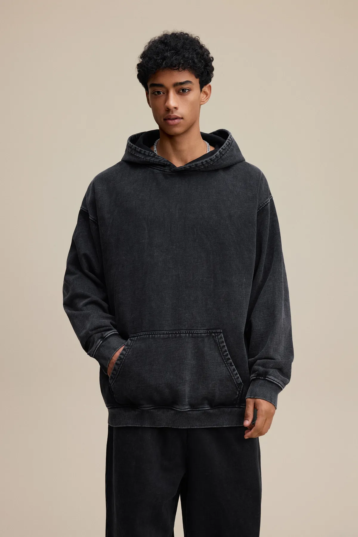 A kangaroo pocket adds daily practicality, while the loose, unisex silhouette ensures comfort and versatility for various styles and body types.