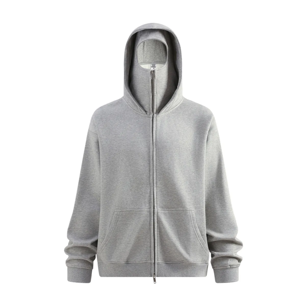 This 340GSM urban outdoor zip hoodie blends functional design with modern streetwear aesthetics.