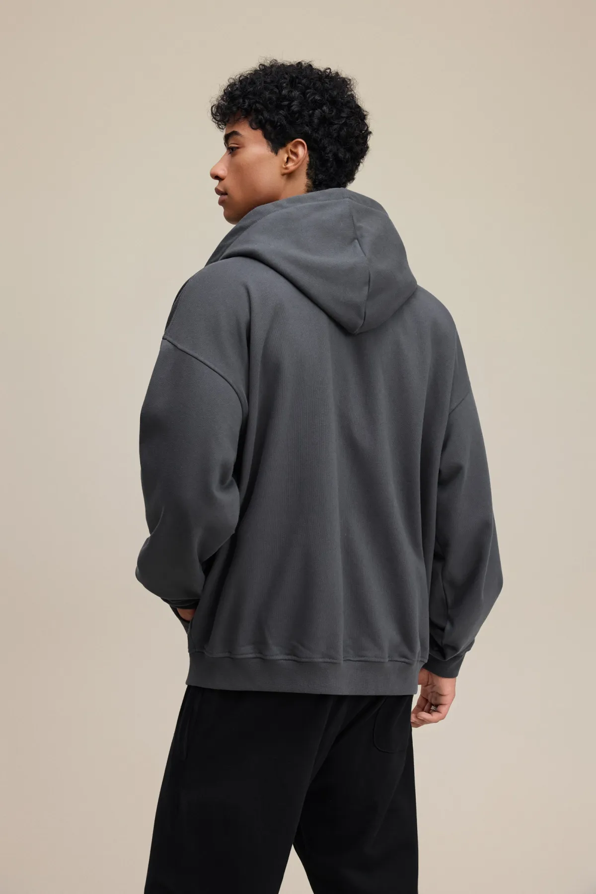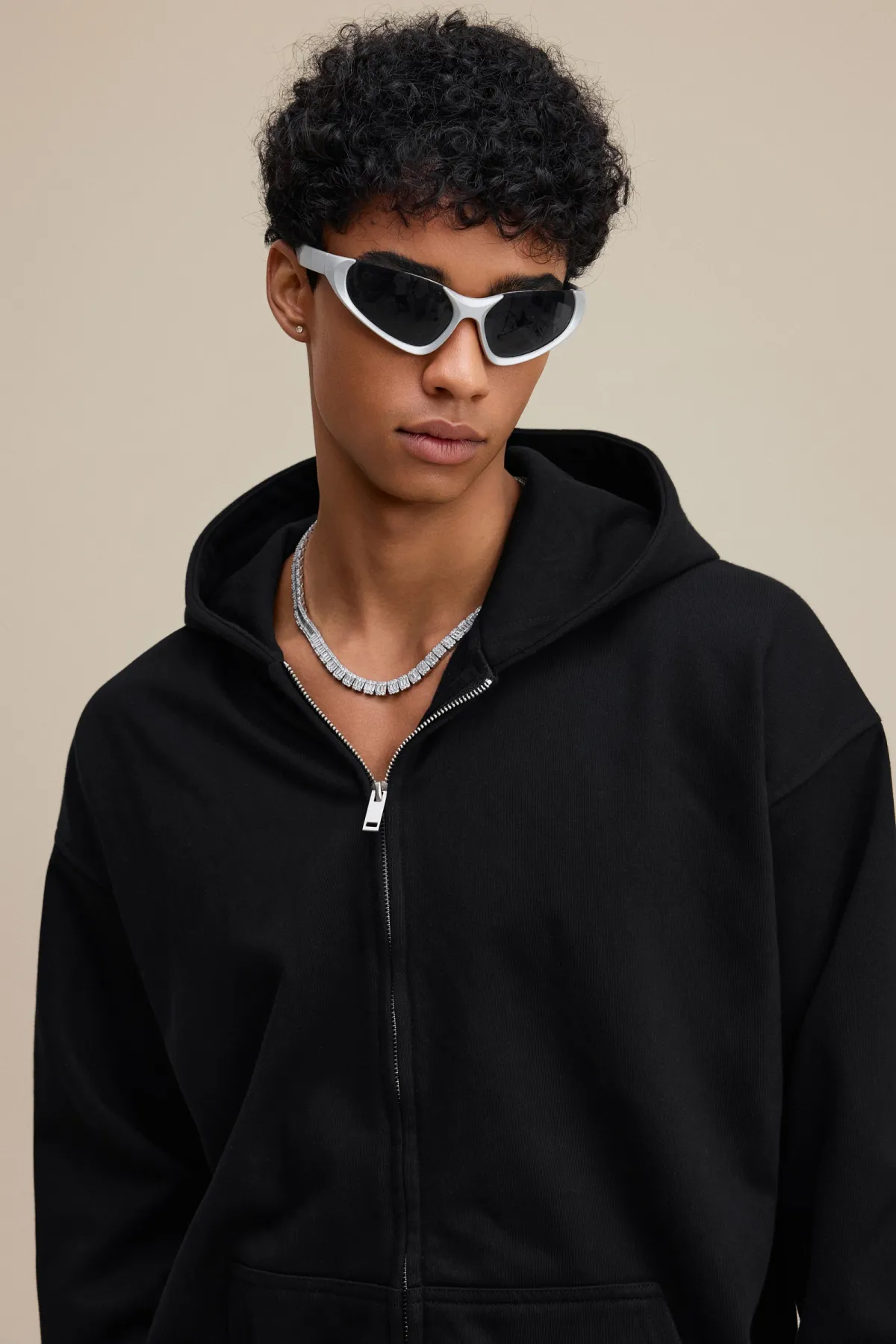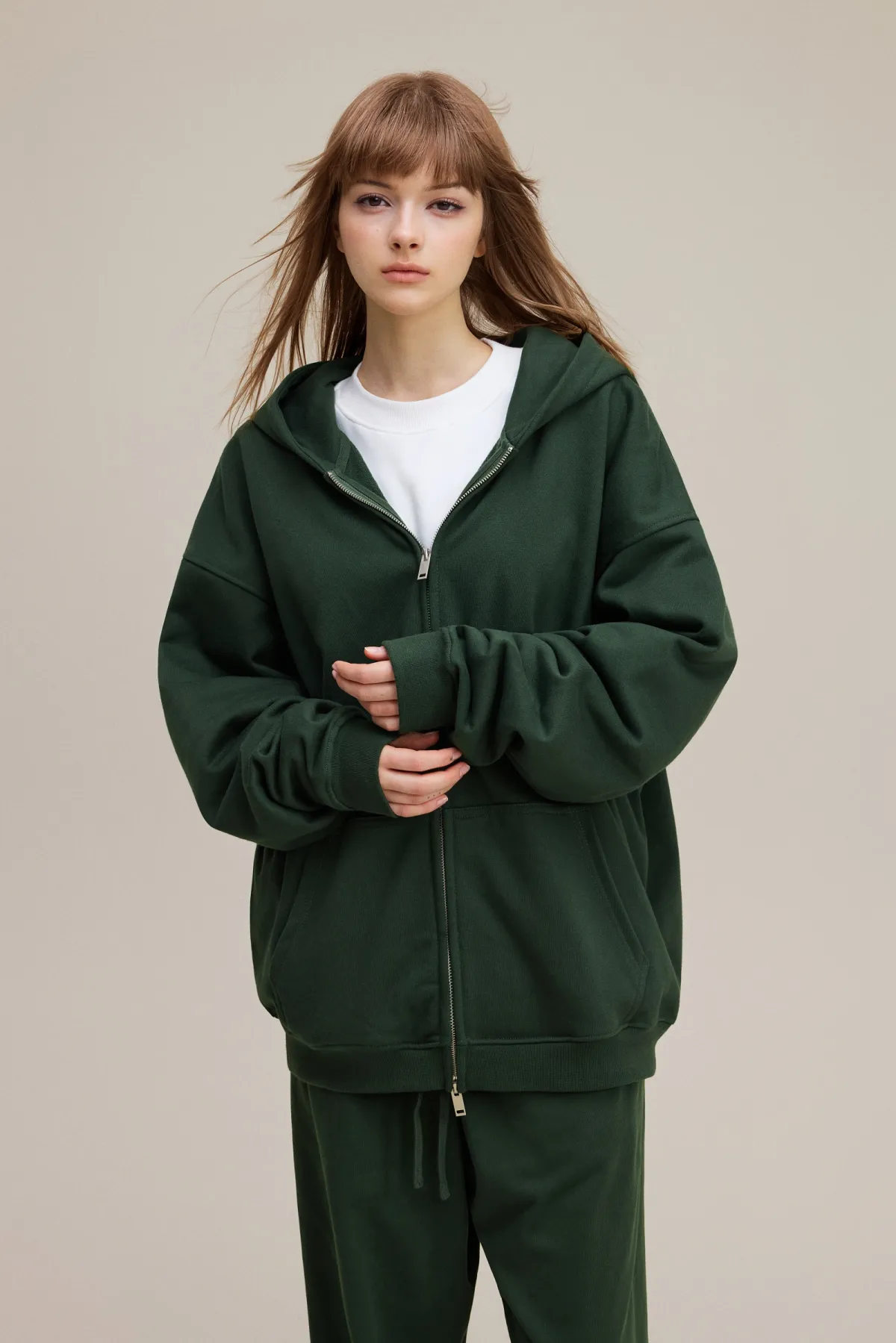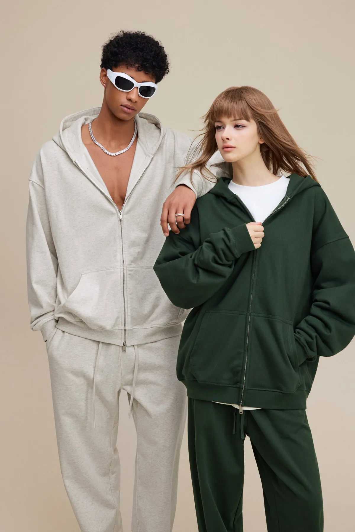 The dual-direction zipper allows flexible styling from both ends, making it ideal for layering over tees or under coats without bulk. The relaxed, boxy fit flatters multiple body types and ensures unrestricted movement.