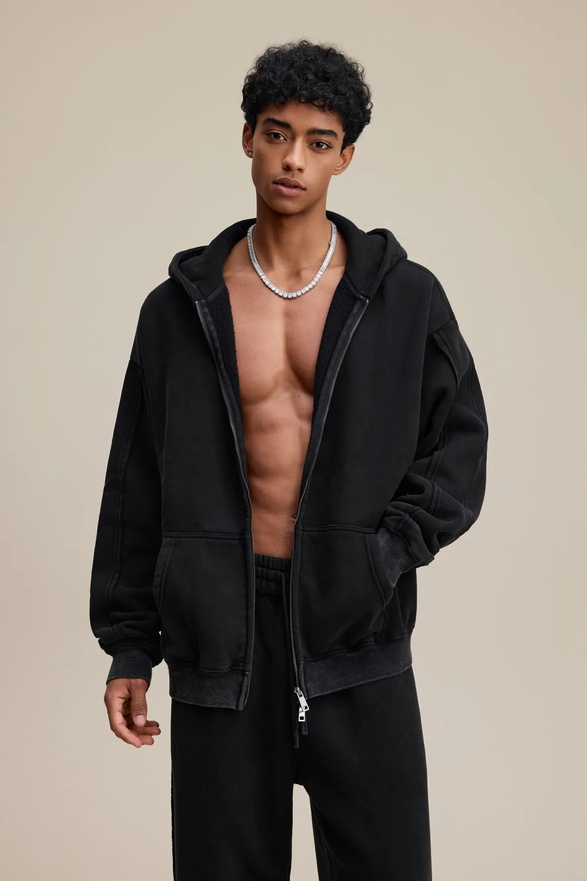 The 360GSM Washed Oversized Zip Hoodie blends casual comfort with modern street appeal. Made from a 50% cotton and 50% polyester blend, it features a fleece-lined interior for enhanced warmth and softness — perfect for the cooler months.