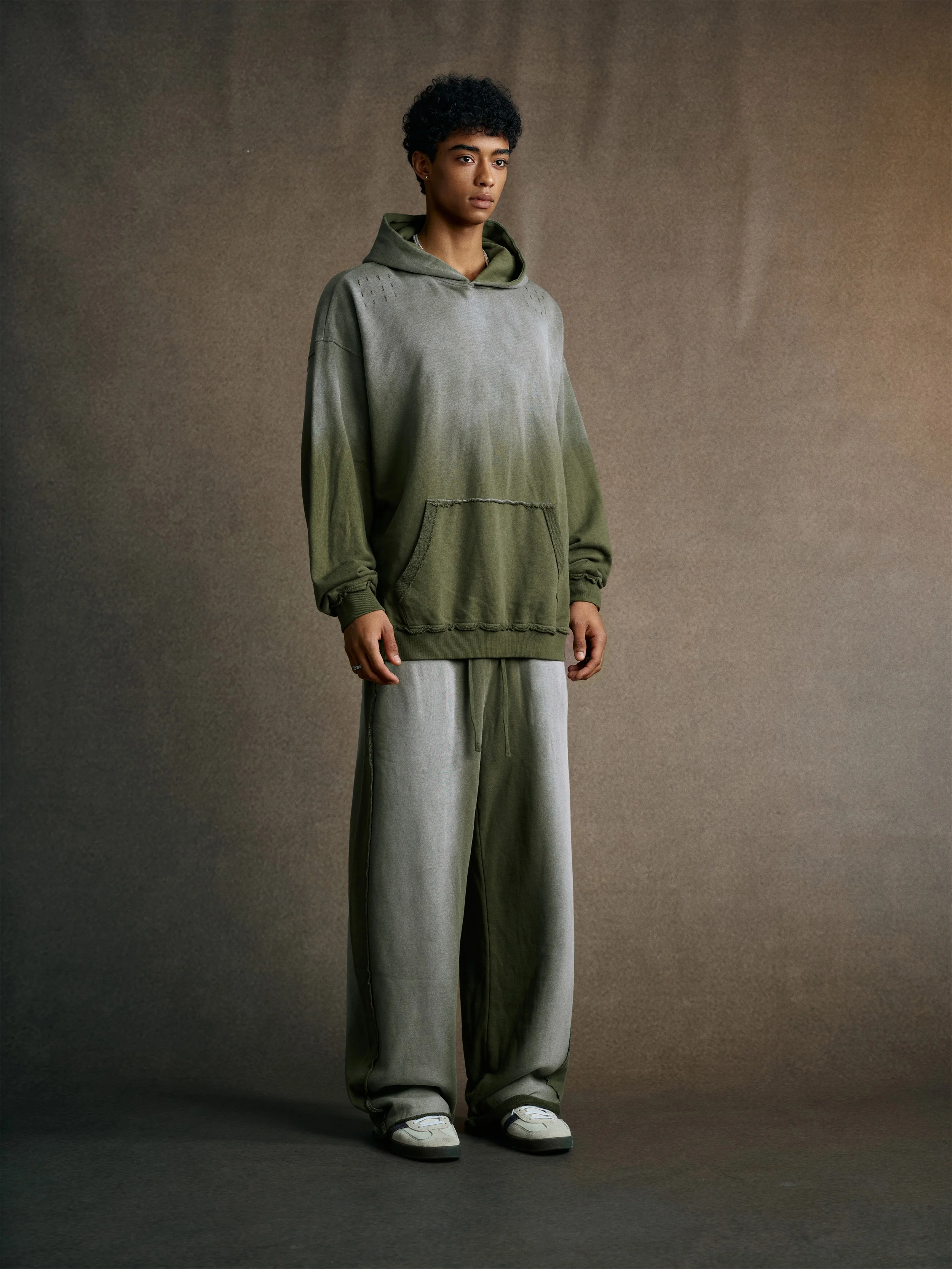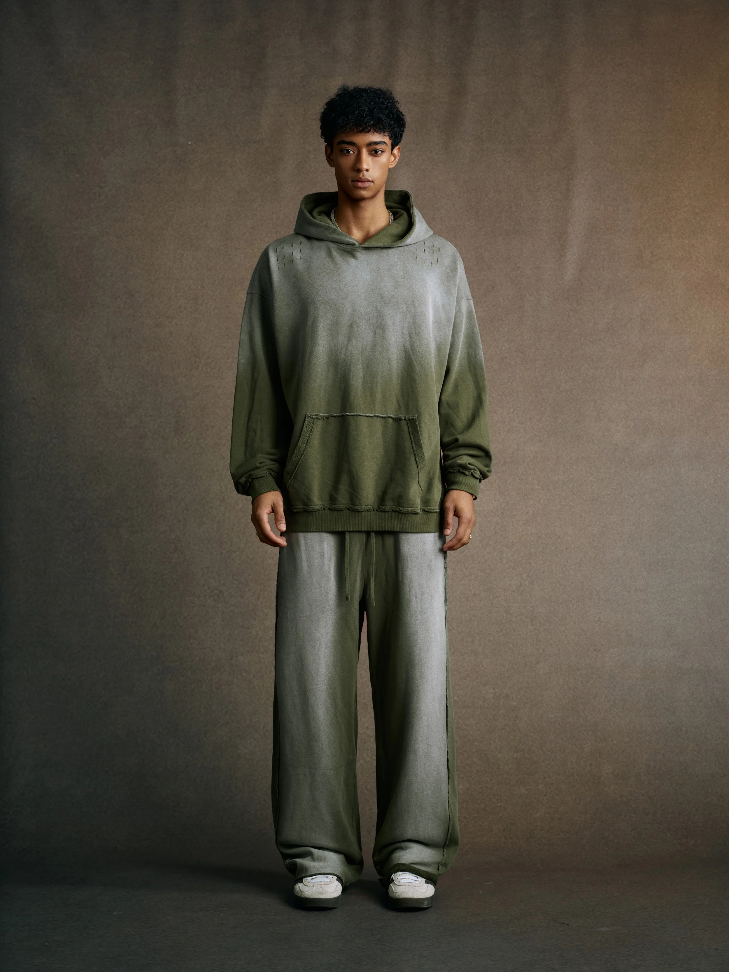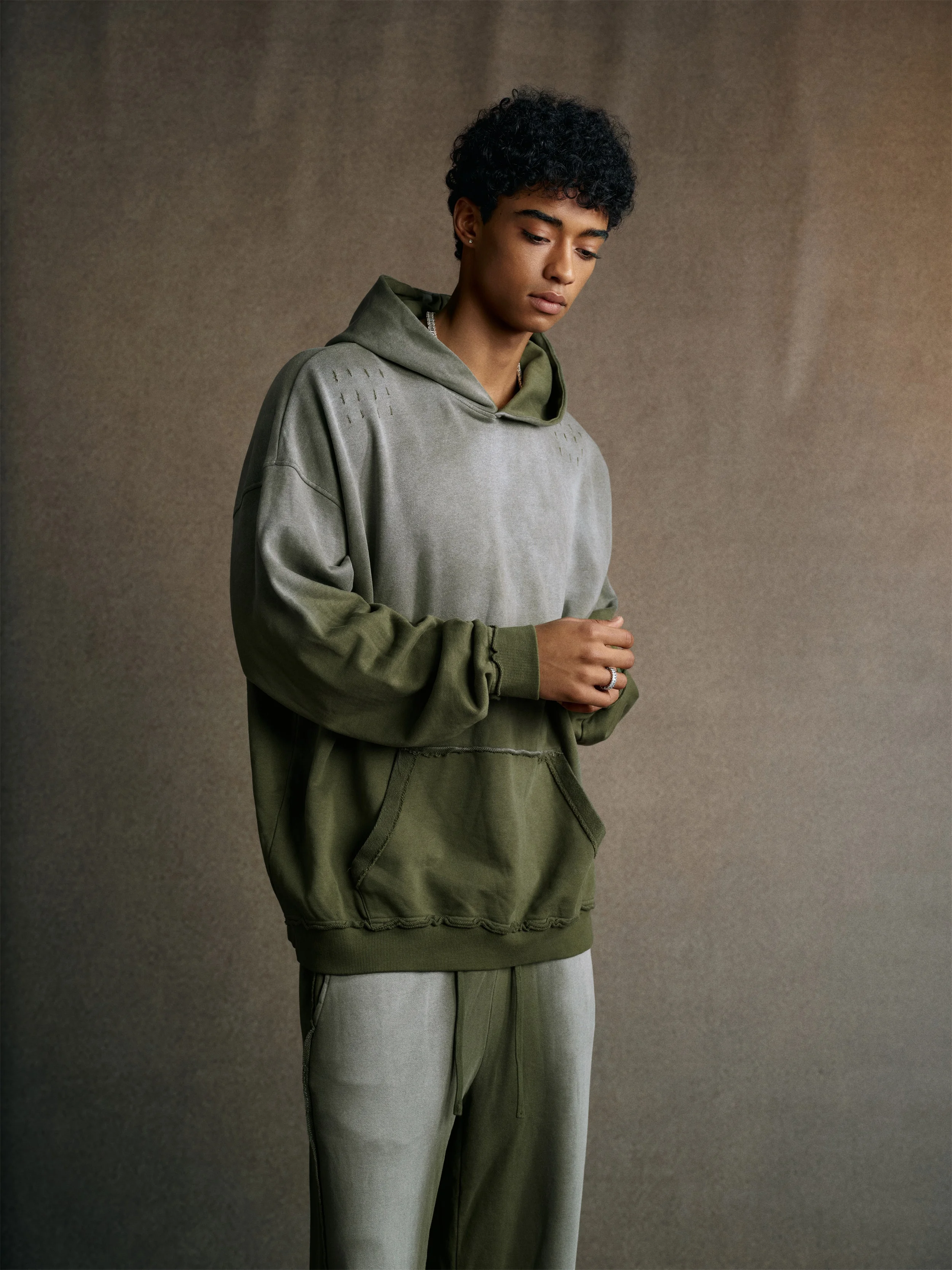 370GSM Men’s Raw-Edge Ripped French Terry PP-Sprayed Hooded Sweatshirt