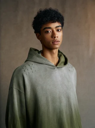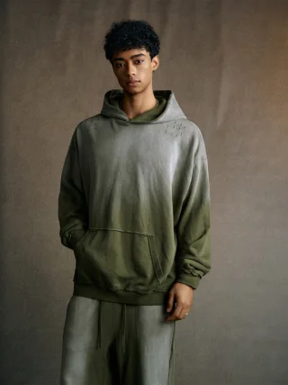 Made from 100% heavyweight cotton (370G), this sweatshirt goes through a special pigment-spray wash that creates a natural gradient fade and vintage feel. A rich, lived-in look with soft texture and depth in every color. Featuring a roomy kangaroo pocket and relaxed oversized fit, it works for everyone — easy to wear, easy to style. Soft yet structured, vintage yet modern — this is the sweatshirt that defines effortless street style.