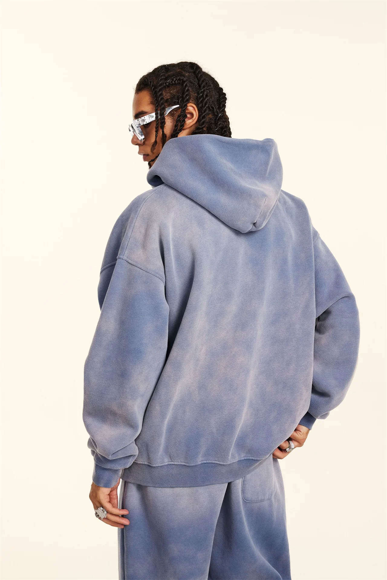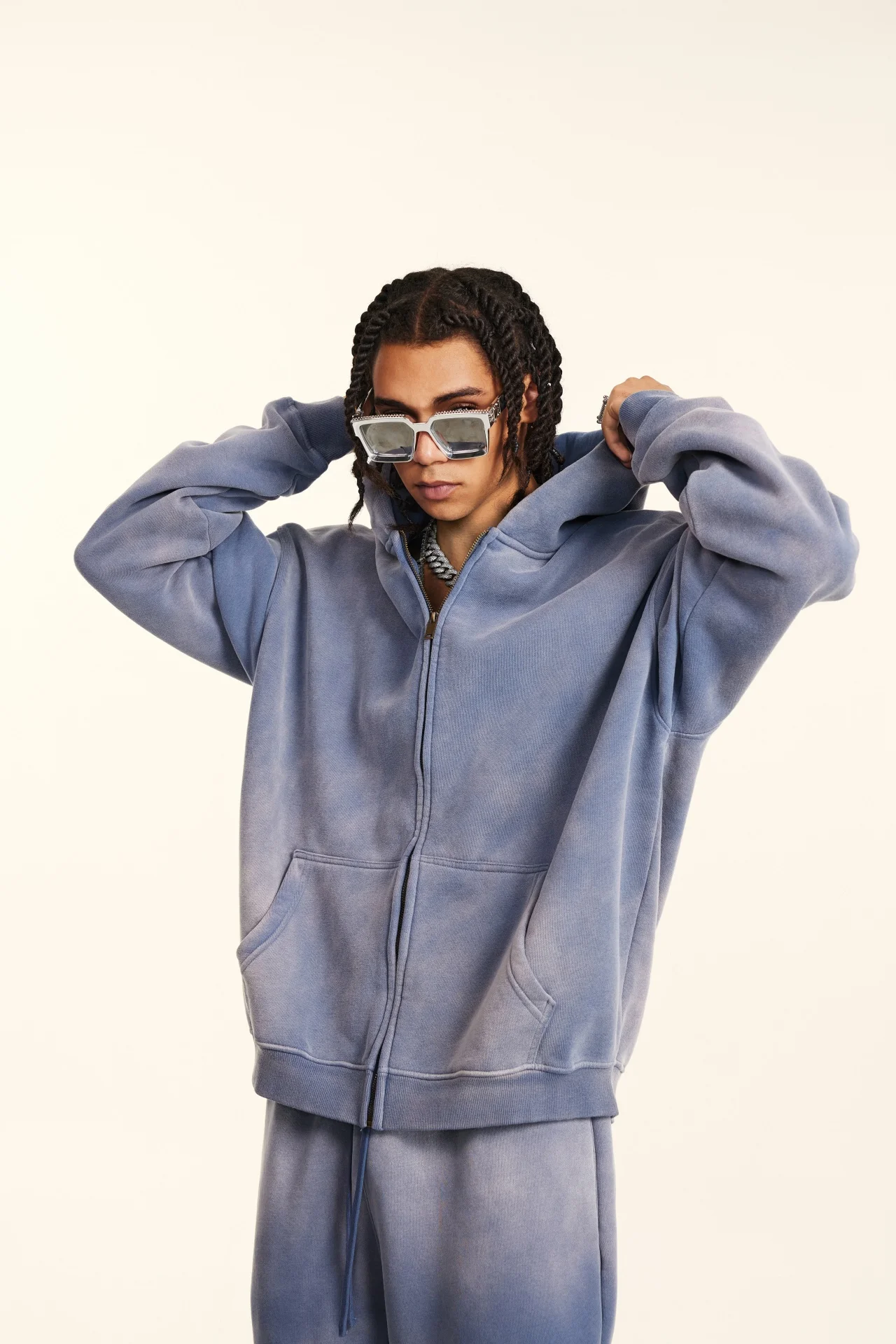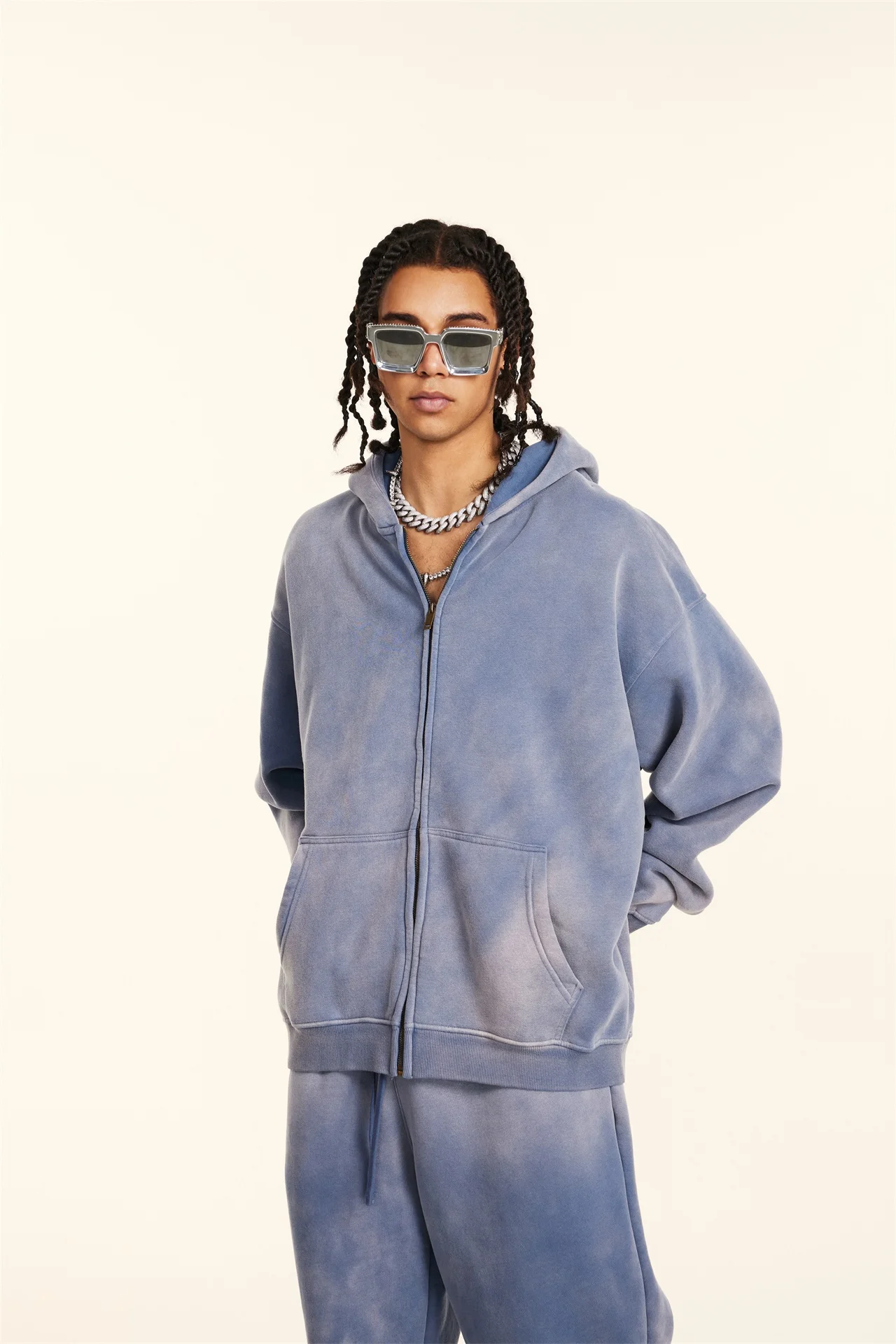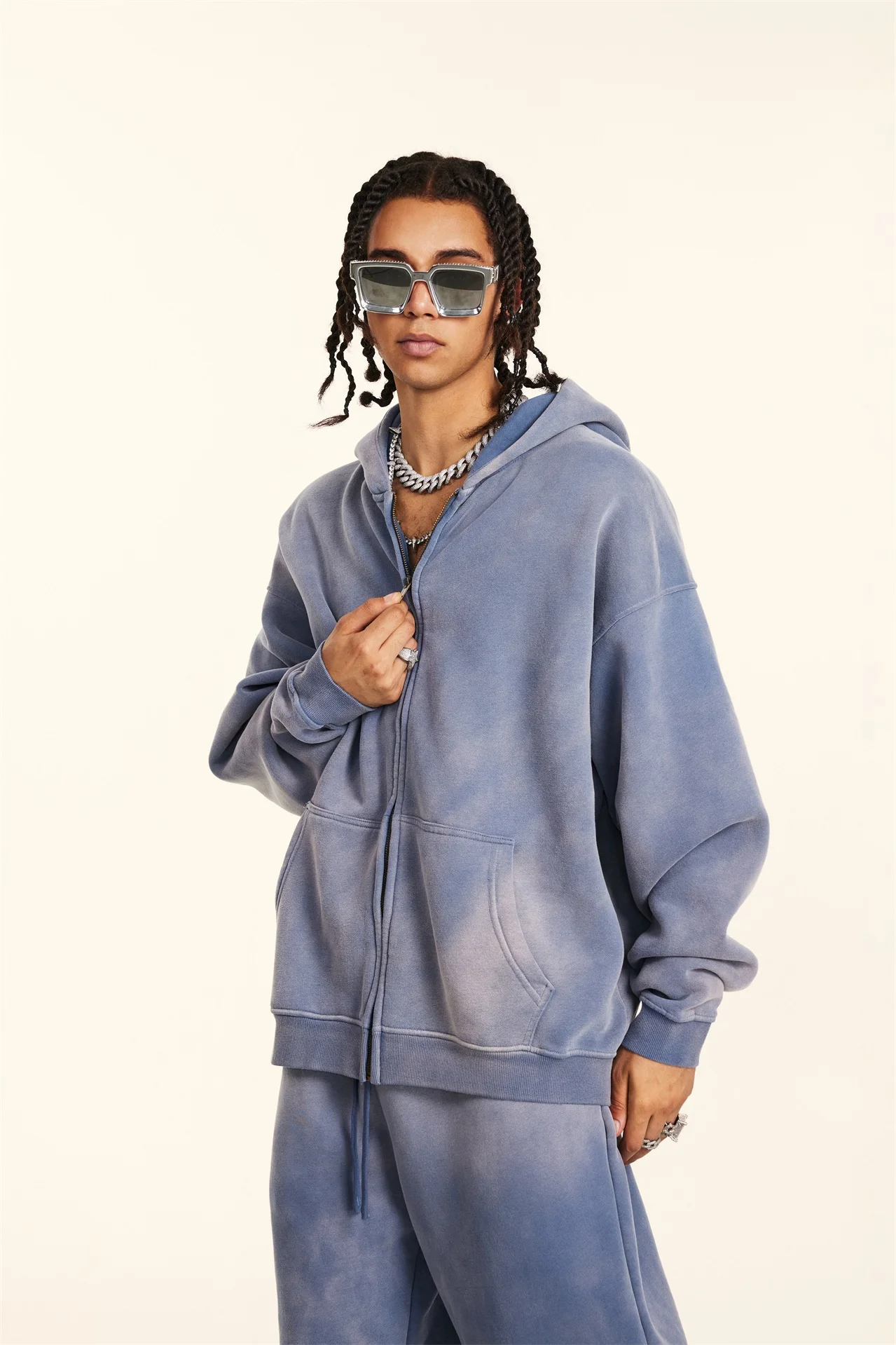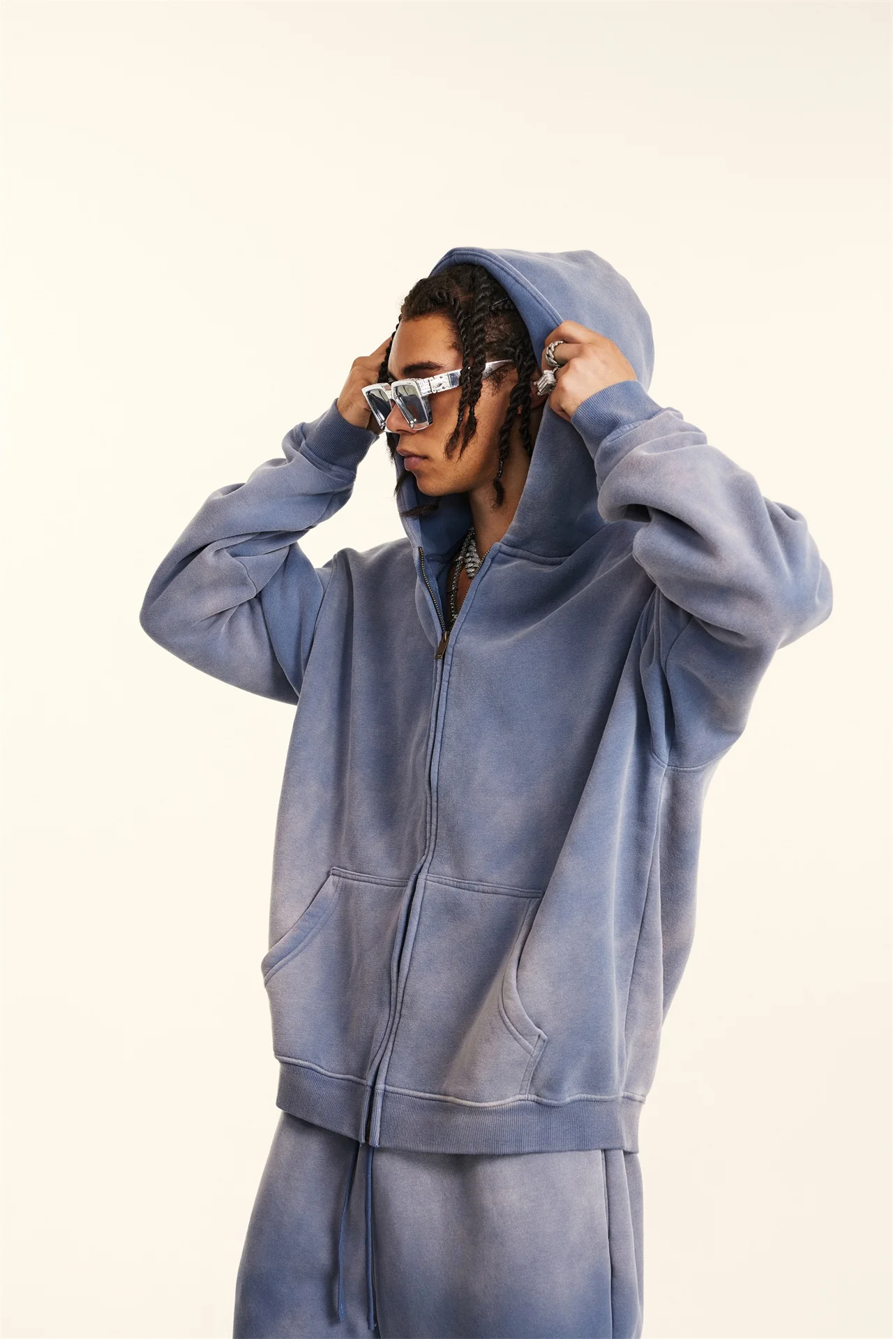 360GSM Unisex Fall/Winter New Fleece-Lined PP-Sprayed (Monkey Wash) Zip-Up Hooded Sweatshirt